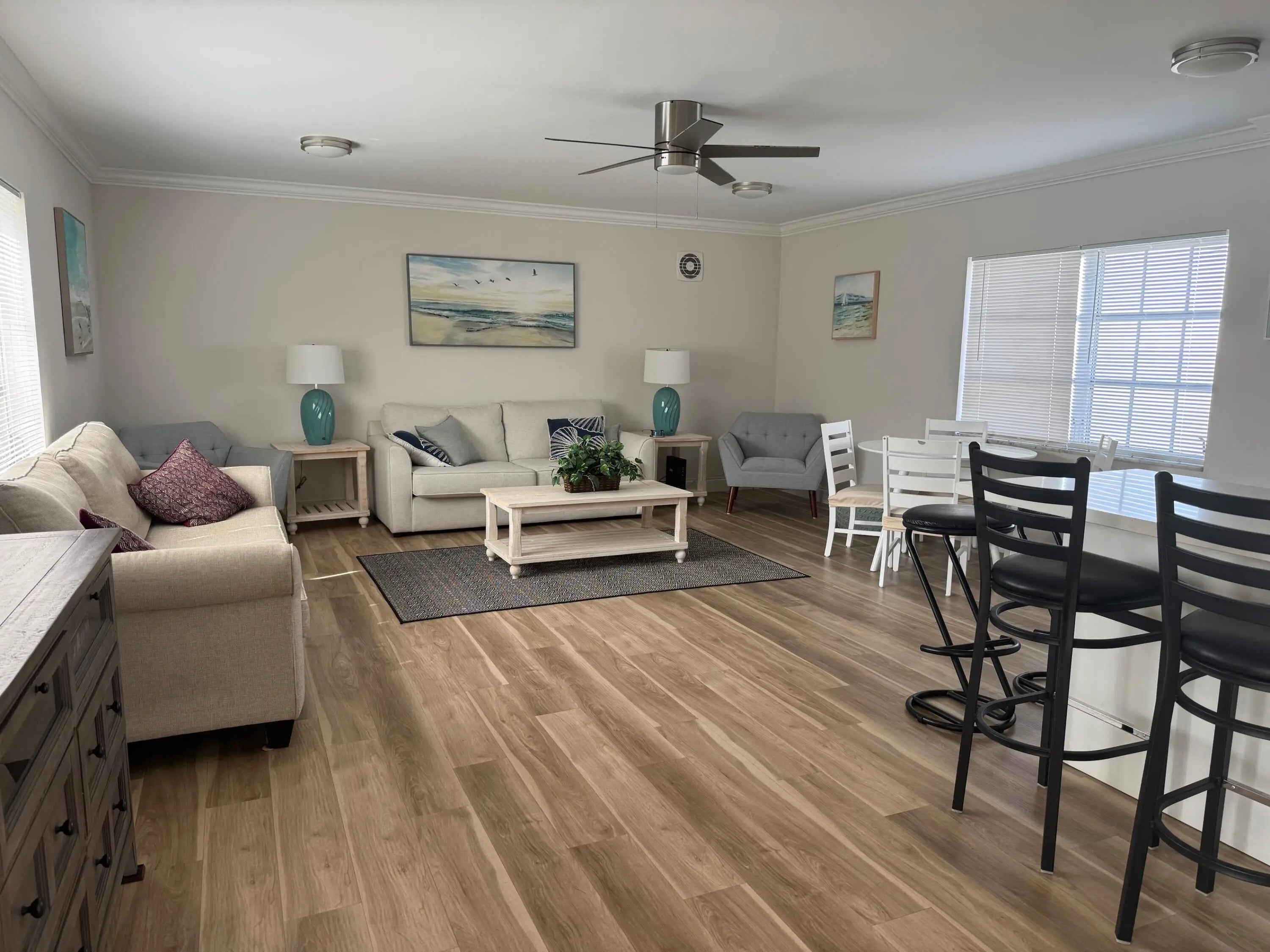 Updated kitchen with black granite counters and snack bar for seating. Stainless steel appliances including dishwasher. Newer laminate flooring throughout. Partly updated bathrooms. Extra full size closet in the dining area for storage. The master bedroom has a half bathroom and 2 large windows for great lighting. This is a first floor corner unit next to the pool. It has 3 extra windows for a lot of natural light. The water heater and a/c are new. The hurricane HIGH impact windows are new. WiFi, cable TV, water, sewer and trash are all included in the rent. AWESOME location just one block West of Federal Highway.