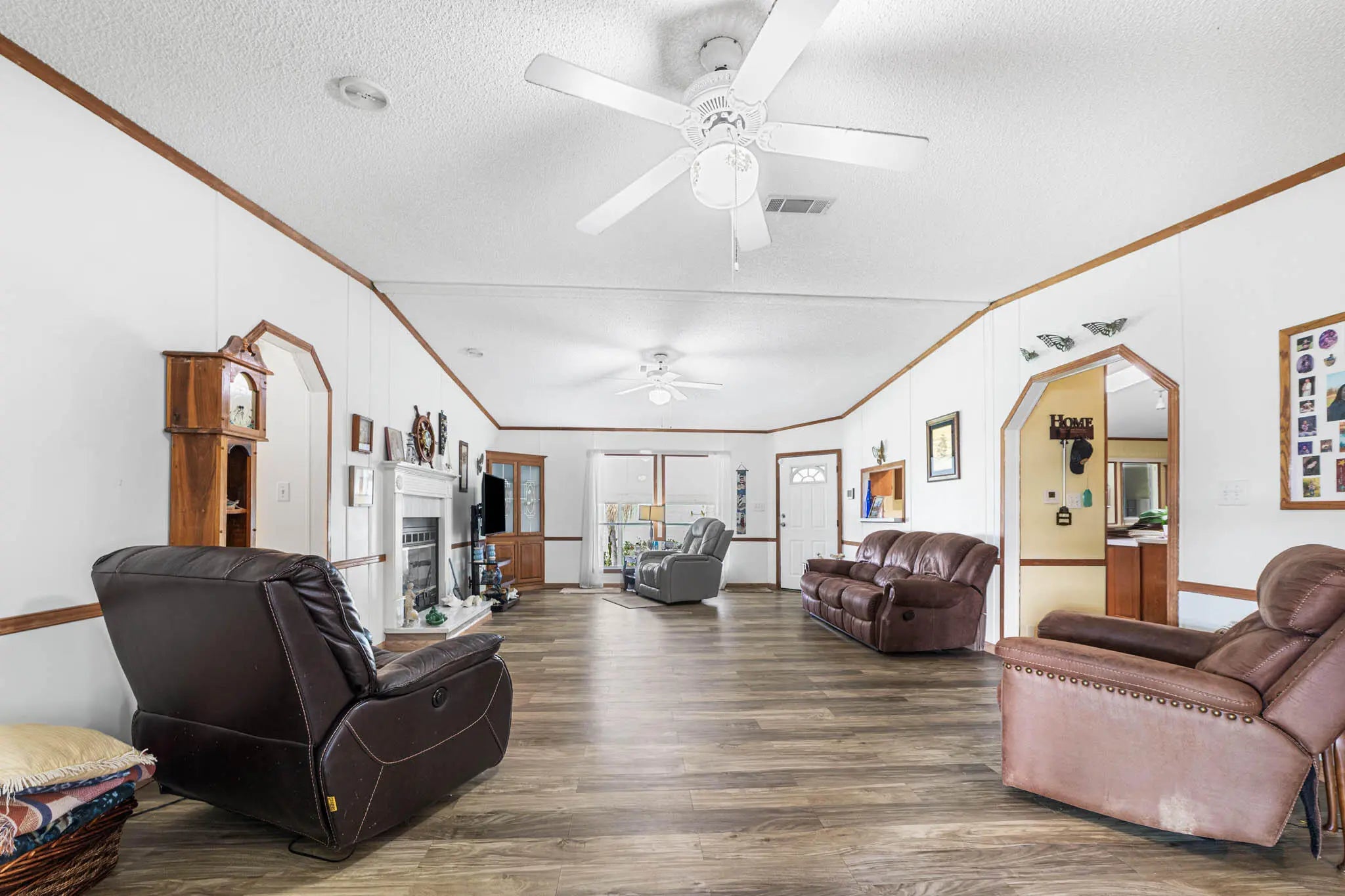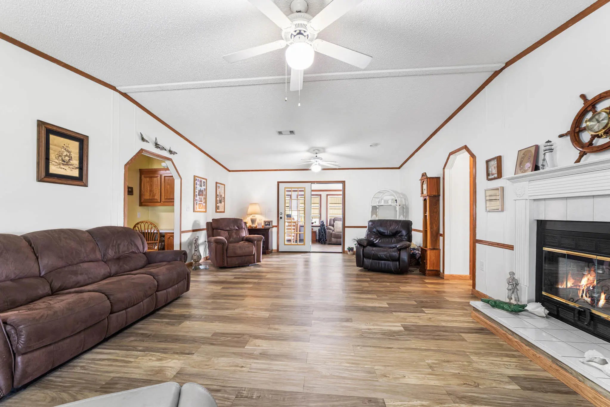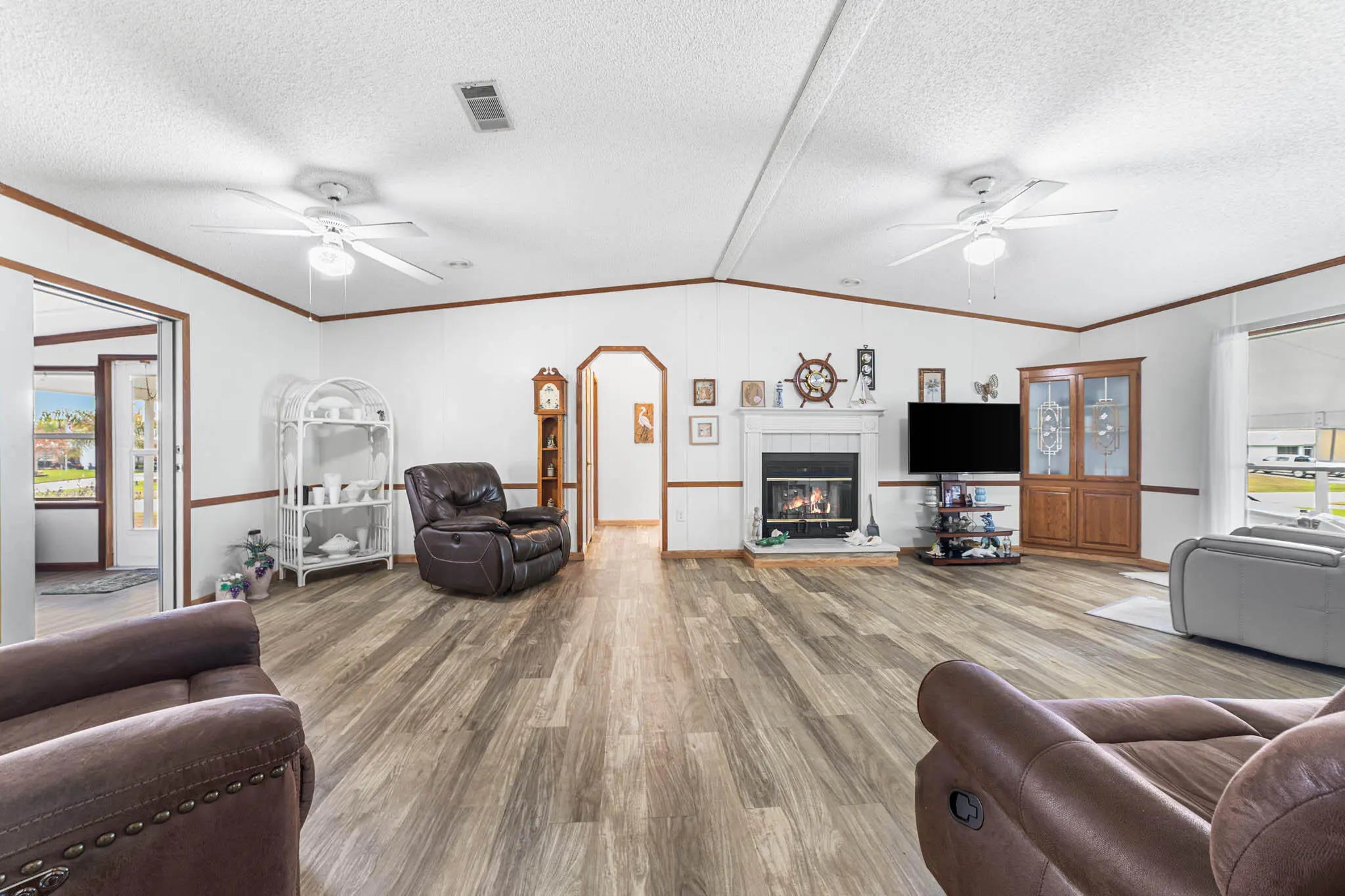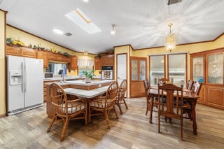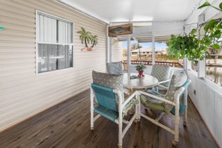 Taylor Creek Isles- Lake Okeechobee Access 3 Bedroom / 2 Bath Manufactured Home with spacious Florida room, updated laminate flooring throughout, a large kitchen island and master suite with en-suite. Enjoy outdoor living with two screened rooms, two carports, an insulated workshop, a boat house, a dock with a hoist-perfect for boating and fishing lovers.