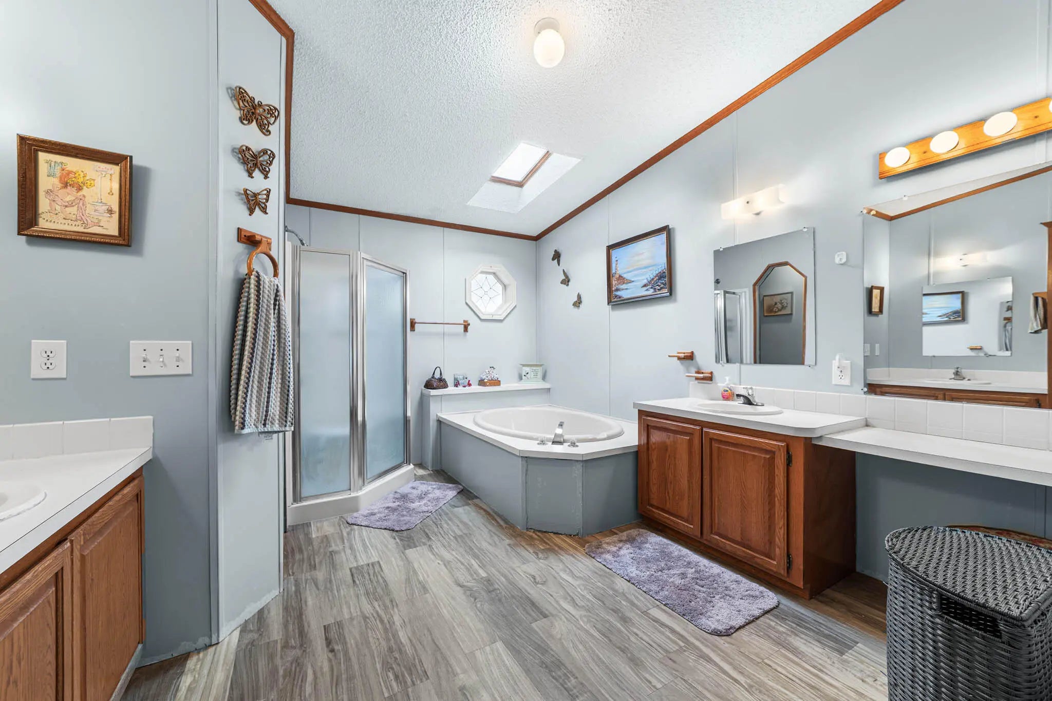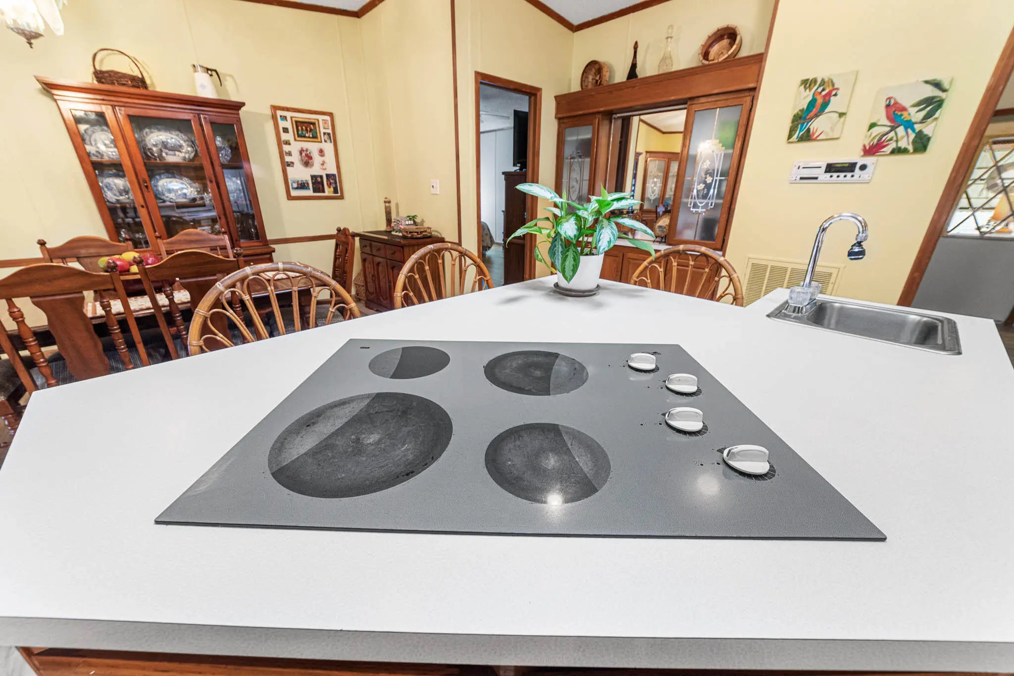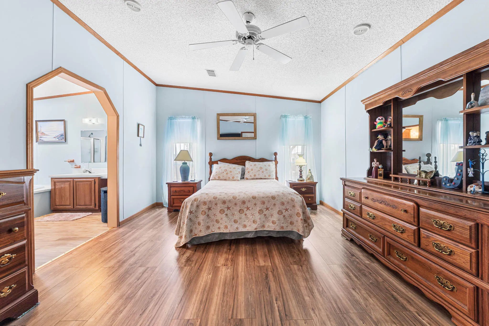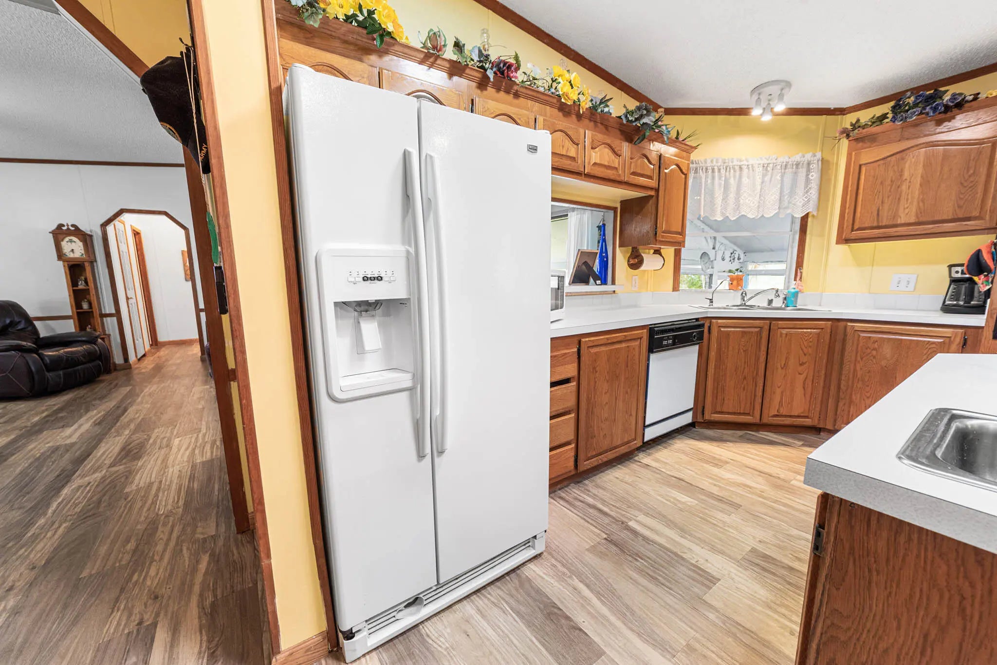 Taylor Creek Isles- Lake Okeechobee Access 3 Bedroom / 2 Bath Manufactured Home with spacious Florida room, updated laminate flooring throughout, a large kitchen island and master suite with en-suite. Enjoy outdoor living with two screened rooms, two carports, an insulated workshop, a boat house, a dock with a hoist-perfect for boating and fishing lovers.