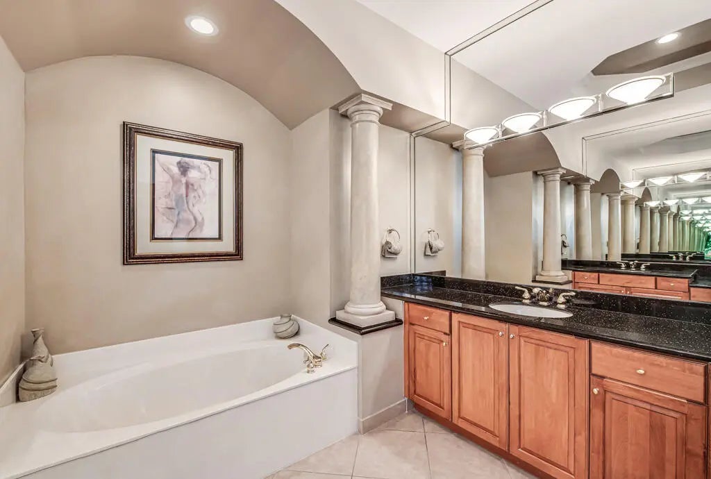 Built-in Features, High Ceilings, Pantry, Vaulted Ceiling(s), Walk-In Closet(s), Bedroom Layout - Split, Custom Mirrors, Roman Tub