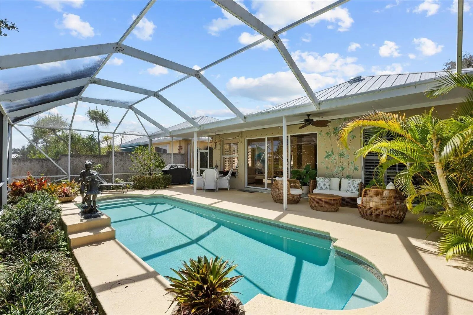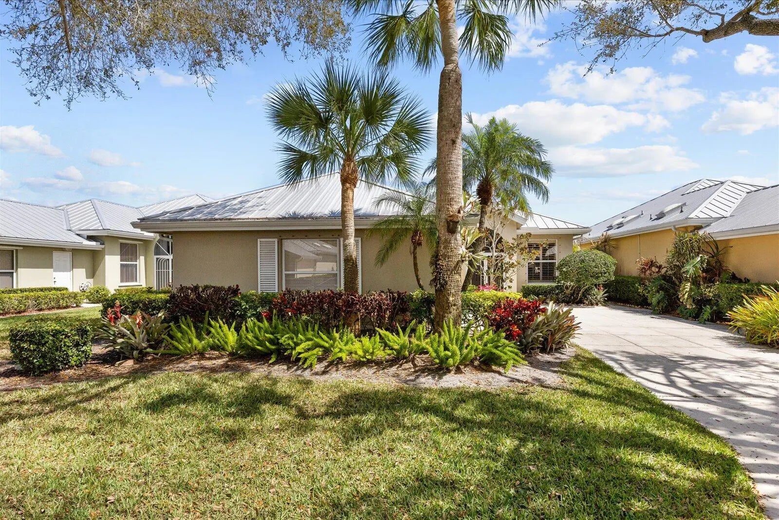 Discover this immaculate Divosta poured concrete Hampton model on a premium private lakefront lot featuring a heated resurfaced pool & lush screened outdoor oasis. Major upgrades include 2018 metal roof, full re-pipe (poly removed) new A/C 2021, upgraded electrical panel 2022, impact front door 2022, new pool equipment/ heater. Interior highlights include porcelain tile floors, crown molding, plantation shutters, custom breakfast nook & sliders opening to opening to the covered lanai & pool. Located in gated Meadows community at Martin Downs with tennis, pickleball, pool, & playground. Quality built by renowned Divosta.