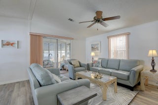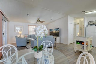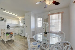 This beautifully maintained home features an open floor plan and comes fully furnished for immediate enjoyment. Luxury vinyl plank flooring enhances the main living areas, while the raised, enclosed porch offers an inviting east-facing exposure--perfect for morning light. Interior laundry adds everyday convenience. Located in the desirable Snug Harbor community, residents enjoy access to a clubhouse, heated pool and spa, along with pickleball and shuffleboard courts. Excludes TV stand, BBQ Grill, black desk and items in shed.