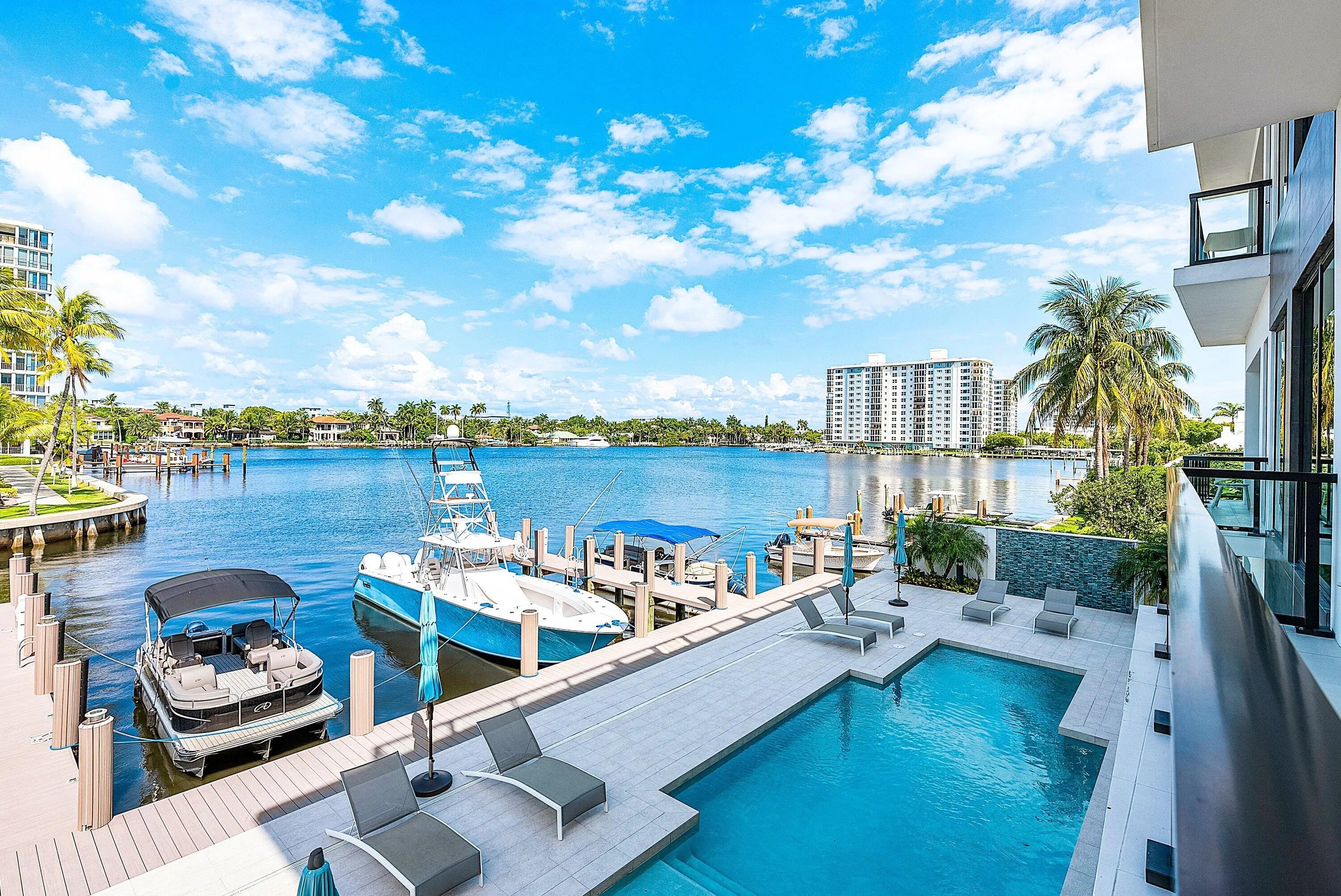 This exceptional waterfront residence at 344 Venetian Drive in Delray Beach offers luxury Intracoastal living in a boutique building with only four residences. Located just steps from Atlantic Avenue and Delray's beautiful beaches, this second-floor condo features a private 45' dock and a private rooftop lounge with summer kitchen, perfect for entertaining while enjoying stunning water views. The spacious 3-bedroom, 3.1-bath home offers 3,369 total square feet with a beautifully designed kitchen featuring state-of-the-art appliances, ample storage, and elegant tile and wood flooring throughout. Floor-to-ceiling glass doors fill the bright great room with natural light and open to a balcony overlooking the Intracoastal. Residents also enjoy a waterside pool, private cabana, two garage space