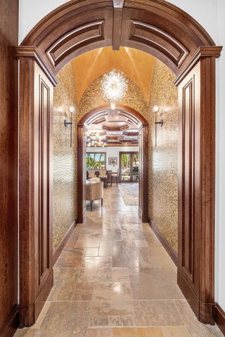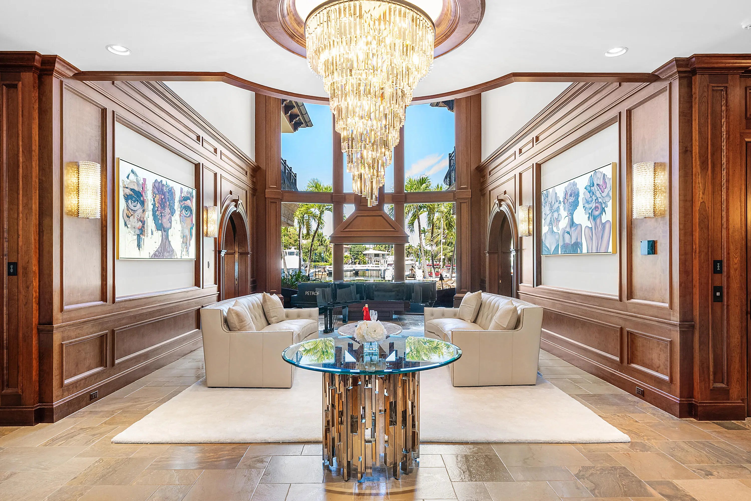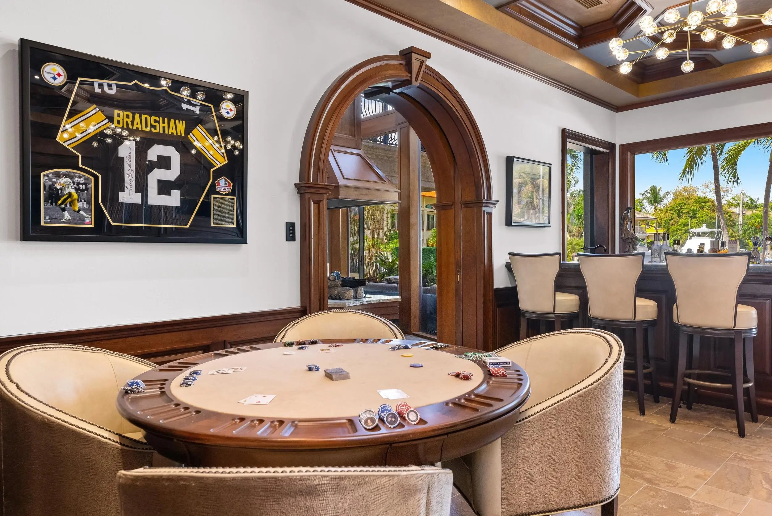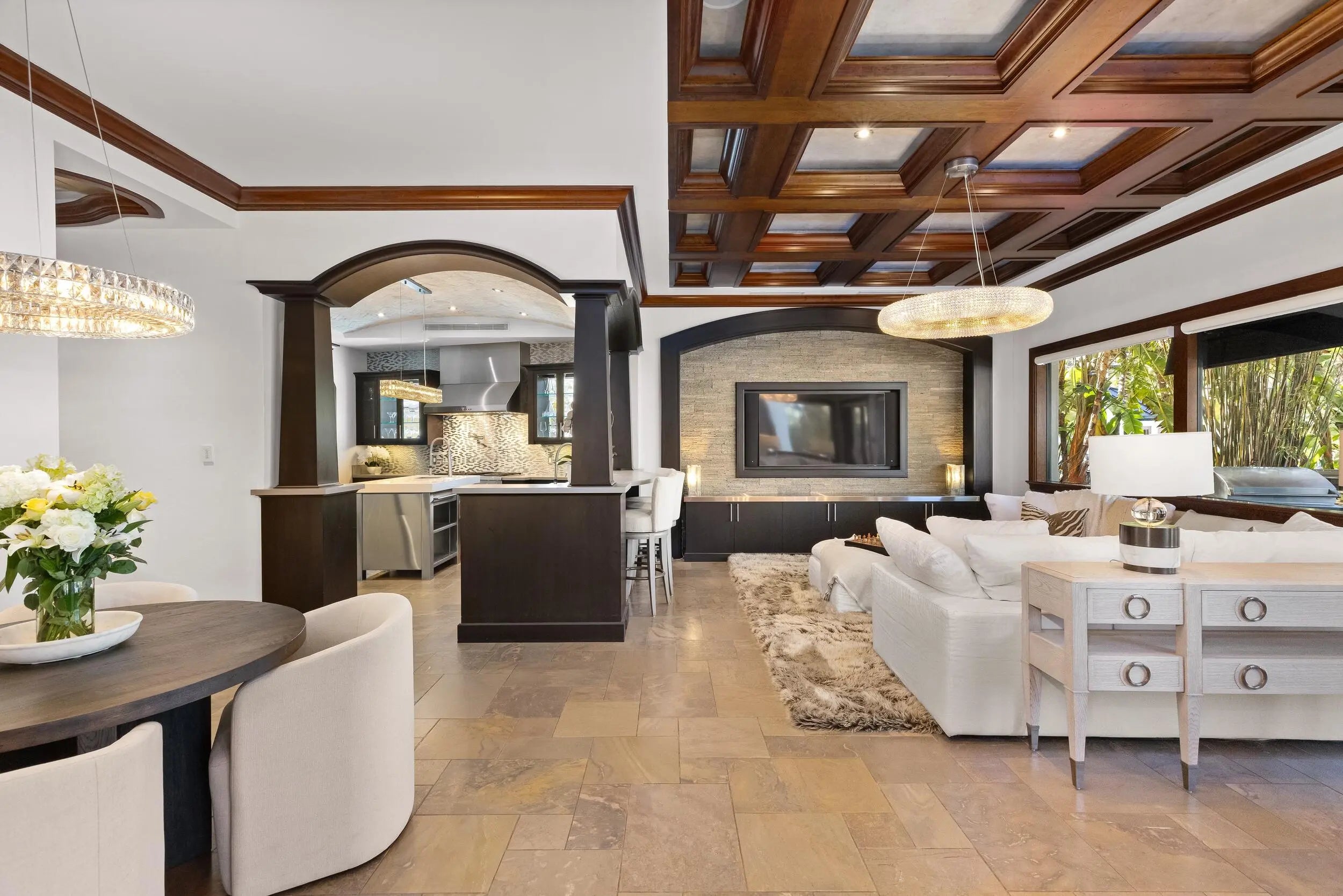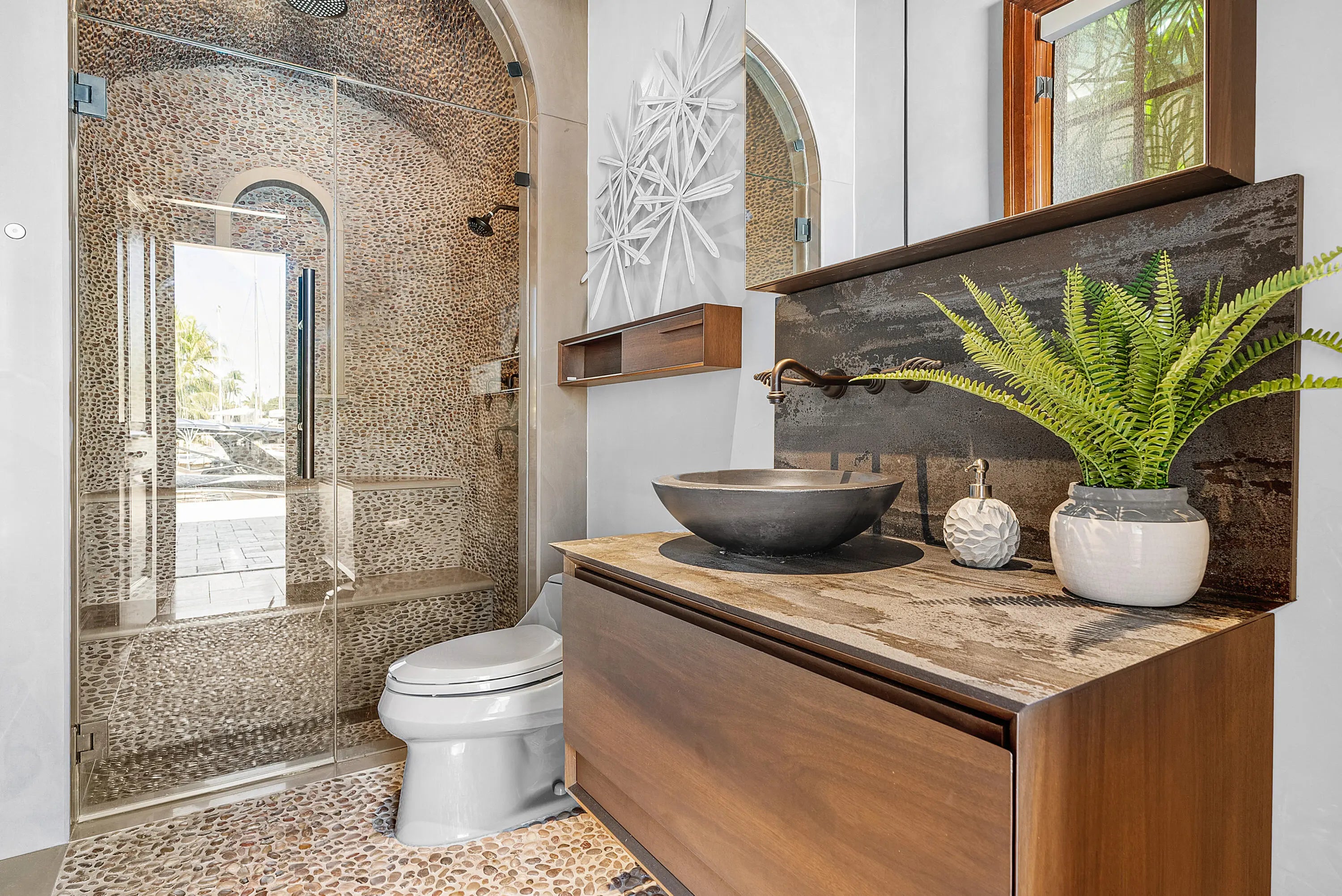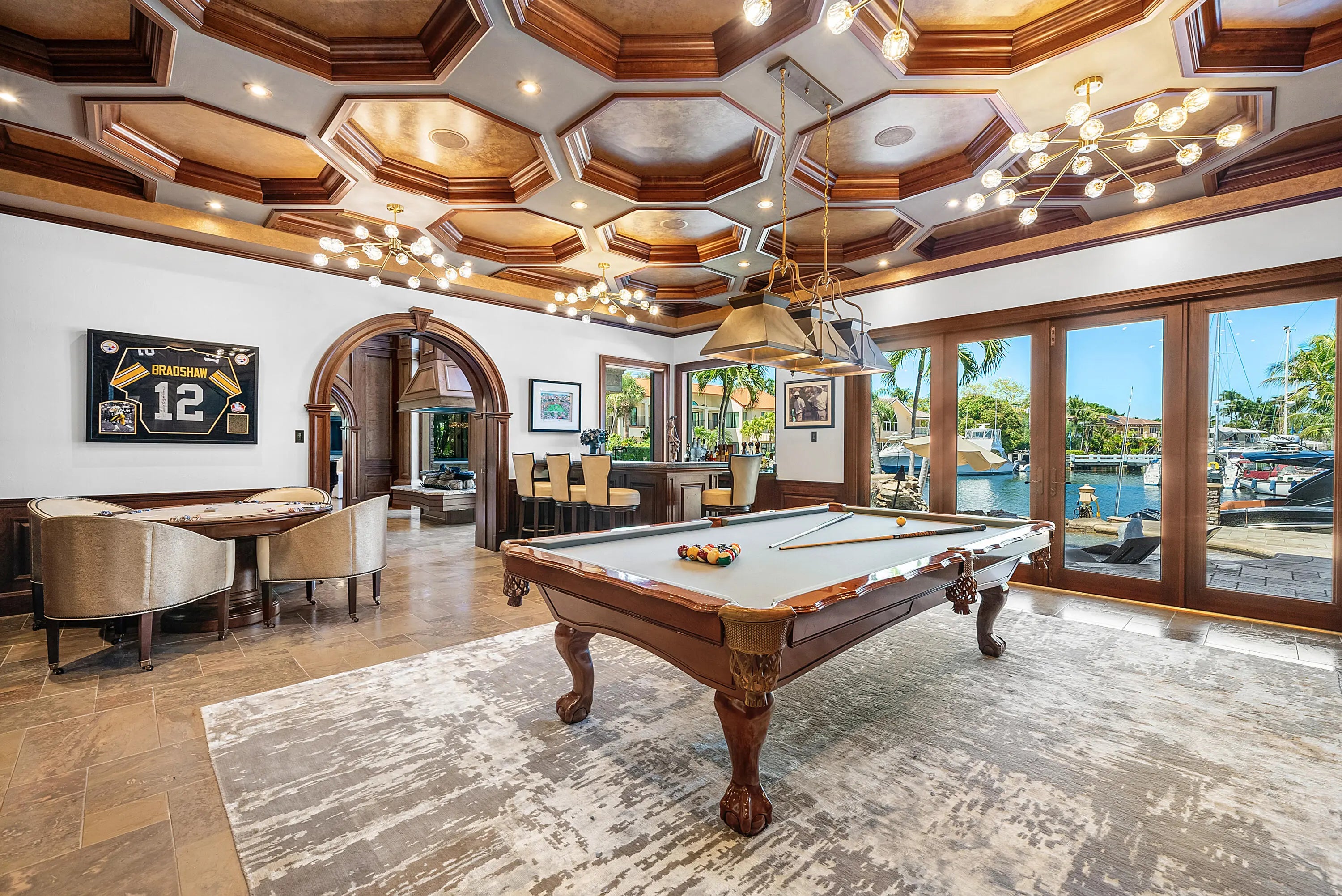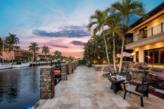 Introducing Villa Tremezzo, a privately gated West Coast Contemporary estate in Lighthouse Point's most prestigious enclave. Set behind lush landscaping and impressive stone walls, this extraordinary waterfront residence offers exceptional privacy, timeless architecture, and remarkable craftsmanship throughout. A grand arrival leads into interiors defined by rare petrified wood stonework, rich custom millwork, and elegant Brazilian marble flooring. Designed for both luxury living and entertaining, the home features a chef's kitchen with Thermador gas appliances, six burners, Chicago brick ceiling accents, and a hidden butler's pantry. Smart home technology integrates lighting, sound, motorized shades, climate, and security throughout the residence. Resort-style outdoor living centers around a spectacular infinity edge pool with waterfalls, grotto seating beneath cascading water, spa, sun shelf, and color-changing lighting. The expansive outdoor space also features a summer kitchen, putting green, outdoor shower, fire torches, and beautifully illuminated tropical landscaping designed for unforgettable evenings. The home offers an exceptional entertainment experience with a fully soundproof professional theater with 130-inch screen and high-end Sony projection system, along with a game room and bar. Upstairs, a dramatic bridge hallway leads to a split-bedroom layout where each bedroom enjoys its own private terrace, walk-in closet, and en-suite bath. The luxurious primary suite features expansive terraces, spa-style bath with multi-jet shower, fireplace, custom bar, and boutique-style closets. Additional highlights include an elevator, whole-house generator, four newer AC systems, copper gutters, whole-house water filtration and softening, central vacuum, advanced security cameras, and extensive smart-home automation. Originally completed in 2014 and extensively upgraded, Villa Tremezzo is a rare custom-built showcase estate designed for the most discerning buyer. The information published and provided including but not limited to prices, measurements, square footages, lot sizes, features, finishes, and calculations are subject to errors, omissions or changes without notice. All such information should be independently verified. All parties should perform their own due diligence to verify all information.