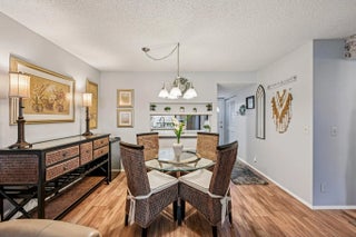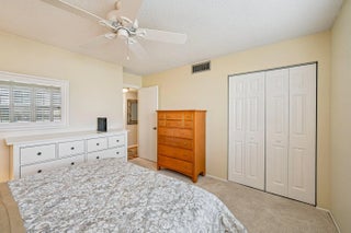 Meticulously maintained 2-bedroom, 2-bath desirable first-floor condo in Royal Palm Beach featuring numerous updates and quality finishes throughout. The updated kitchen offers beautiful oak cabinetry with pull-out shelves, granite countertops, ceramic-top range, refrigerator with ice maker, built-in microwave, and newer fixtures and sinks. Both bathrooms have been updated with new cabinetry, fixtures, and decorative tiled showers with built-in seating. Wood flooring throughout the entire unit provides a warm and low-maintenance living space. Additional features include plantation shutters, mirrored closet doors, updated lighting and plumbing fixtures, and attractive window treatments with verticals. The home includes accordion hurricane shutters, plus additional storm protection for the rear patio sliders. Recent improvements include a new A/C installed December 2024, newer appliances and a 2023 roof.. Conveniently located near Royal Palm Beach Commons Park, offering scenic walking trails, lakes, playgrounds, picnic areas, and year-round community events. Enjoy easy access to one of the area's most popular outdoor recreation destinations. Desirable first-floor location. Priced to sell.