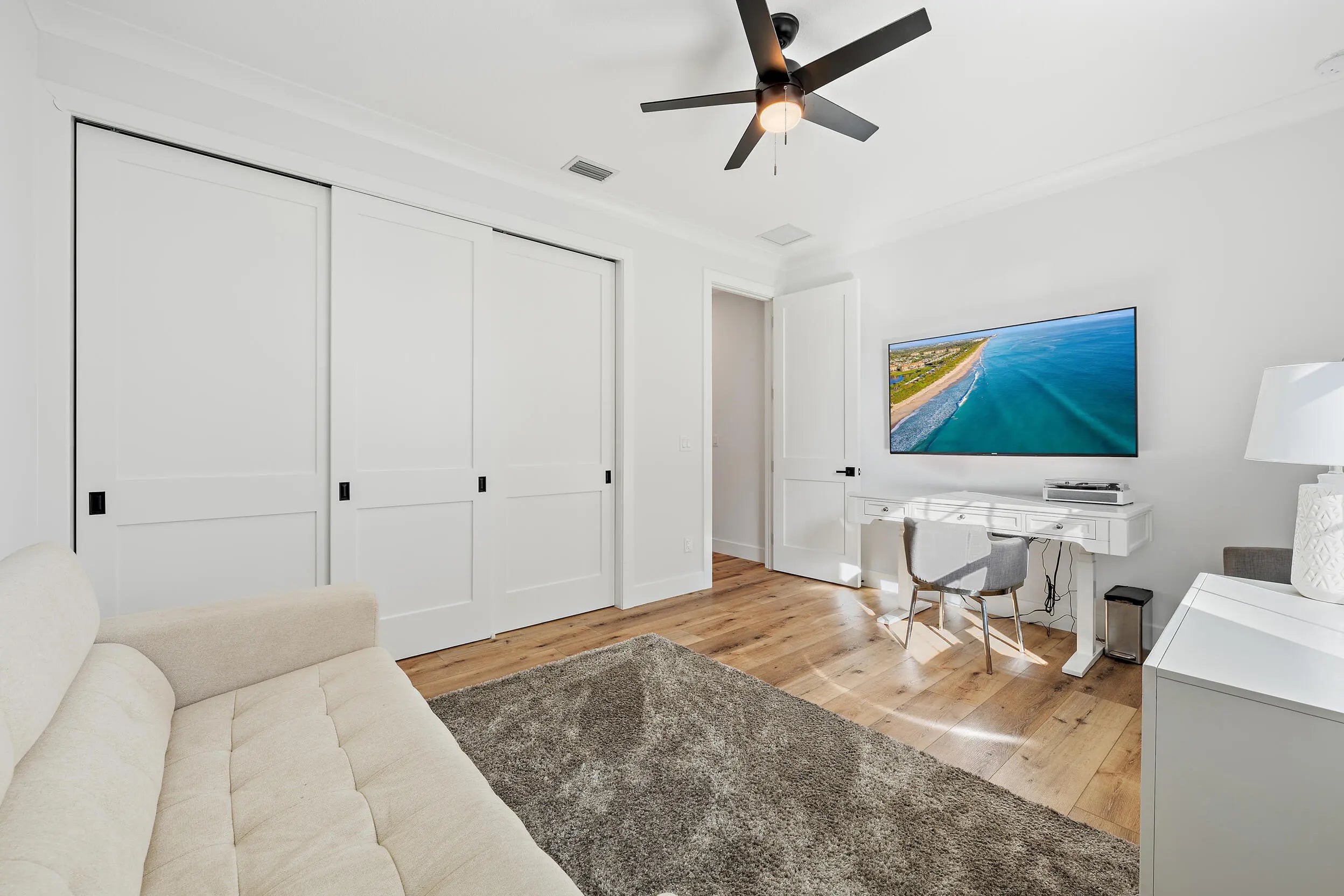Newer construction in Hobe Sound is rarely available, making this 2024-built home a unique opportunity for buyers seeking modern living just minutes from the beach. Located at the end of a peaceful cul-de-sac, the property enjoys a naturally elevated setting that gives it a commanding presence as you approach, while still being close to Hobe Sound's best restaurants, shopping, and coastal amenities. A split floor plan provides privacy, while the open-concept kitchen and living areas flow seamlessly to covered patio spaces in both the front and backyard, each finished with beautiful tongue-and-groove ceilings. The rear patio is the perfect place to relax, grill, and enjoy sunset views overlooking the spacious backyard with newly installed landscaping. The oversized primary suite serves as a private retreat, featuring a large walk-in closet, dual vanities, a generous walk-in shower, and a separate soaking tub. A dedicated laundry room and two-car garage add everyday convenience. New and newer-construction homes in Hobe Sound are extremely limited and rarely come to market. For buyers looking for a modern, move-in-ready home without the time and uncertainty of building, this property presents a rare opportunity.