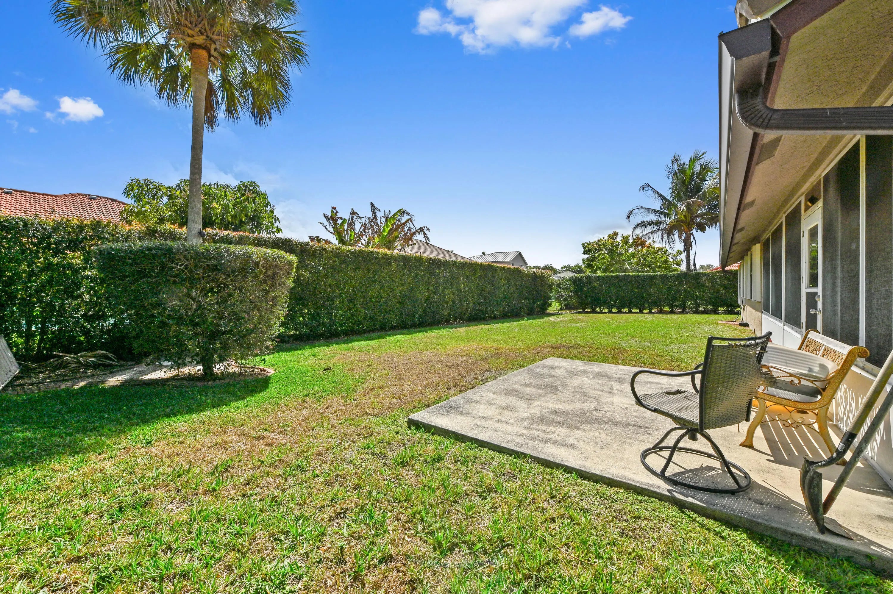 Welcome to your ultimate Florida sanctuary! Nestled within a highly desirable, gated community in Royal Palm Beach, this spectacular single-story home is a true standout. From the moment you pull into the impressive circular driveway, you are greeted by undeniable curb appeal and a welcoming atmosphere. Step inside to discover a highly sought-after split floor plan that effortlessly balances open-concept living with ultimate privacy. The versatile layout offers 3 spacious bedrooms plus a dedicated private office or den, making it the perfect setup for remote work, hosting guests, or creating a quiet personal retreat. The interior is flooded with natural light and showcases an array of elegant upgrades and a seamless flow. Beautiful neutral tile flooring stretches across the entire living space, perfectly complemented by classic crown moldings that add a touch of refined sophistication to every room. At the heart of the home lies a beautifully appointed kitchen, boasting rich wood cabinetry, gleaming granite countertops, and ample prep space for culinary exploration. Whether you are hosting formal dinner parties or enjoying casual family breakfasts, this central gathering space is designed to inspire connection and effortless entertaining. Beyond its undeniable aesthetic charm, this home is engineered for modern peace of mind, energy efficiency with new roof, impact windows and doors. Step outside to your private, fully fenced backyard—a serene oasis that provides the perfect backdrop for weekend barbecues, alfresco dining, or letting pets play safely in the Florida sunshine. Complete with an oversized garage for all your storage needs, this meticulously maintained gem offers the luxurious, worry-free lifestyle you've been dreaming of.