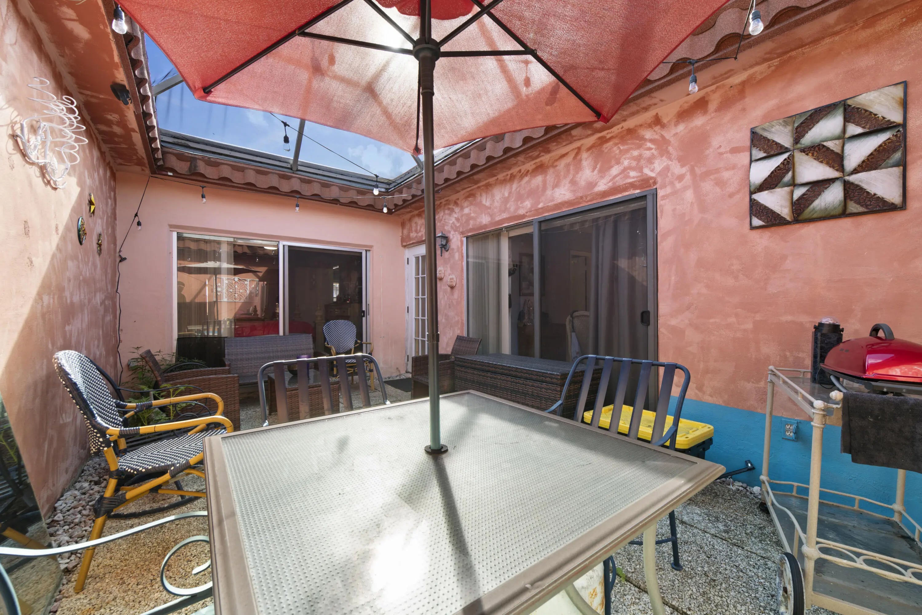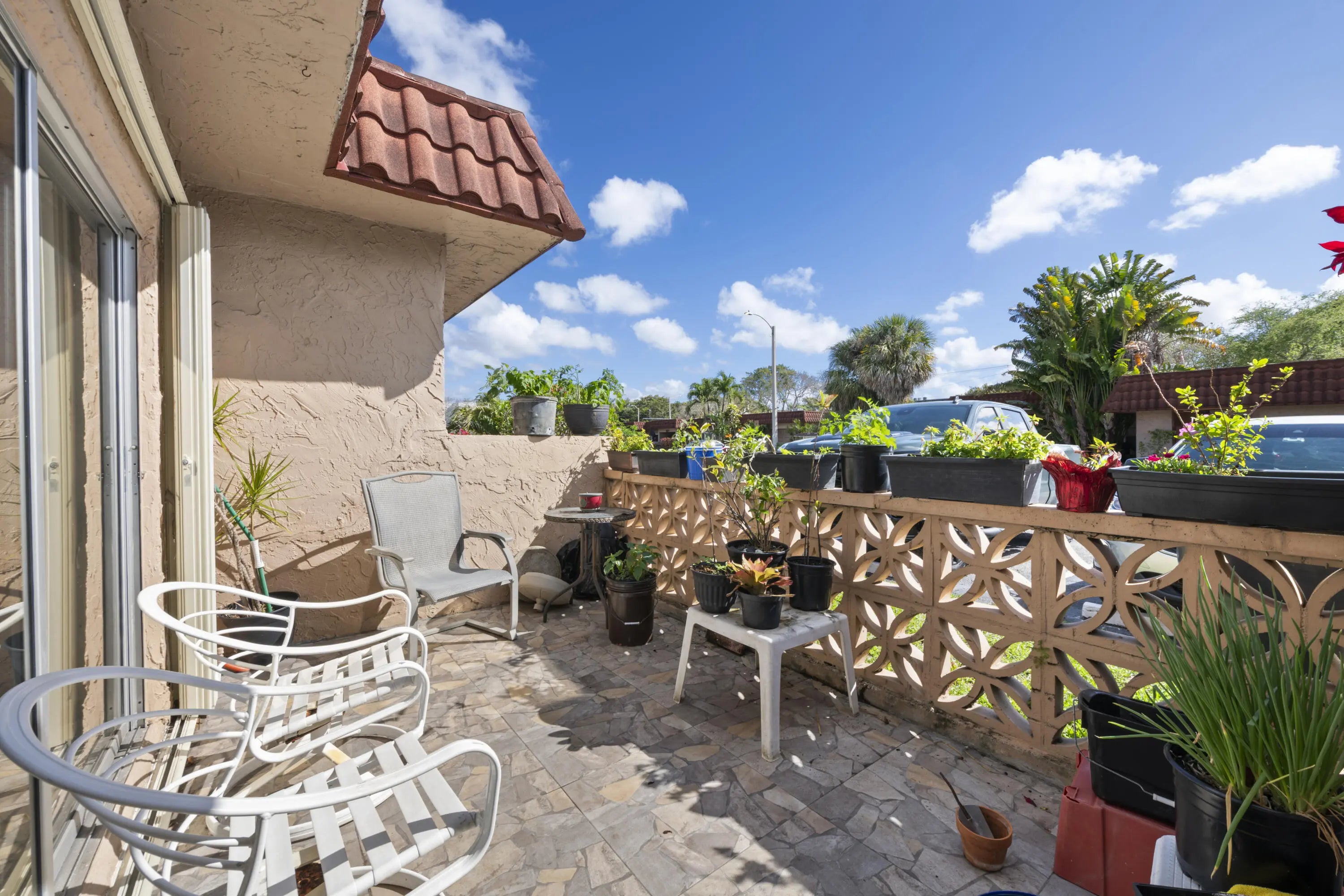 Beautifully maintained 2-bedroom, 2-bath villa in the desirable Oakbrook 55+ community. This bright home features tile floors throughout, a spacious open living and dining area, and large windows that bring in natural light. Enjoy relaxing or entertaining in your private screened courtyard patio, perfect for morning coffee or evening gatherings. The kitchen offers ample cabinetry and modern appliances, and the home includes accordion hurricane shutters and an in-unit washer and dryer. Residents enjoy access to heated pool, clubhouse, fitness center, library, billiards, and tennis courts, all just minutes from shopping, dining, and everyday conveniences. A wonderful opportunity to enjoy comfortable South Florida living—schedule your showing today.