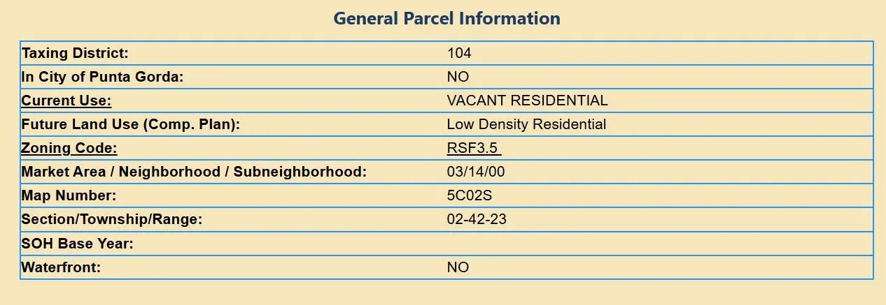 Build your dream home in the Tropical Gulf Acres community in a 7,666 Square Foot vacant lot. All pictures taken from Charlotte County Property Appraiser and Google Earth. Buyer to verify all measurements, zoning uses, building requirements, and utility information with Charlotte County.