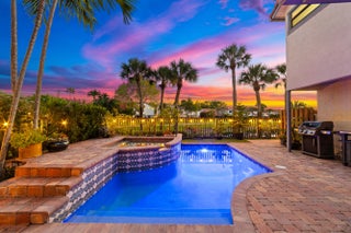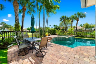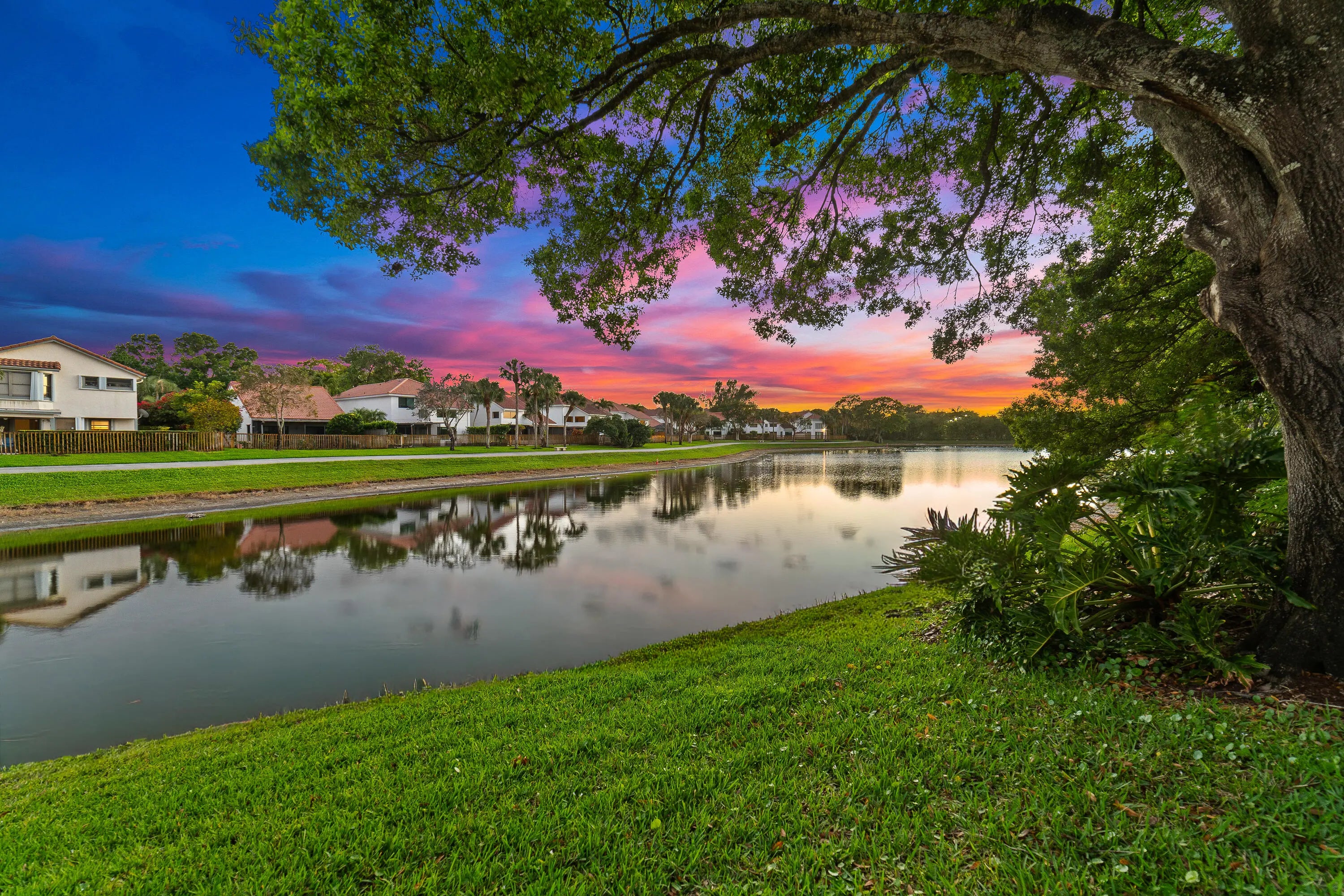 Experience the pinnacle of South Florida living in this beautifully updated 3-bedroom, 2.5-bathroom residence located in the prestigious gated Wimbledon community of Boca Raton. Perfectly positioned on a premium corner cul-de-sac lot at the end of a quiet dead-end street with no thru traffic, this exceptional property offers rare privacy with no homes on three sides and serene pond and lake views. Just outside you'll find your own private outdoor oasis featuring a sparkling waterfall pool, new pool heater, saltwater system, and a refreshing cold plunge, perfect for relaxation and entertaining. The expansive brick paver patio provides plenty of space to enjoy the tranquil water views and lush surroundings, while the absence of a rear walkway enhances the home's sense of privacy and seclusion. Inside, the open-concept floor plan is filled with natural light and architectural charm, highlighted by soaring cathedral ceilings, skylights, elegant crown molding, and beautiful wood flooring. The modern gourmet kitchen features maple cabinetry, granite countertops, and a sleek induction cooktop for precision cooking. A dedicated den/office offers the perfect work-from-home or flex space. Designed for both comfort and peace of mind, the home includes impact glass windows with accordion shutters on the sliders, a brand-new A/C system, and a new roof with gutters. The primary suite features custom built-out closets for optimal organization and storage. Additional upgrades include electric vehicle charging readiness and numerous improvements that make this home truly move-in ready. Residents of Wimbledon enjoy the security of a 24-hour manned gated entrance along with community amenities including a heated pool and scenic trails. Ideally located just minutes from A-rated schools, fine dining, and premier shopping at Town Center Mall, this home offers the perfect blend of luxury, privacy, and convenience.