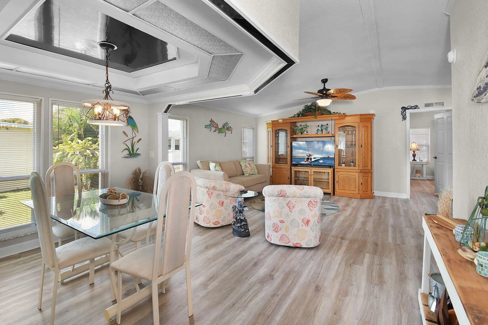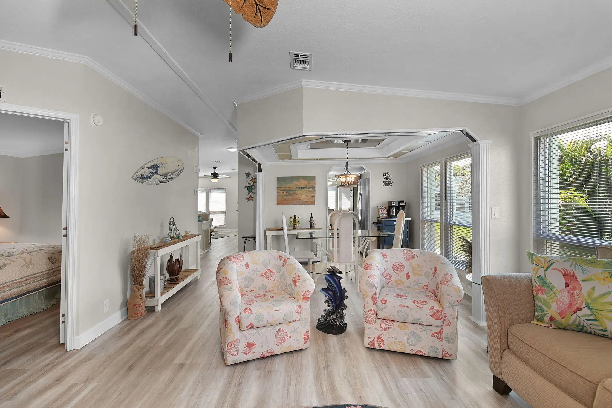 Turn-key land-owned home in desirable Savanna Club. Totally remodeled in 2023 with new double hung windows, accordion shutters, stainless appliances, quartz counters in kitchen & baths, luxury vinyl floors, new plumbing, new tie downs & vapor barrier. Roof installed 2022 and AC installed 2021. Lovely screened in lanai. Also includes newer Evolution golf cart. Seller willing to pay a year of HOA fees for the buyer. Savanna Club features resort-style living with a plethora of amenities including 3 pools & jacuzzis, 3 gyms, 6 pickle ball courts, 4 tennis courts, bocce ball, shuffle board, billiards, libraries, business center, golf course, cafe, and an array of social clubs! Don't forget our theatre with live acts throughout the year. And we're 15 minutes to the beach.