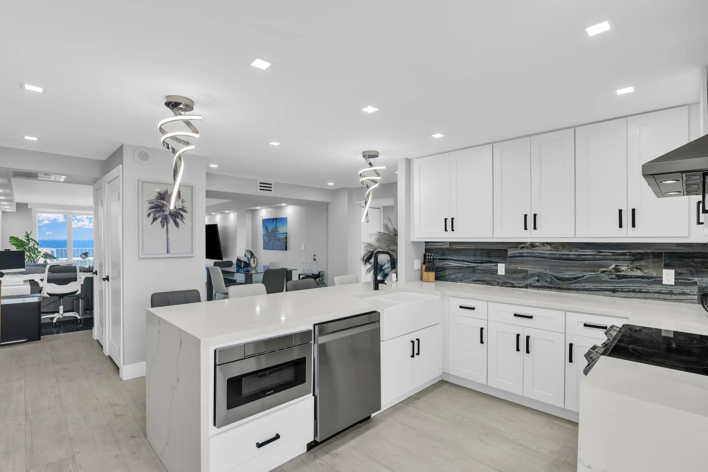 Completely remodeled and beautifully appointed, this stunning 2-bedroom, 2-bathroom direct oceanfront residence offers unobstructed Atlantic views from nearly every room. Encompassing 1,454 A/C square feet and a spacious 28 x 6 balcony, the residence delivers an exceptional indoor-outdoor coastal living experience. The meticulous renovation features floor-to-ceiling high-impact hurricane windows and sliding doors that frame breathtaking ocean vistas throughout the unit. A desirable split-bedroom floor plan places the primary suite directly on the ocean, complete with balcony access and panoramic sunrise views. The thoughtfully redesigned open kitchen serves as the centerpiece of the residence, positioned to capture sweeping ocean views while seamlessly connecting the main living areas. Additional features include one garage parking space and a private storage locker conveniently located on the floor's lobby level. This residence can be sold turn-key and offers the rare opportunity to move right in and enjoy a sophisticated beachfront lifestyle. Ideally located within walking distance to Deerfield Beach's vibrant restaurants, shops, and the iconic Deerfield Beach Pier. Three Thousand South has completed a comprehensive modernization of the building and grounds. Improvements include a new resort-style pool area with covered cabanas and an outdoor kitchen with grills, concrete restoration, new cooling tower, new roof, new generator, new fire pump, new entry portico and pavers, new seawall, upgraded building HVAC system, all new exterior lighting, new garage ventilation system, ELSS completion, and a new security camera system. All improvements have been paid by the seller. Next on the horizon is a complete lobby renovation, adding the finishing touch to this exceptional oceanfront community.