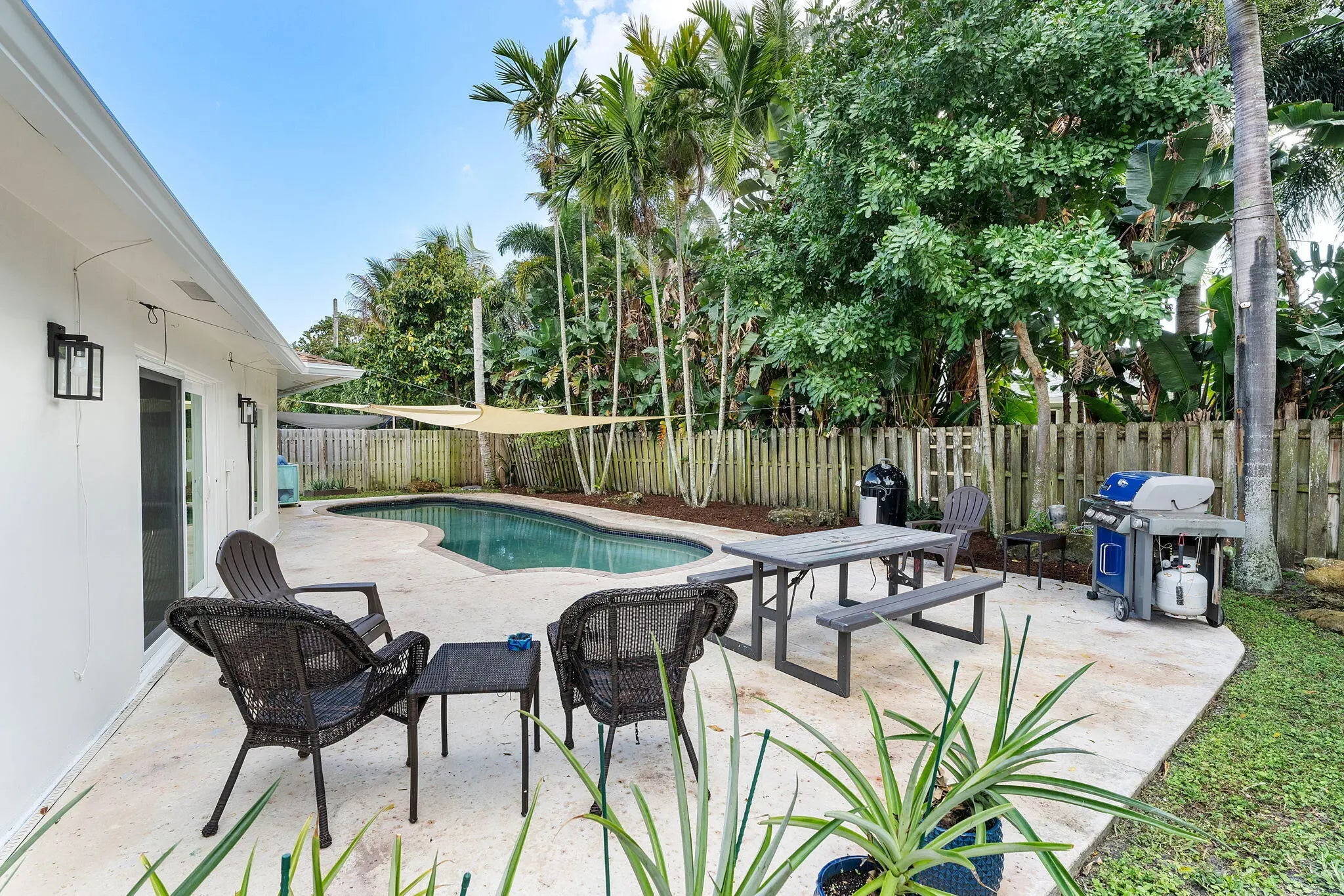 Location Location Location. Welcome home to this East Boca pool home in the highly desirable Old Floresta Neighborhood. Featuring 3 bedrooms and two bathrooms and over 2,000 square feet of living space. Roof is 2025, 100% complete impact windows, AC is 2/2026, new gutters, New Tankless water heater, oversized one car garage, fully fenced yard, pool pump is 2025. Master offers attached bathroom with large shower and walk in closet. Bonus room that is currently an office. No carpet, House has been fully painted inside and out, new landscaping with full irrigation. Large circle driveway. A rated schools, no HOA. Stones throw to Boca Regional hospital and FAU. Less than 1 mile to the beach and Mizner Park. Easy to show.