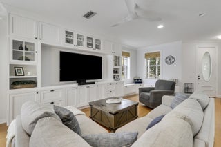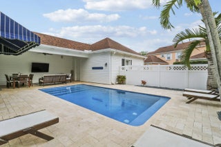 Come see this immaculate 3 bedroom + den (with a murphy bed), 2.5 updated bath pool home situated on a corner lot in the lovely New Haven subdivision of Abacoa. This open concept floorplan is perfect for both daily living as well as entertaining. The extended gourmet kitchen features quartz countertops, subway tiled backsplash, stainless steel appliances and a spacious pantry. Additional home features and upgrades include a newly fenced private backyard oasis featuring a covered patio and a tranquil newly resurfaced and retiled heated salt water swimming pool surrounded by a new travertine paver patio and turf, crown molding and chair rails throughout, a freshly painted interior welcoming covered front porch, full hurricane protection with accordion shutters throughout, a built in wall unit in the family/great room, hardwood flooring, plantation shutters, a spacious primary suite on the upstairs level with 2 walk in closets as well as an ensuite with dual sinks, a separate shower and separate soaking tub, a main level laundry room with newer Samsung washer and dryer, a 2 car garage with a double parking pad and more....Lennox Central AC (2021), pool heater (2020), roof (2019) and kitchen appliances (2019).