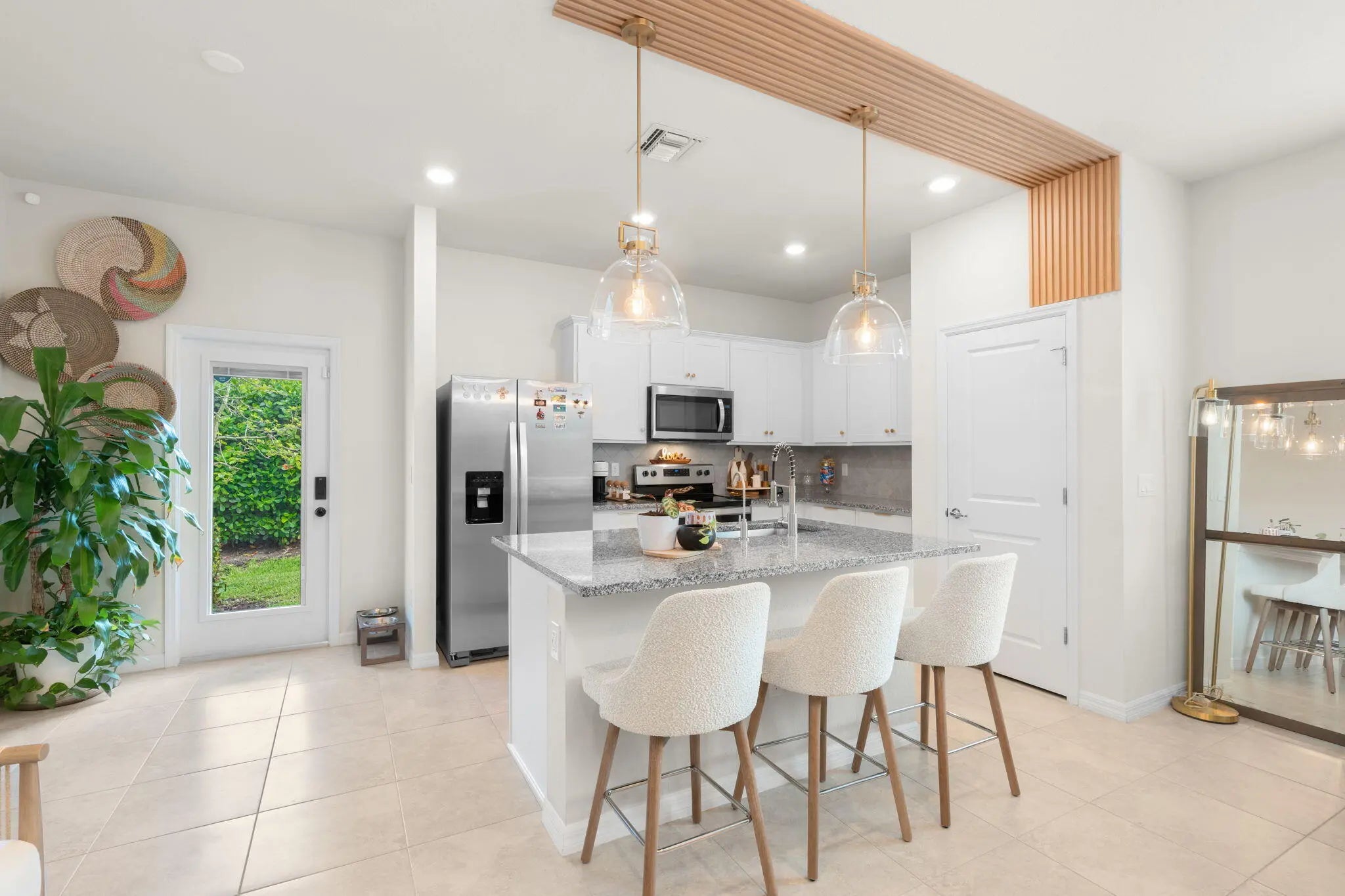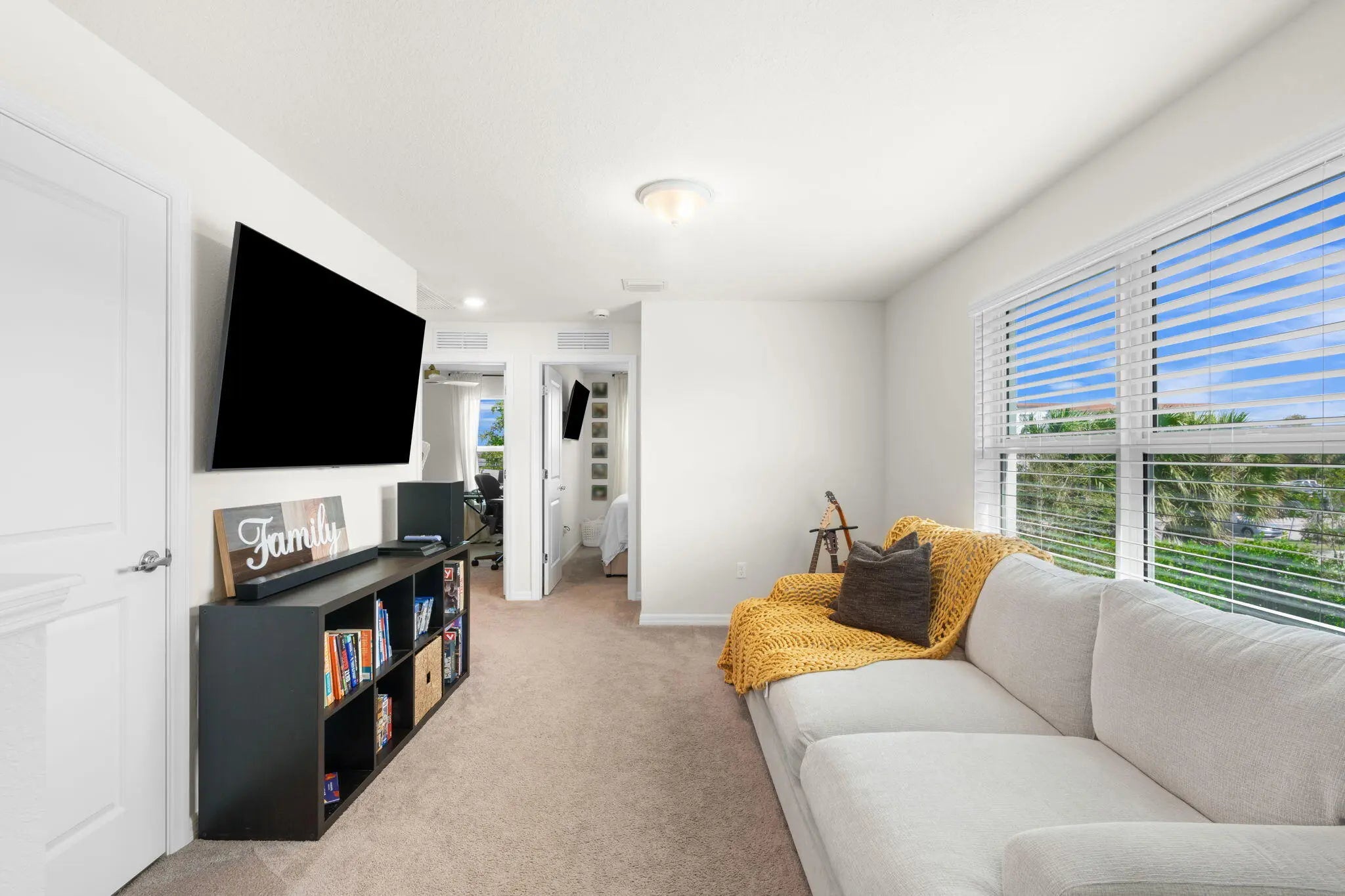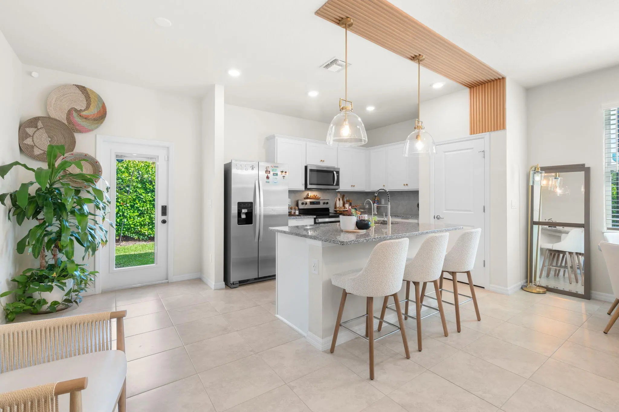 New community in 2024, gated community, loft style family room, 4 additional parking spaces adjacent to the property, park-like green space adjacent to the property, may be sold furnished if desired, home warranty from builder for 8 more years, energy efficient HVAC system, 10 minutes distance from I-95 and turnpike, executive airport, impact windows and doors throughout, neutral colors throughout the home, fiber internet included with the HOA, long walking track and green space around the lake, pet friendly community, security system in place, 16 inch neutral ceramic tile.