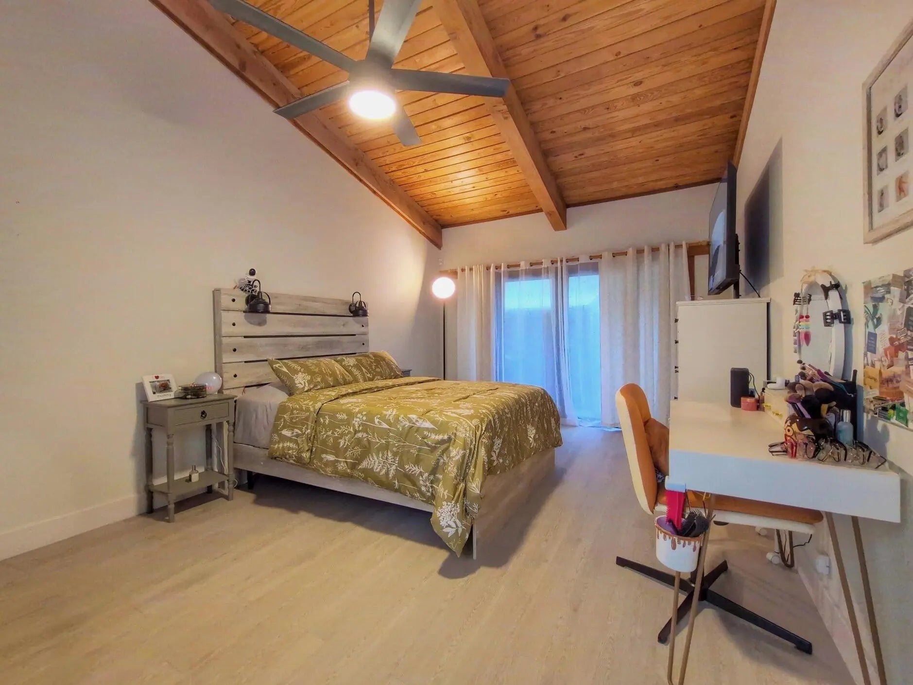 Welcome to Paradise. Beautifully updated 2-bedroom, 2-bath home in the sought-after Cedarwoods community of Pembroke Pines. This home features an open layout, a cozy loft space perfect for a home office, guest area, or creative retreat, & walk-in closets in both bedrooms. Enjoy a modern kitchen with custom-built cabinets, full backsplash, & all-new 2023 appliances, along with updated bathrooms, flooring, lighting. The main bathroom boasts a renovated walk-in shower, quartz vanity, & vessel sink, while the guest bathroom includes a quartzite vanity. French doors, epoxy flooring in the kitchen & dining area, a pergola in the backyard, & vaulted ceilings that create a bright, open, & airy atmosphere. 2 parking spaces in front of unit. Low HOA of $124/mo. Accordion shutters throughout.