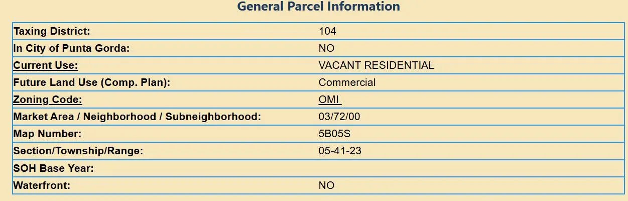 Beautiful vacant land in Punta Gorda with an excellent opportunity, zoned OMI. Located near downtown Punta Gorda provides convenient access to local amenities, shopping, dining, and entertainment, Charlotte Harbor, Port Charlotte and more, while being just a short drive from US-41, I-75 for connectivity to surrounding areas. Buyer to verify all measurements, zoning uses, building requirements, and utility information with Charlotte County.