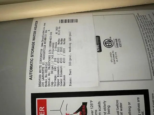 Electric Water Heater, Dishwasher, Electric Range, Microwave, Refrigerator, Water Heater