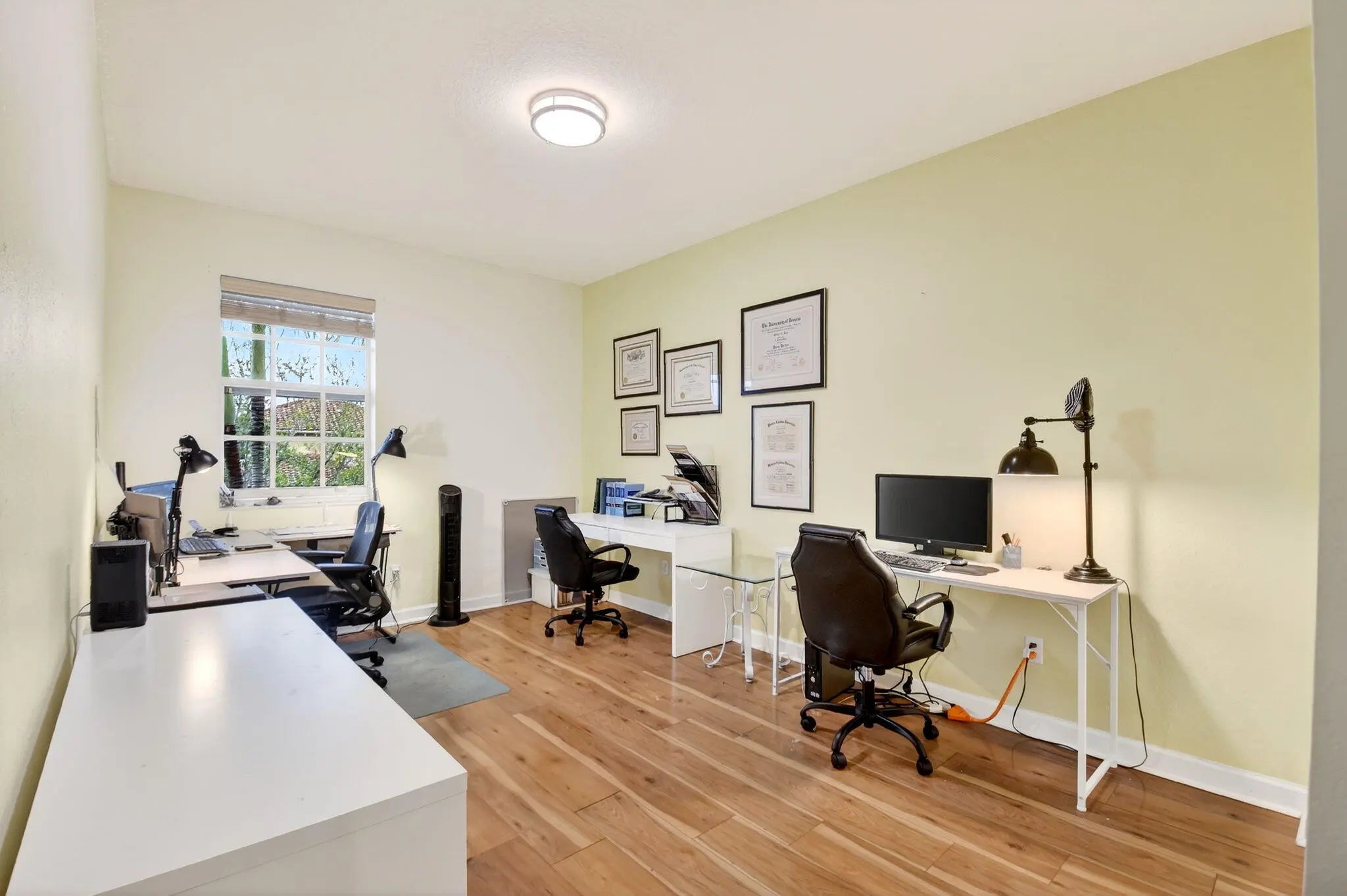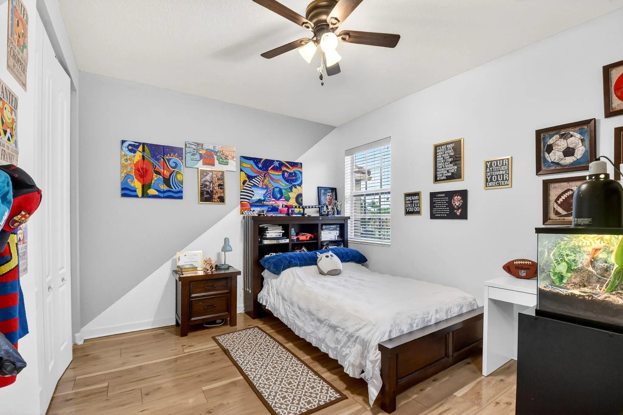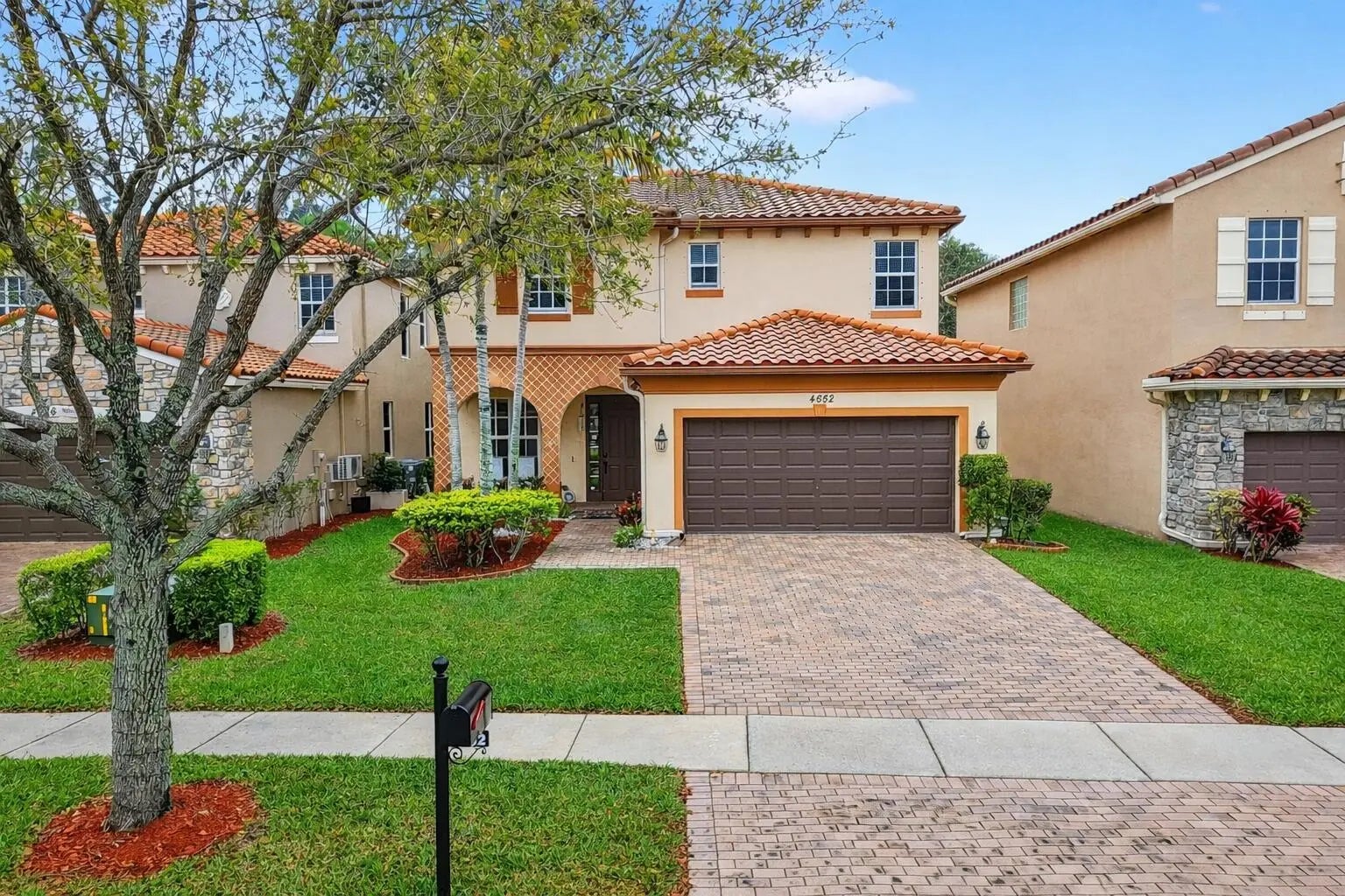 Welcome to this beautifully maintained 5-bedroom, 3-bathroom home, offering a spacious open floor plan, modern finishes, and the perfect setup for multi-generational living. Located in a peaceful, friendly gated community with low HOA, this home delivers both comfort and long-term value. Designed for today's lifestyle, the home features volume ceilings, abundant natural light, and an open-concept layout that creates a seamless flow between living, dining, and kitchen spaces—ideal for both everyday living and entertaining. The chef's kitchen is the centerpiece of the home, complete with a large center island, solid granite countertops, and rich wood cabinetry, offering ample prep space and storage. Perfectly positioned, it opens directly to the main living areas—making this truly an entertainer's dream. A highly desirable first-floor bedroom and full bathroom provides flexibility for guests, in-laws, or a private home office, making this an ideal multi-generational living opportunity. Upstairs, the luxurious primary suite retreat features a spa-inspired ensuite bathroom with a soaking tub, walk-in shower, dual vanities, and two oversized walk-in closets—creating a private and relaxing sanctuary. Additional bedrooms are generously sized, offering comfort and privacy for the entire family. Enjoy true indoor-outdoor living with a large private backyard with room for a pool, perfect for creating your own outdoor oasis or entertaining year-round in the South Florida lifestyle. Additional highlights include a spacious 2-car garage, excellent storage, and a light and bright, impeccably maintained interior. Residents of Capistara enjoy access to a community playground/park, all while being centrally located near shopping, dining, major highways, and top-rated A+ schools—a true prime location.