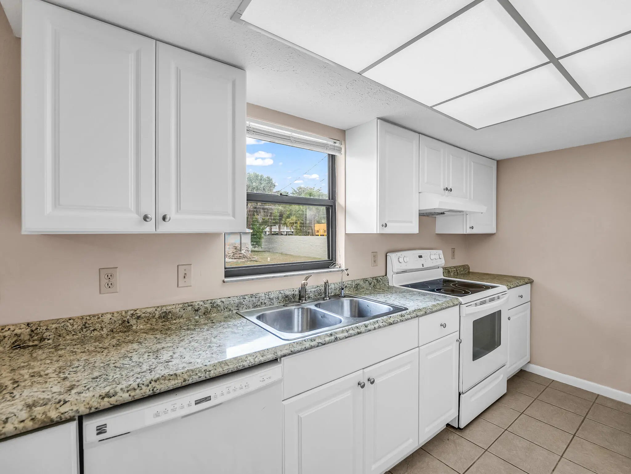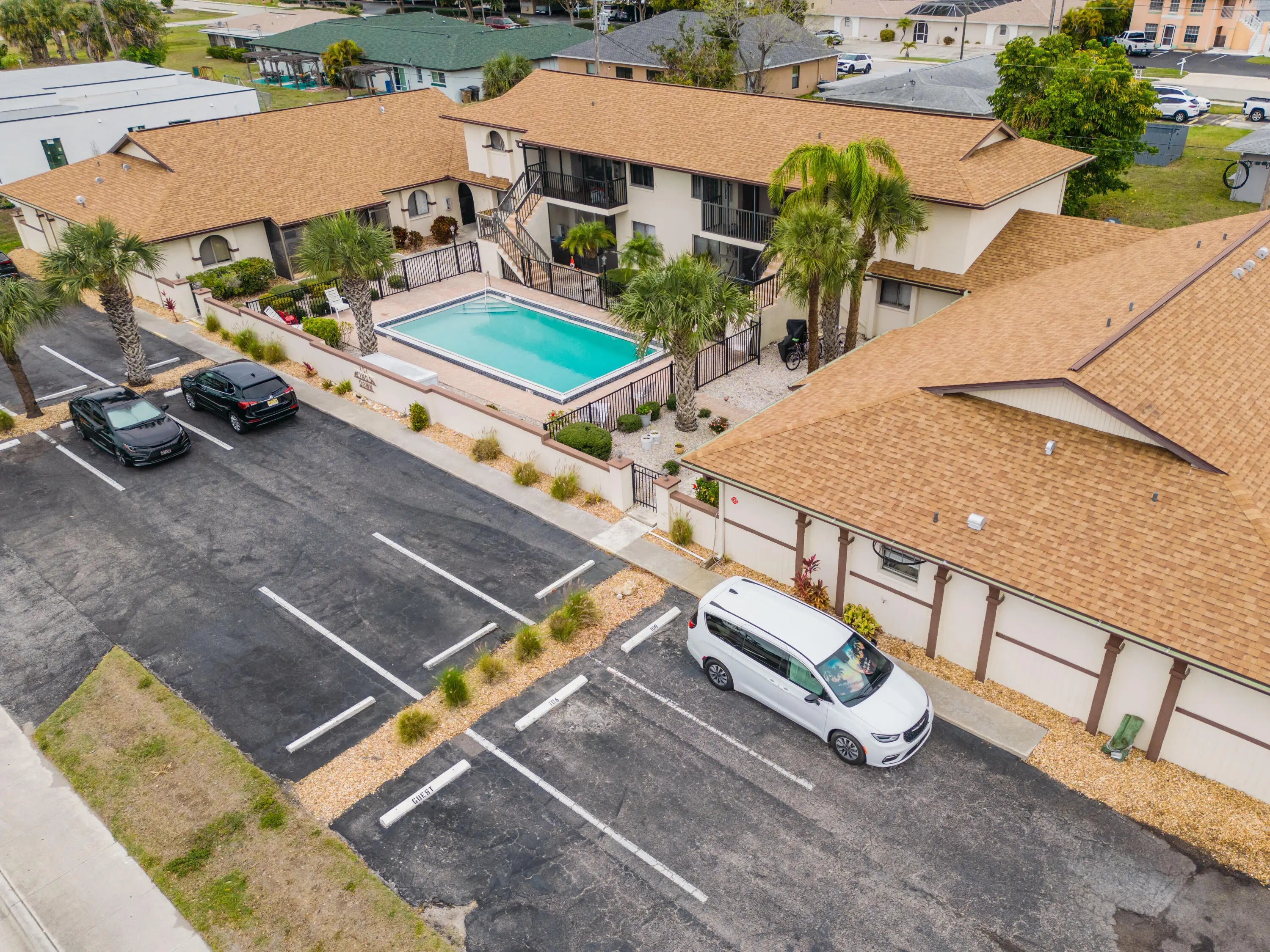 Welcome to this charming corner unit in the Kingsdown community, a one-story building that offers a comfortable living space perfect for both personal enjoyment and investment potential. Inside, you'll find a bright open layout featuring a welcoming living area and a functional kitchen, complete with a washer and dryer for added convenience. The two spacious bedrooms provide plenty of room for rest and privacy. Step outside to your private screened lanai, where you can enjoy a partial view of the pool—ideal for relaxing with your morning coffee or unwinding in the evening. Residents of Kingsdown also have access to the community pool and spa, enhancing the appeal of this lovely neighborhood. Conveniently located near shopping, dining, and major roads, this property is an excellent option for anyone seeking a low-maintenance lifestyle or a smart investment opportunity. Don't miss your chance to make this corner unit your new home!