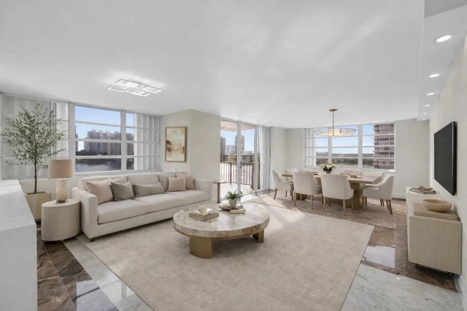 Enjoy breathtaking panoramic views from this fully upgraded 2-bed/2-bath corner unit at Commodore Plaza. Unobstructed bay and city views from the expansive balcony, cast radiant light into every room. Only minutes from the most beautiful beaches. This gem features a renovated kitchen with top-of-the-line stainless steel appliances and recessed lighting. Enjoy a wealth of amenities, including 24/7 security, tennis courts, basketball hoop, 2 pools, fitness center, marina access, bicycle storage, and a BBQ area. Covered parking space. Conveniently located near Aventura Mall, shops, restaurants, and the vibrant entertainment that Aventura offers. This residence invites you to experience resort-style living with awe-inspiring sunrises and urban walkability. Your waterfront oasis awaits.