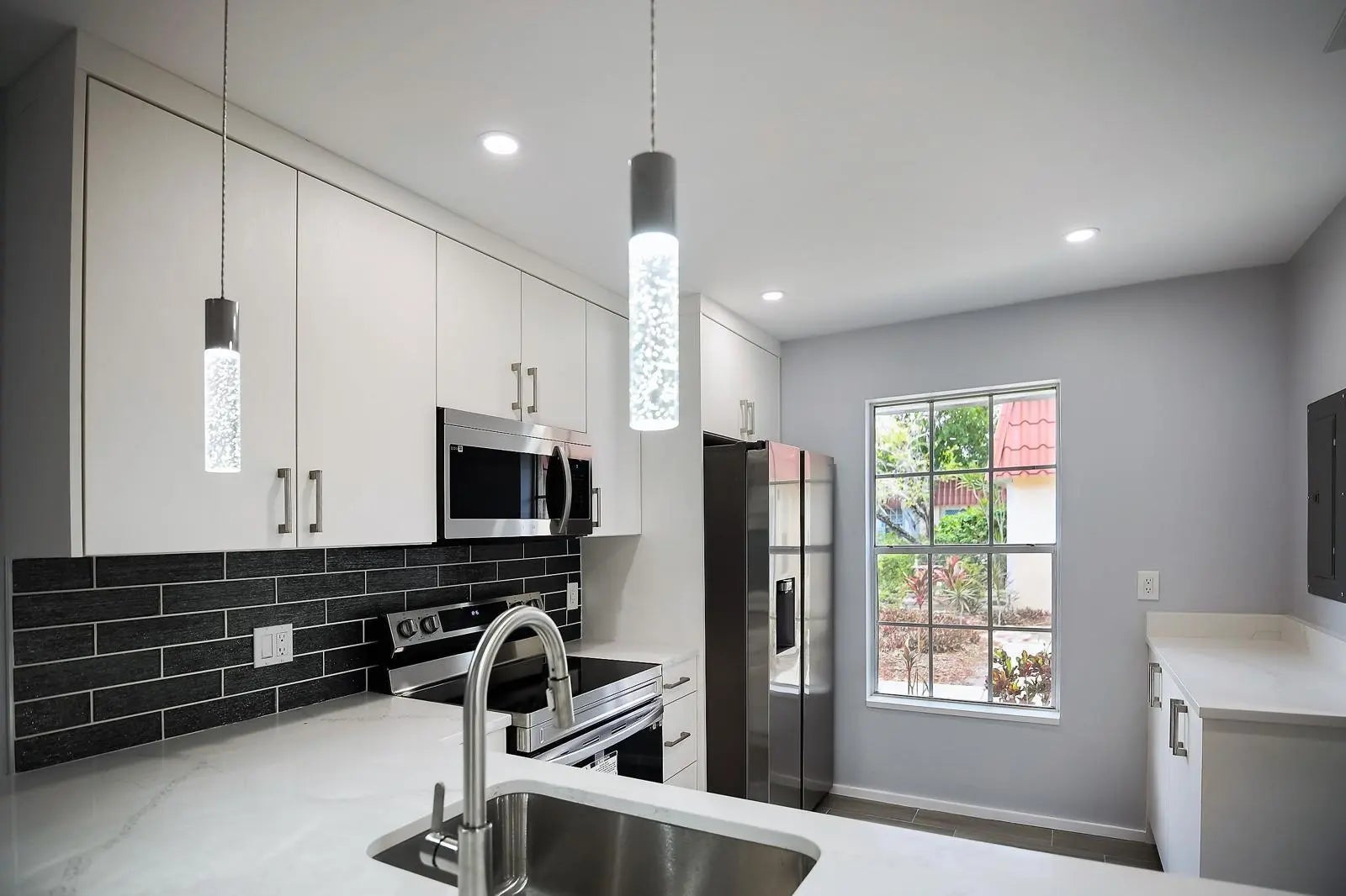 Beautiful renovated villa counts with 2 amazing bedrooms, with 2 stylish bathroom, modern kitchen, and huge closet. The kitchen boasts stainless steel appliances and a striking island feature, perfect for culinary enthusiasts. Nestled in a lovely community, this villa perfectly complements the coveted Florida lifestyle. THE LOCATION is a remarkable bonus, as it provides easy access to an array of amenities, including a variety of restaurants, supermarkets, and bustling plazas. PLUS Close to an amazing clubhouse with pool, fitness center, and recreational facilities. THIS IS A 55+ COMMUNITY