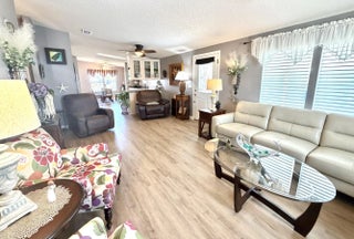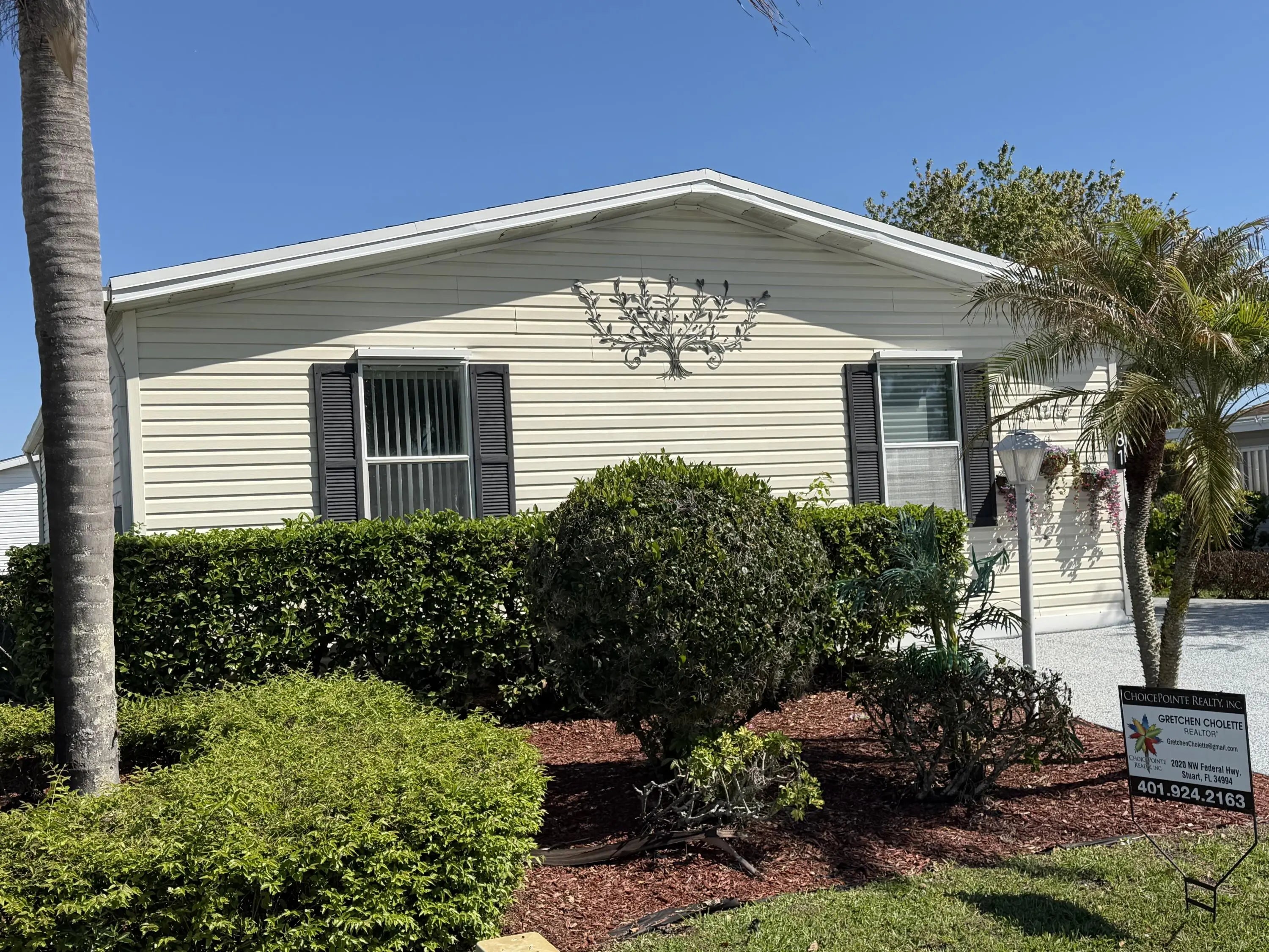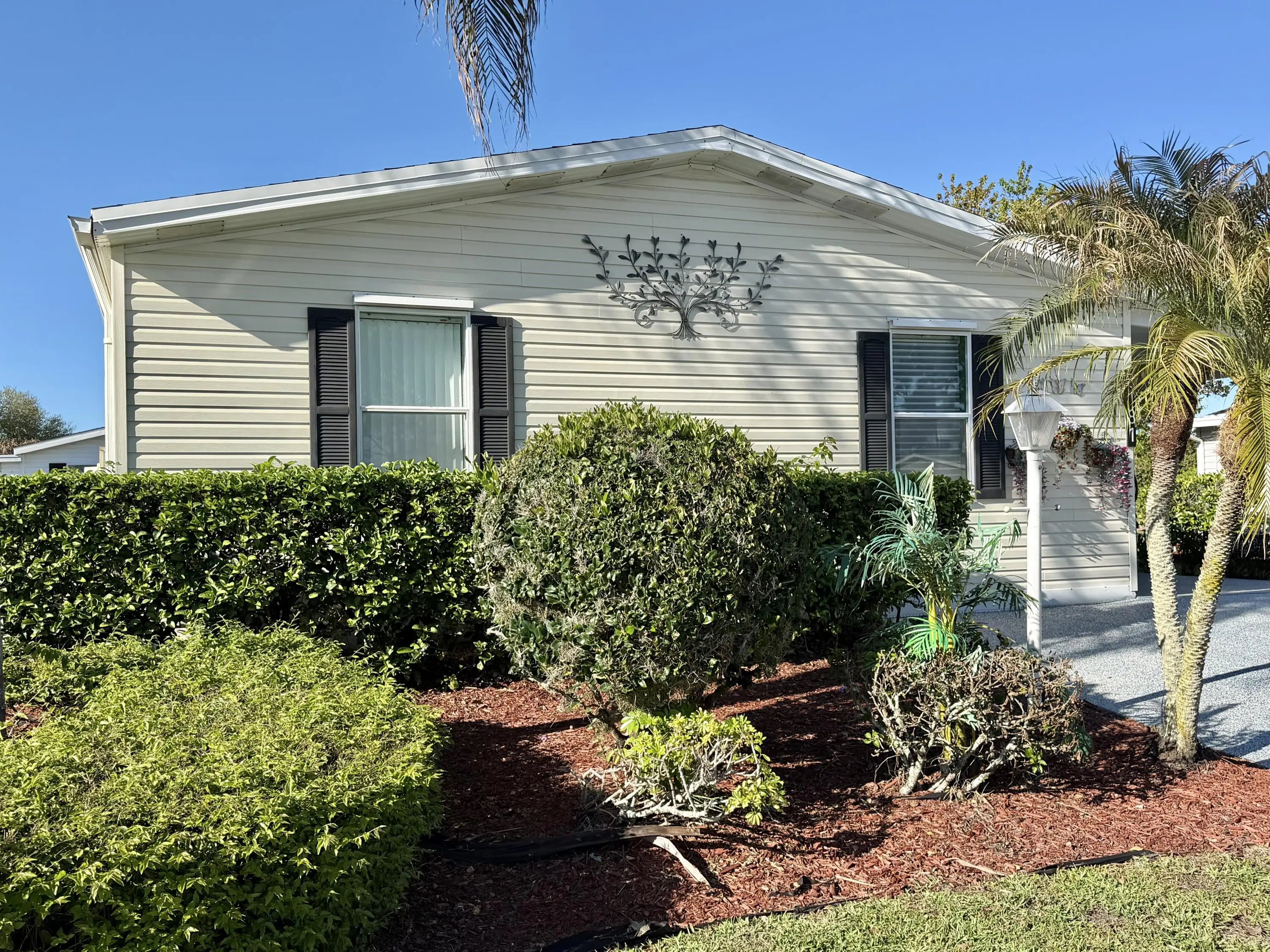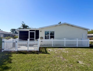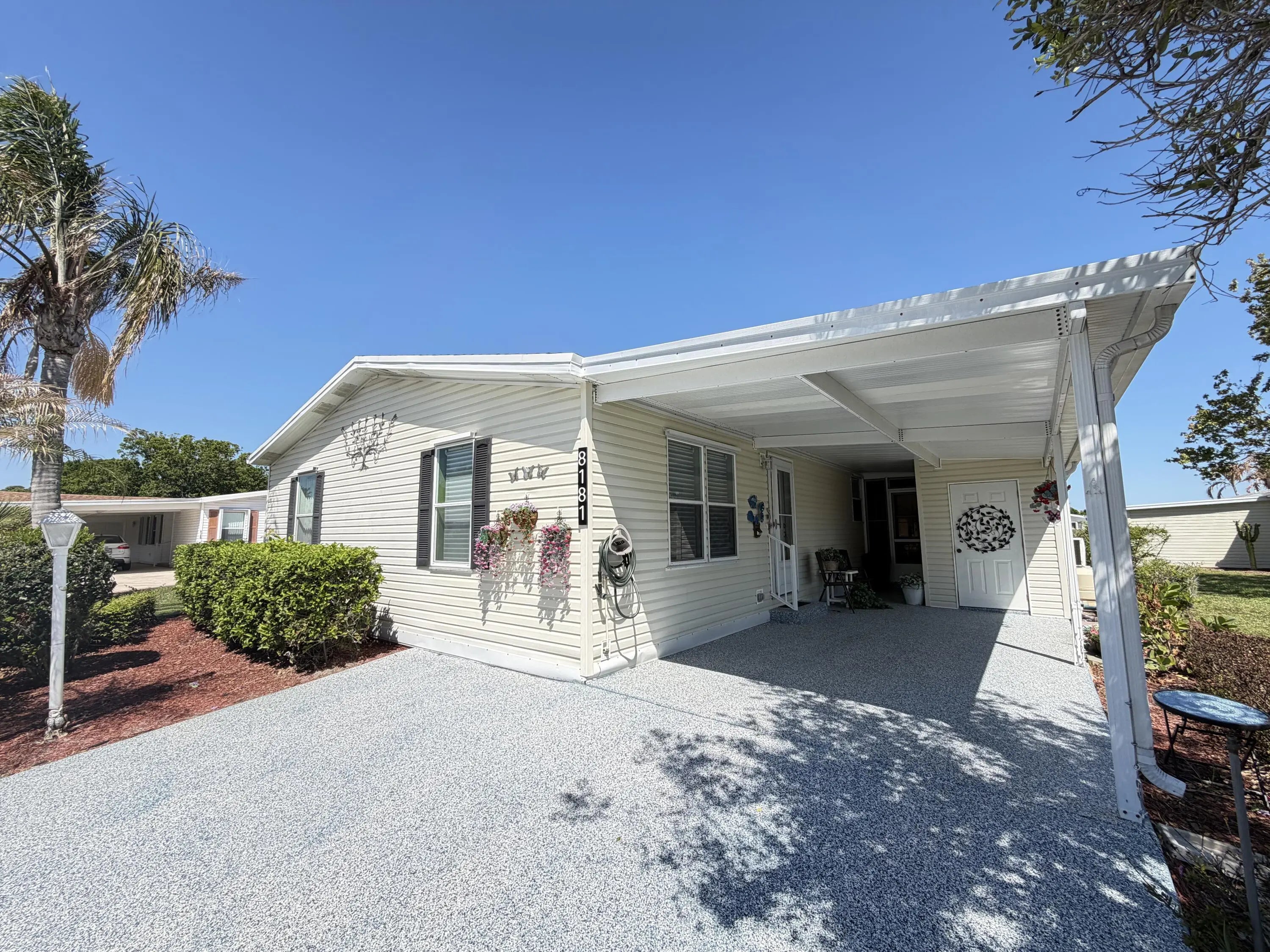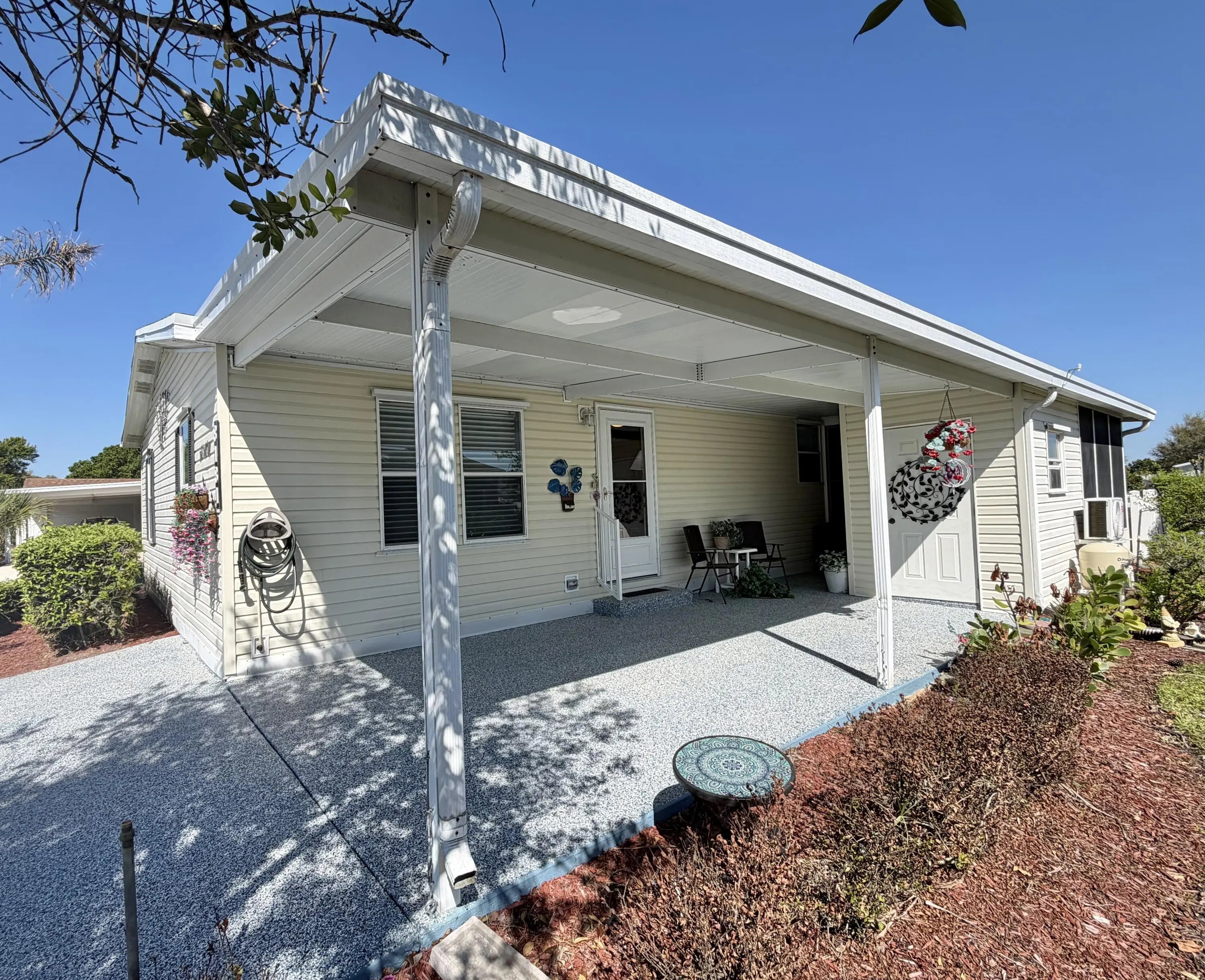 RARE! Pet friendly Property with fenced in pet safe grass and patio area! Bright modern 2 Bedroom/2 Bath turnkey home in desirable Savanna Club! Immaculately maintained and updated home features Luxury Vinyl flooring, recently refinished designer driveway, custom electric blinds for convenience and privacy. Split bedroom plan offers maximum privacy for you and your guests. Kitchen features sunny eat in dining space that leads to a charming lanai with new Mini-split. Recent Improvements Include: Roof: 2023 A/C: 1 month old New Mini Split, Tie Downs: 10 months old, Vapor Barrier: Recently inspected within past year. Primary bedroom features soothing color palette and attached bathroom offers dual sinks and walk in shower. Shed offers storage for golf and gardening supplies.