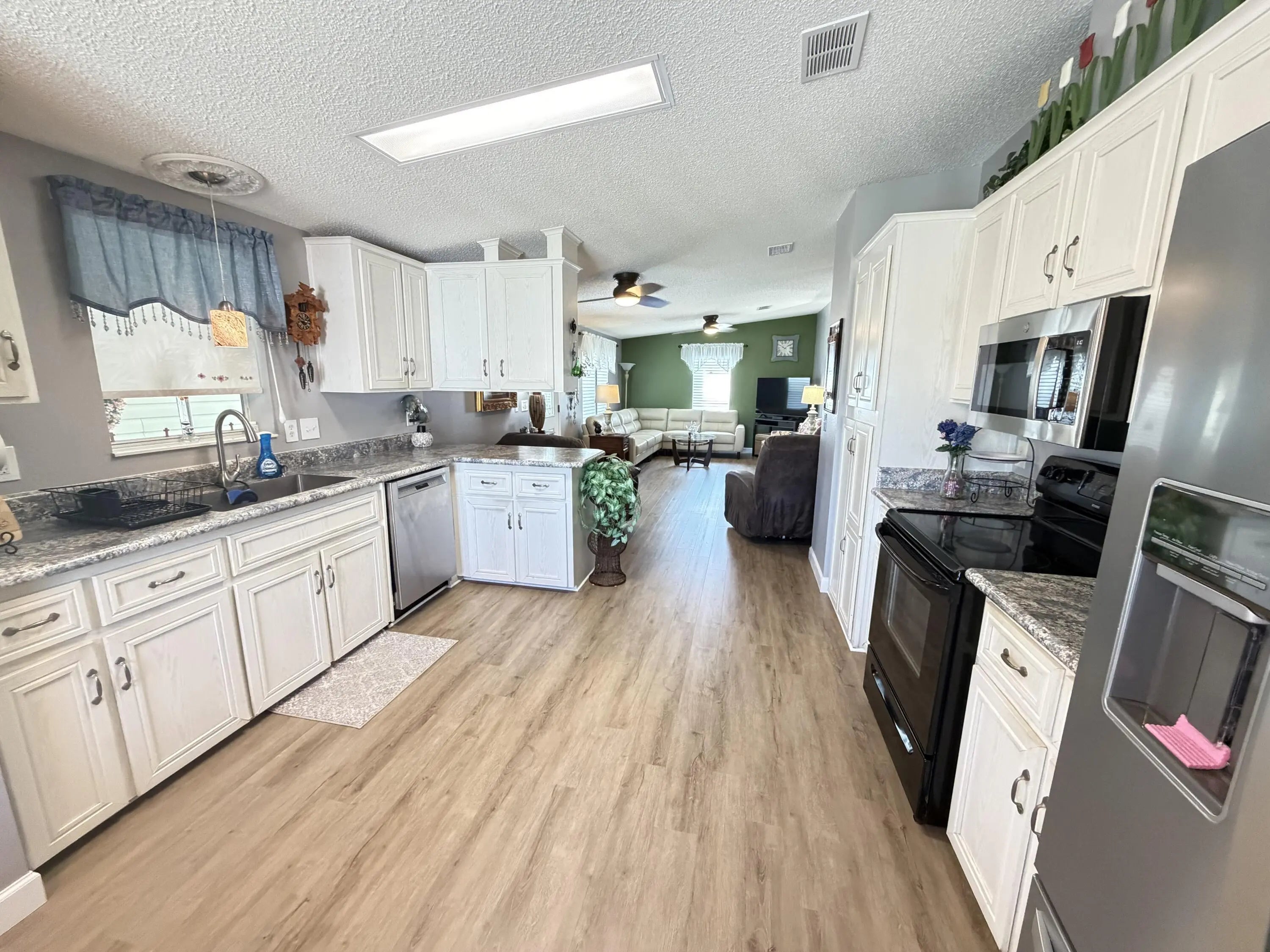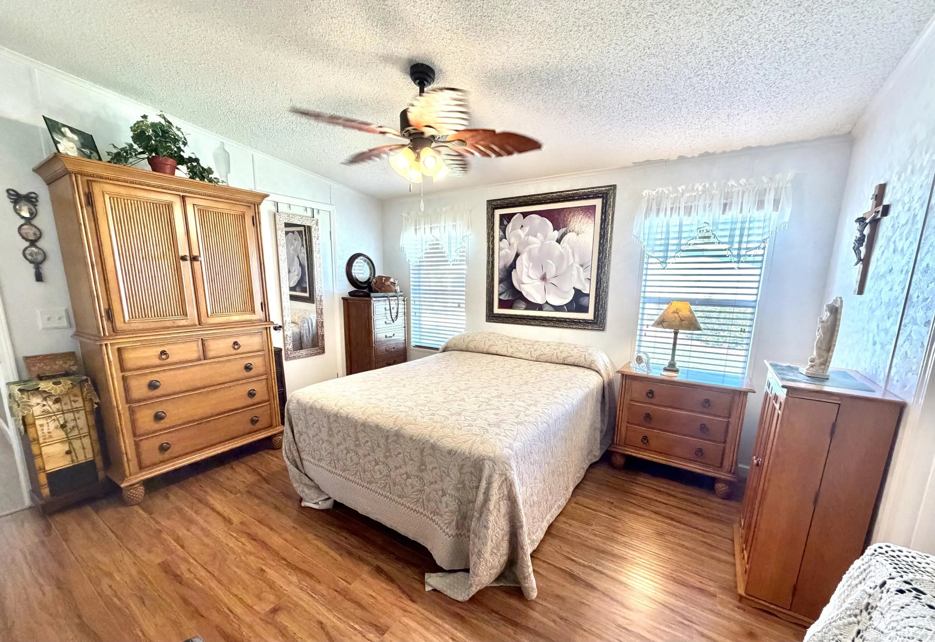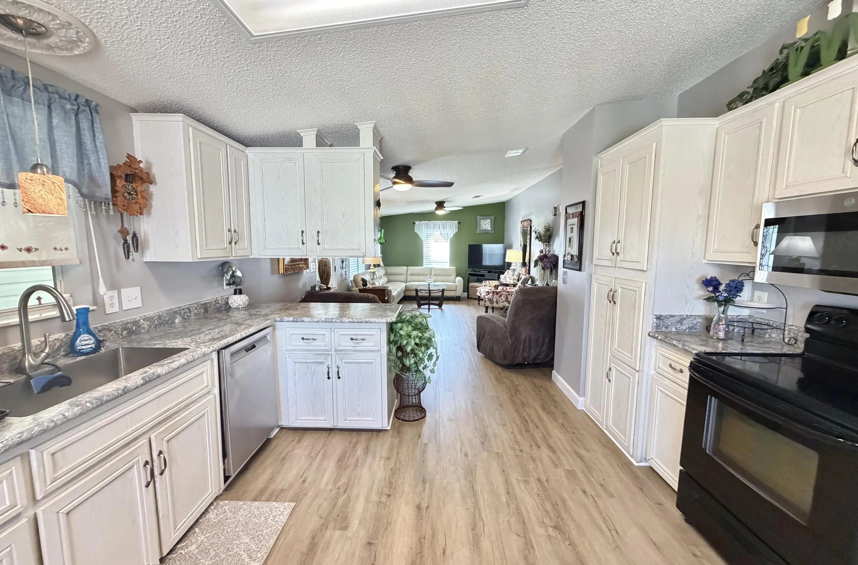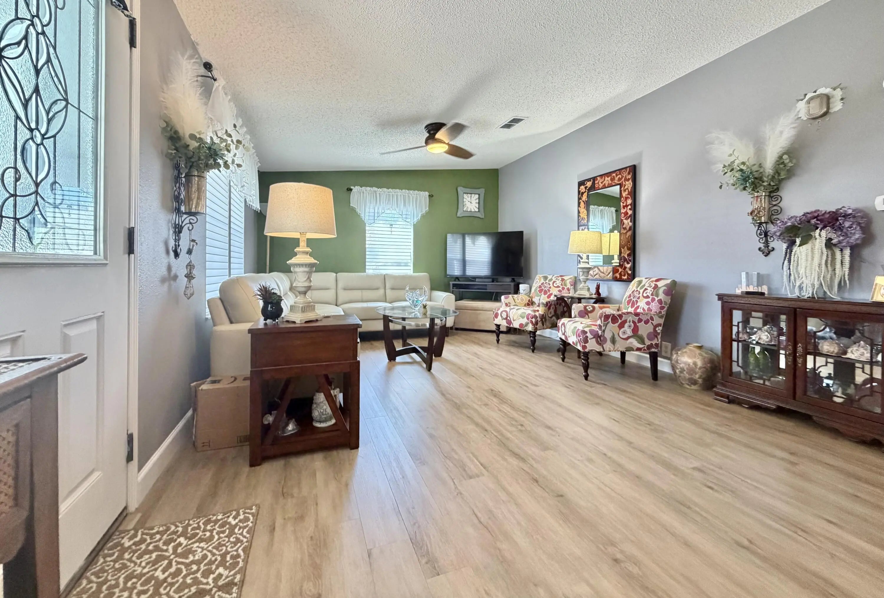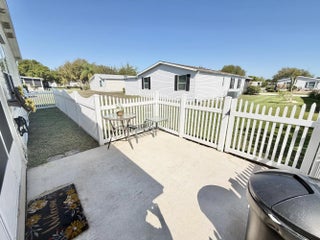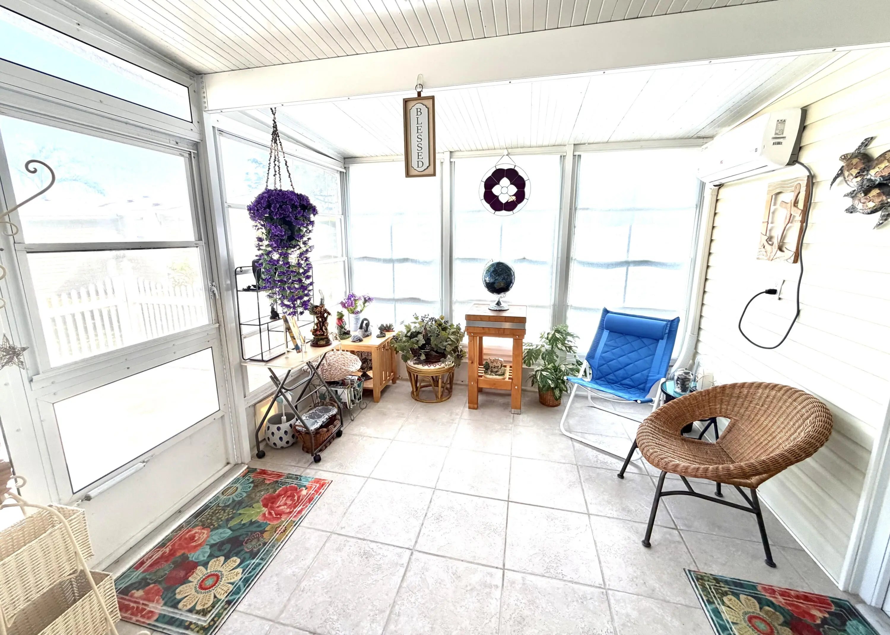 RARE! Pet friendly Property with fenced in pet safe grass and patio area! Bright modern 2 Bedroom/2 Bath turnkey home in desirable Savanna Club! Immaculately maintained and updated home features Luxury Vinyl flooring, recently refinished designer driveway, custom electric blinds for convenience and privacy. Split bedroom plan offers maximum privacy for you and your guests. Kitchen features sunny eat in dining space that leads to a charming lanai with new Mini-split. Recent Improvements Include: Roof: 2023 A/C: 1 month old New Mini Split, Tie Downs: 10 months old, Vapor Barrier: Recently inspected within past year. Primary bedroom features soothing color palette and attached bathroom offers dual sinks and walk in shower. Shed offers storage for golf and gardening supplies.