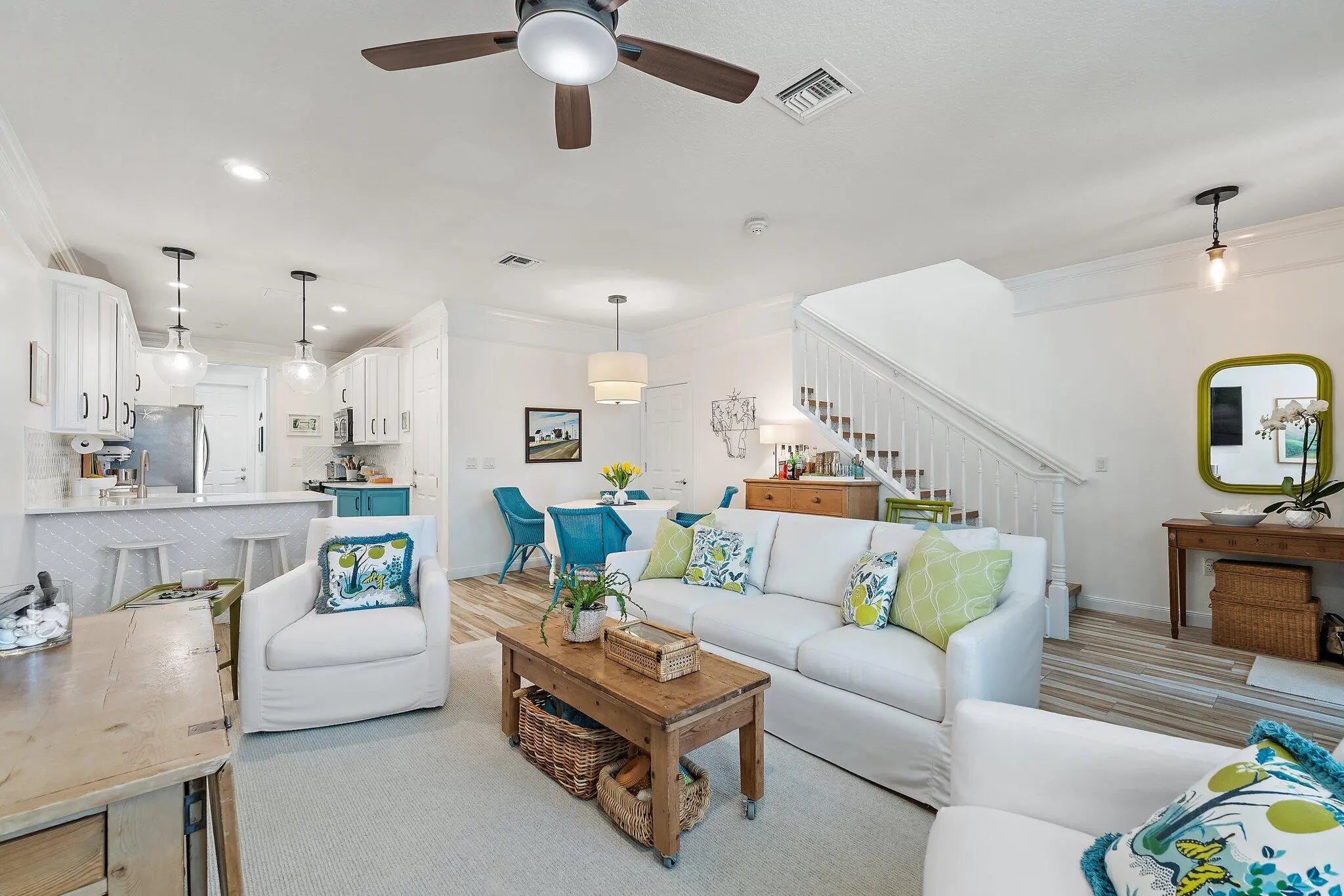 This beautifully upgraded DiVosta CBS-constructed townhome offers a rare blend of quality craftsmanship and turnkey comfort. Thoughtfully maintained by the same owner for 15 years and carefully reimagined in recent years, every detail has been considered. The kitchen was updated in 2023 and features a stunning quartz waterfall countertop with complementary tile backsplash. The primary bath renovation 2022 showcases floor-to-ceiling white subway tile, glass mosaic shower tile, a seamless shower door, and premium Kohler fixtures. The powder bath 2022 was refreshed with a new vanity, updated fixtures, and a charming designer wall covering. Throughout the home you'll find wood-look ceramic flooring 2022, a freshly painted interior, plantation shutters, upgraded lighting and ceiling fans, tall-profile Kohler toilets, upgraded appliances, and new window screens, all contributing to a truly move-in ready experience. A long-lasting metal roof adds lasting peace of mind. Select furnishings are negotiable with the sale. Three outdoor spaces, a front porch and two upstairs balconies, invite you to slow down and enjoy the Florida lifestyle. Mallory Creek is nestled within the prestigious Abacoa community, offering lush tropical surroundings and resort-style amenities: two community pools, a clubhouse with gym, scenic greenways, and well-lit tree-lined sidewalks. Pickleball, tennis, golf, and a skate park are all nearby. Abacoa Town Center delivers dining, shopping, live music, and Roger Dean Chevrolet Stadium, the spring training home of the St. Louis Cardinals and Miami Marlins. Jupiter is one of Palm Beach County's most sought-after addresses, celebrated for its pristine beaches, championship golf, premier boating, and top-rated schools. Easy access to major thoroughfares puts you 30 minutes from Palm Beach International Airport, about an hour from Fort Lauderdale/Hollywood International, and 1.5 hours from Miami International. A rare opportunity to own a move-in ready home in one of Jupiter's most desirable communities.