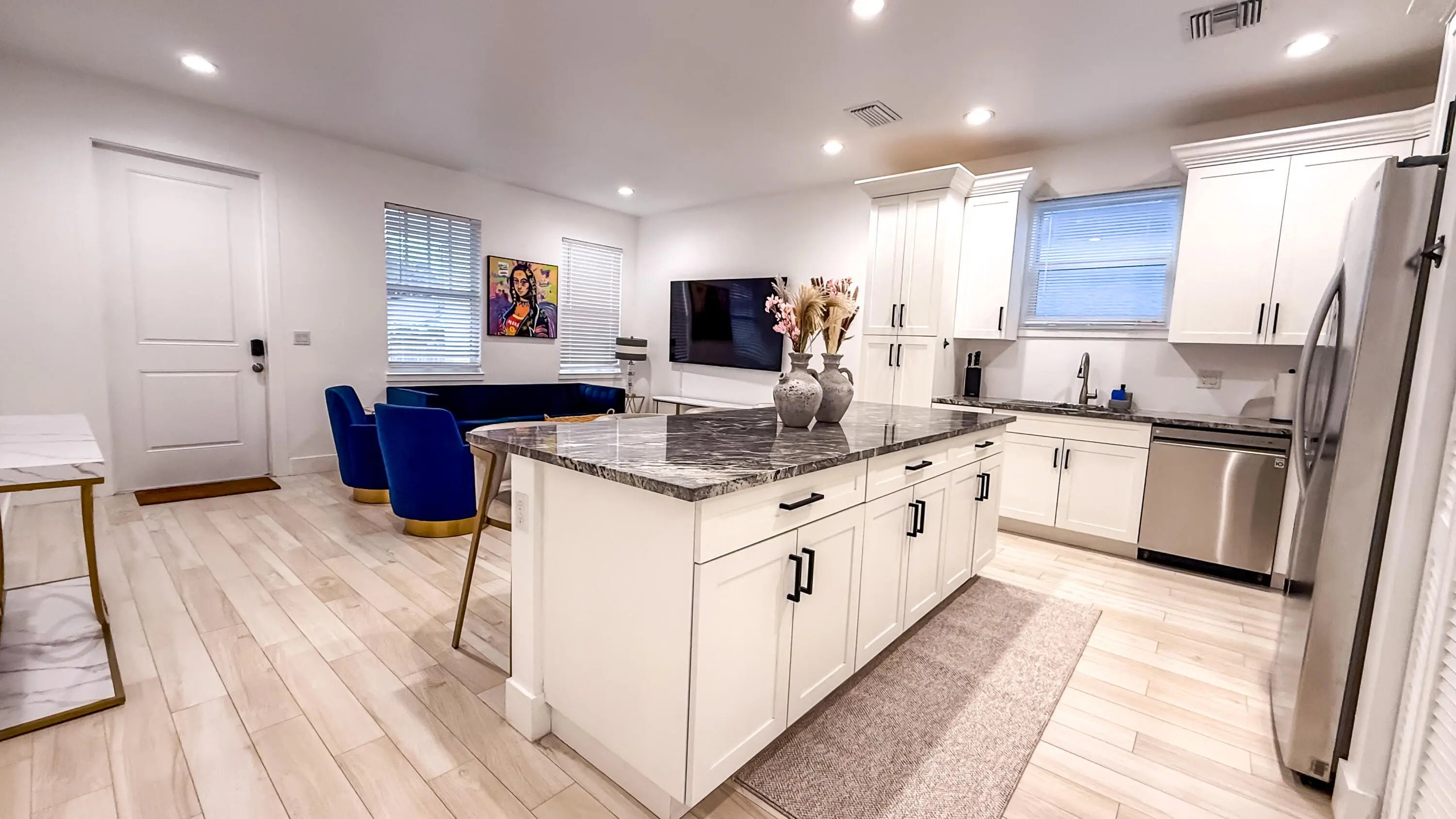 Step into contemporary comfort with this beautifully crafted home. Offering three bedrooms and two bathrooms, this home delivers both style and function. The interior boasts sleek tile flooring throughout, custom lighting, and a thoughtfully designed open layout that's perfect for entertaining. At the heart of the home, you'll find a stunning gourmet kitchen equipped with high-end stainless appliances, quartz countertops, and a spacious island ideal for casual dining or gathering with friends. Impact-resistant windows and doors provide peace of mind, while upscale designer touches add a sense of refinement to every room. Step outside to your own private escape a heated in-ground pool surrounded by a fully enclosed yard, offering a quiet and comfortable setting to relax or entertain year-round. Situated just a short drive from the beach and also the vibrant energy of downtown Lake Worth, you'll enjoy convenient access to local dining, shopping, and cultural events. This home is available for seasonal rental fully furnished, with options for long-term leasing either furnished or unfurnished depending on your needs. Reach out for terms in each.