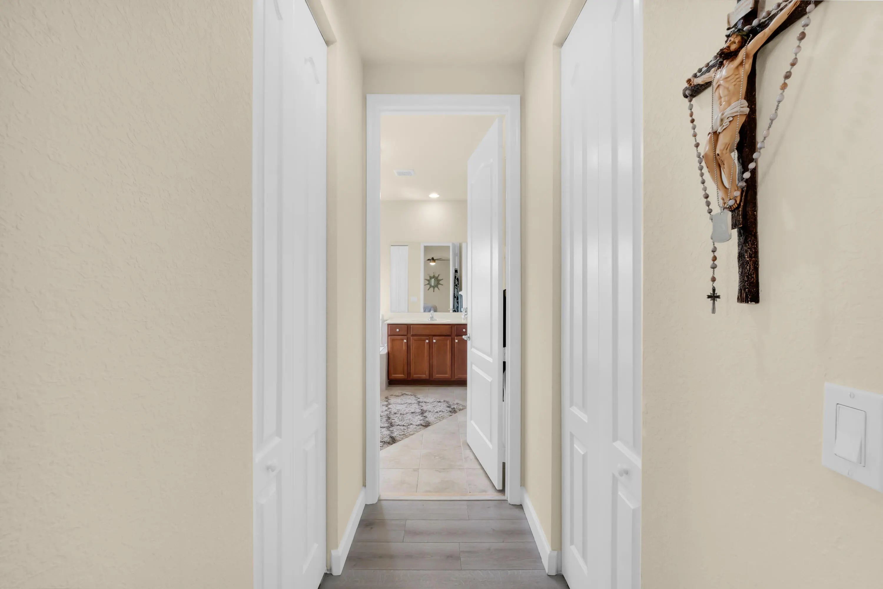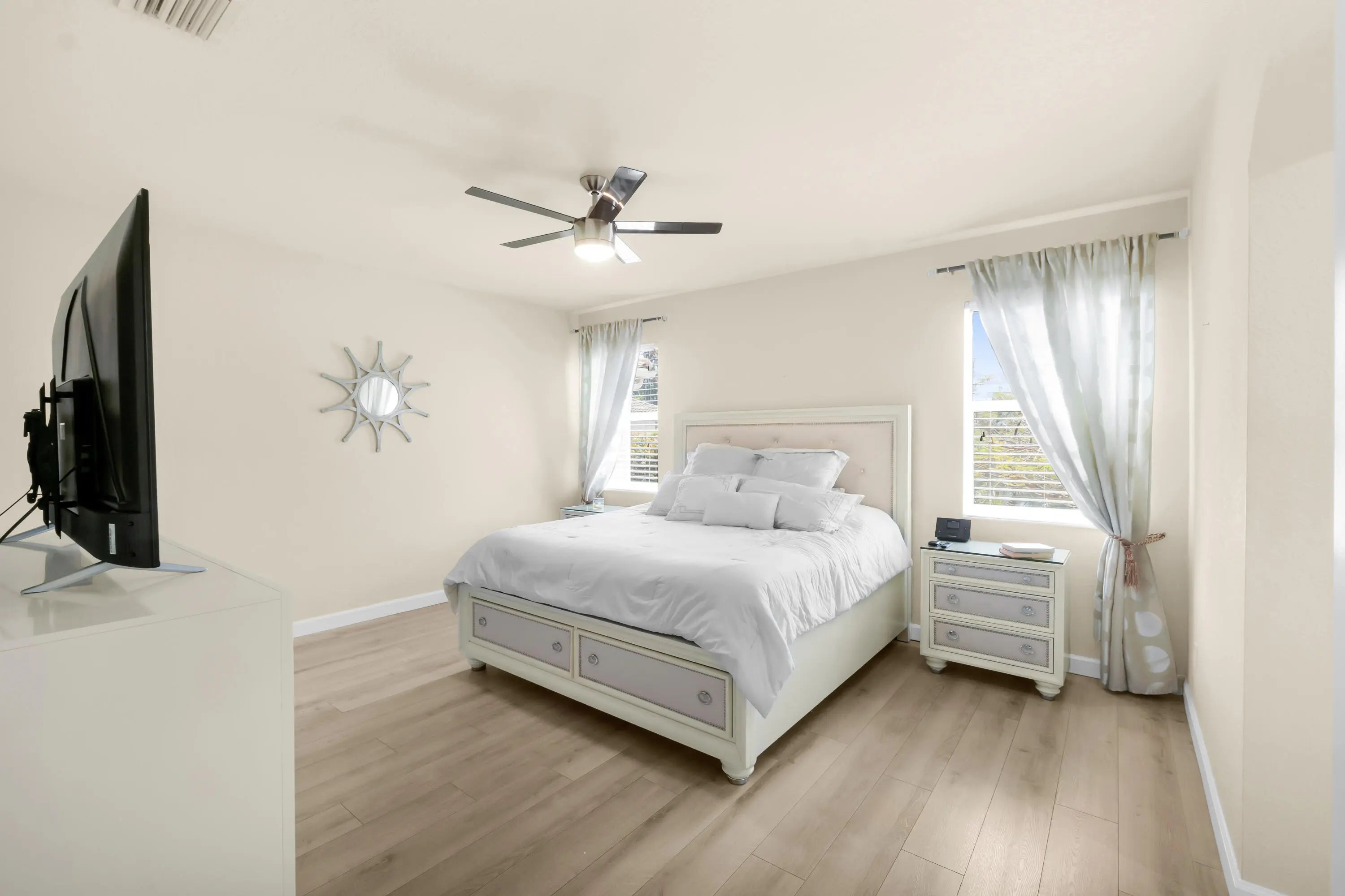 A small community and quiet neighborhood with B+ and A rated schools right near you. This well maintained home features 5 bedrooms/3 full baths is located in a dead end street with only 8 homes. No neighbors front and back of you plus a roundabout at the end of the street. Never have a problem for guest parking during holidays. Nice wooded area in front and a serene lake in your backyard. Home is fenced in with a nice yard and room for a pool. A family friendly community with low maintenance fees and newer A/C. Close to I-95 and the Turnpike plus minutes away from the beach, restaurants and shopping. Also, about 15 minutes to West Palm Beach Airport. Don't miss the opportunity to view this home.. As you enter the gates of Capistara you will enjoy the well maintained landscape of the community and the beautiful street lights at night. It's amazing that it gives you the feeling you are in a peaceful secure place.