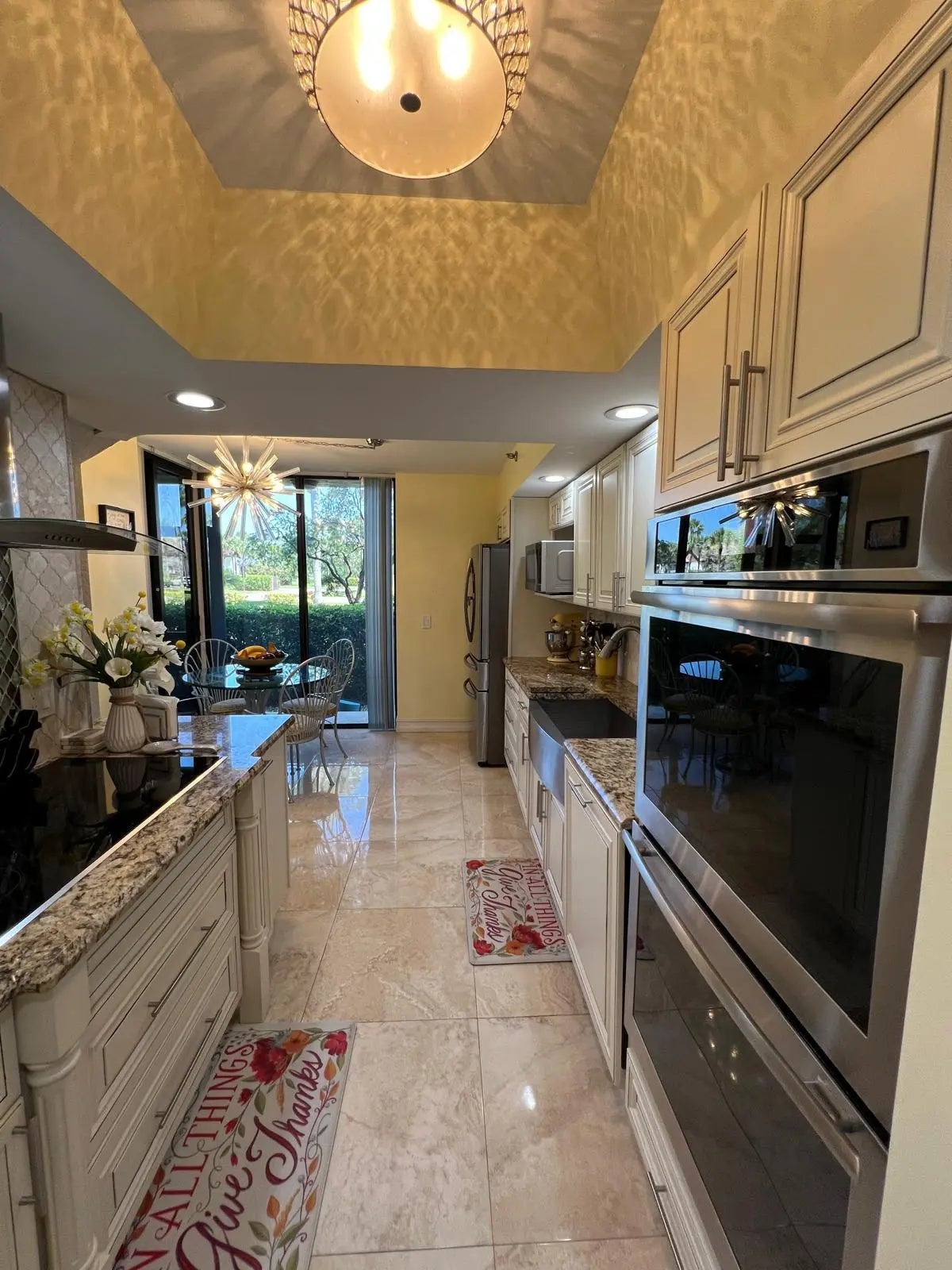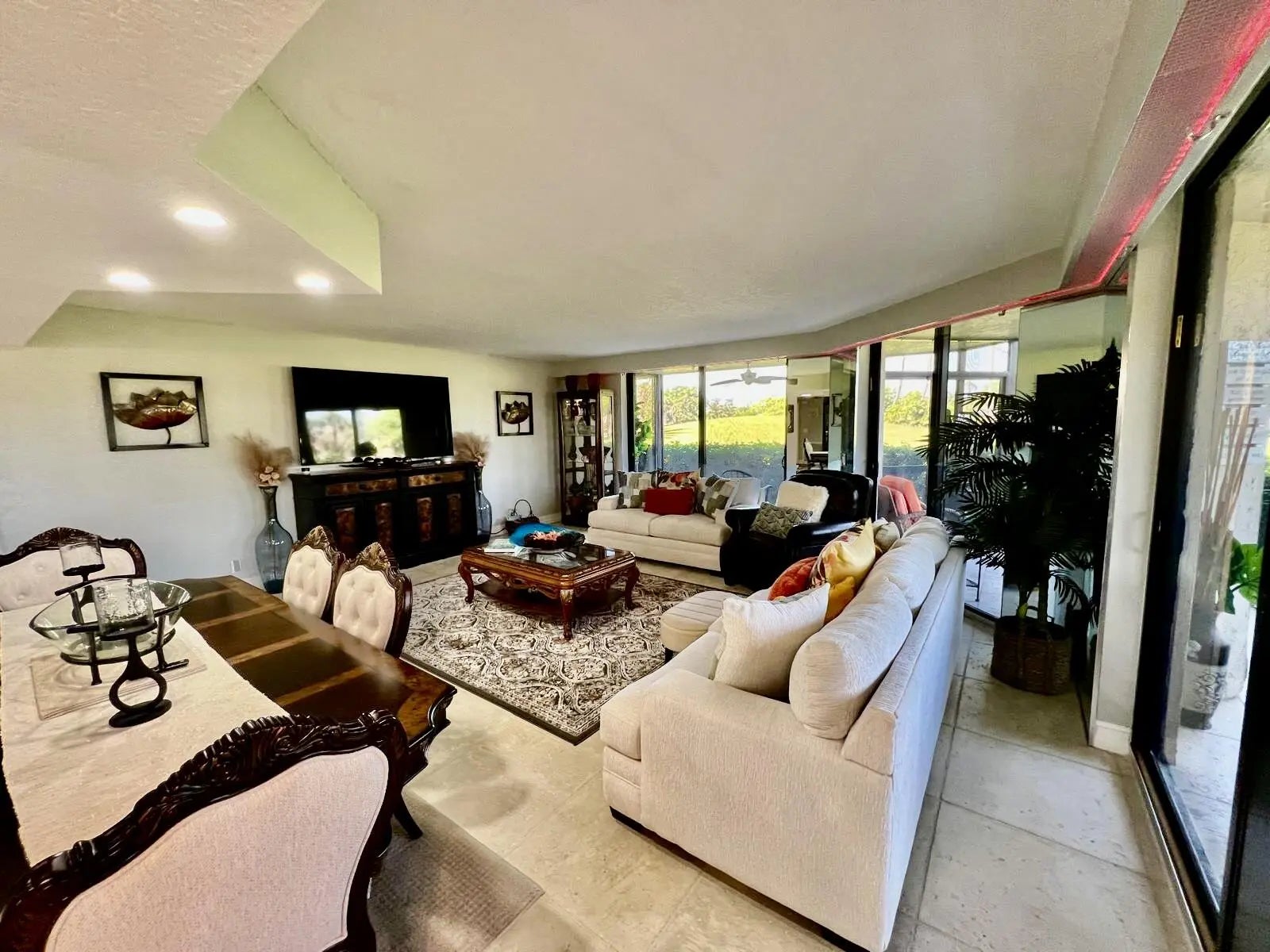 Exceptional 1st-floor corner condo with sweeping golf-course views from the primary bedroom, living room and kitchen. Spacious 1,757 SF, 3BR/2BA layout in an all-age, gated community; non-mandatory social and golf memberships available. Bright, open living area opens to a wrap around screened patio; all hurricane-impact windows. Upgraded kitchen with induction stove, convenient wet bar, and in-unit laundry with wet sink. Can be rented immediately (max 2 times per year; minimum 90-day rentals) with HOA approval. Secure, maintenance-friendly building between PBI and FLL (MIA within easy reach). Ideal for full-time living or seasonal getaway.