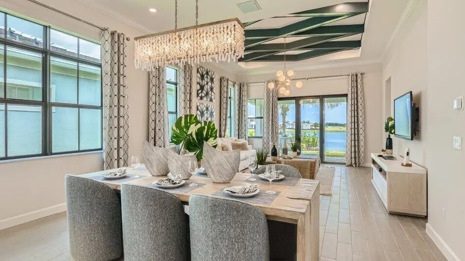 Designed for low-maintenance living, this single-story home showcases a cohesive layout that blends the kitchen, dining room and living room together for seamless transitions between spaces. Through glass-sliders is a covered terrace for outdoor relaxation. Partially secluded from the open floorplan is a flex space ideal for at-home work. Two secondary bedrooms are split by a Jack-and-Jill style bathroom with convenient dual sinks, while the owner's suite with adjoining bathroom is tucked away for added privacy. Prices, dimensions and features may vary and are subject to change. Photos are for illustrative purposes only.