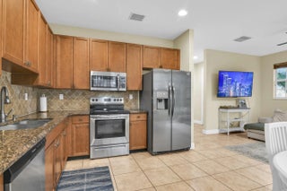Beautiful corner townhome in the desirable community of Briella in Boynton Beach. This home features a first-floor primary suite, with two bedrooms and a loft upstairs. Open kitchen with granite countertops, tile flooring throughout the main level, vinyl flooring in the primary bedroom, and bamboo flooring upstairs. The primary suite offers a walk-in closet and bath with dual sinks, separate tub, and shower. Briella is a pet-friendly, all-ages community with amenities including a pool, fitness center, playground, tennis, and basketball courts. HOA covers exterior insurance and maintenance, roof, common areas, amenities, and ADT home monitoring, with fully funded reserves. Conveniently located in top rated school district and close to shopping and dining.
