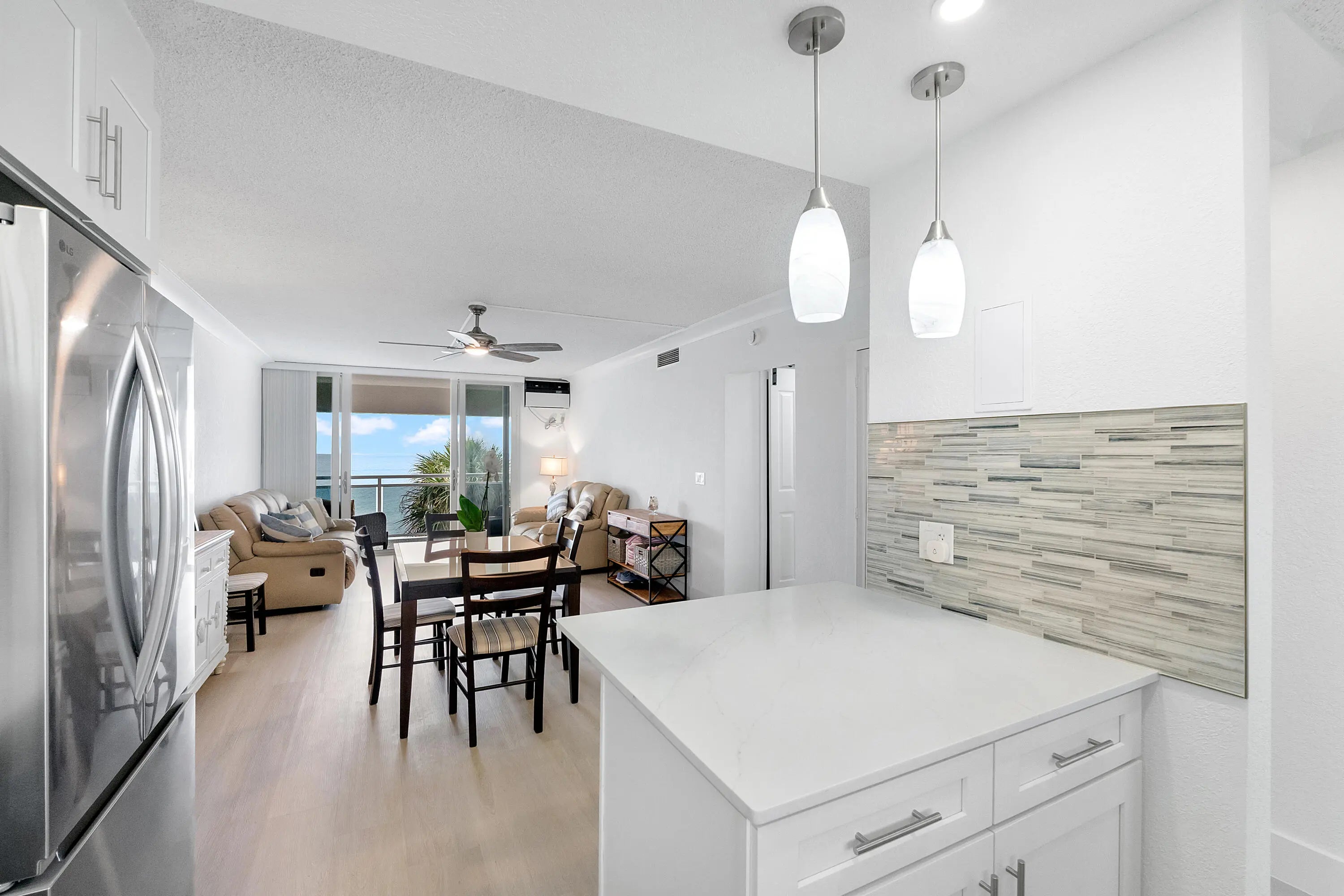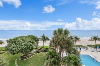 Fully reimagined coastal residence at the sought-after Cove Beach Club in Deerfield Beach, perfectly positioned directly on the sand with your own private beach, & true oceanfront living at an exceptional value. This completely rebuilt unit offers sweeping ocean views and a bright, open layout with modern finishes throughout. Enjoy the added benefit of a private beach and dedicated storage unit. The stunning kitchen features white cabinetry, quartz countertops, a designer backsplash, stainless steel appliances, and a spacious breakfast bar. Impact windows and doors provide security and natural light. The updated bath showcases marble-look tile and a frameless glass shower, complemented by new flooring and an in-unit washer/dryer. Plus large storage. Prime location near dining and shopping. Buyers and Buyer's Agent are encouraged to review the attached seller's property disclosure on the supplement and do their own due diligence. All information obtained through third parties is thought to be accurate but not warranted. Buyers and their agents are encouraged to do their due diligence. Please refer to the attachment for the list of upgrades, HOA documents, and Seller's Property Disclosure.