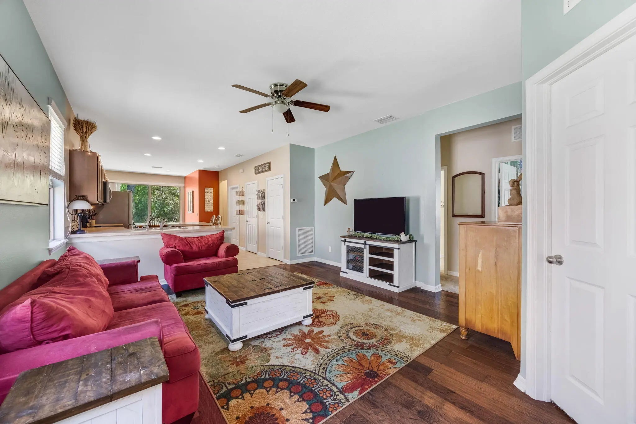 Welcome to this charming 3-bedroom, 2-bathroom home nestled in a highly desirable, quiet neighborhood. Thoughtfully designed for comfort and functionality, this home features a spacious layout and a 2-car garage, perfect for modern living. Step inside to find a warm and inviting interior with abundant natural light, well-appointed living spaces, and a seamless flow ideal for both everyday living and entertaining. The kitchen offers ample storage and workspace, opening to a cozy dining area. The primary suite provides a private retreat with an en-suite bathroom, while two additional bedrooms offer flexibility for family, guests, or a home office. Enjoy peace of mind with a whole-home water filtration system, adding comfort and quality to your daily routine. Out back, the property truly shines—backing to serene green space with no rear neighbors, offering privacy, beautiful views, and a perfect setting for relaxing or outdoor gatherings. Located in a sought-after neighborhood known for its tranquility and appeal, this home combines comfort, convenience, and natural beauty. Don't miss your opportunity to make it yours!