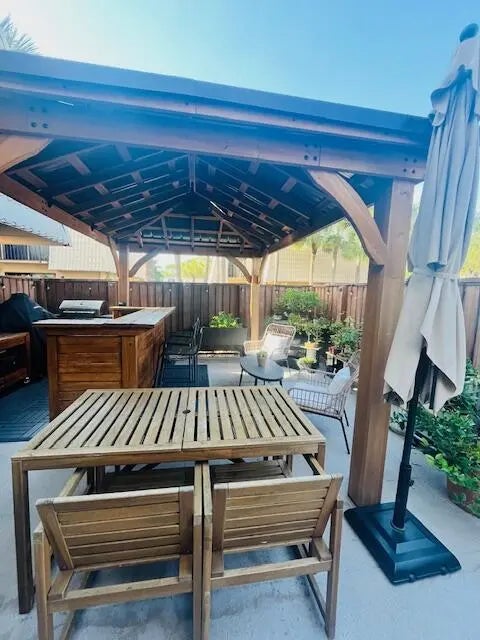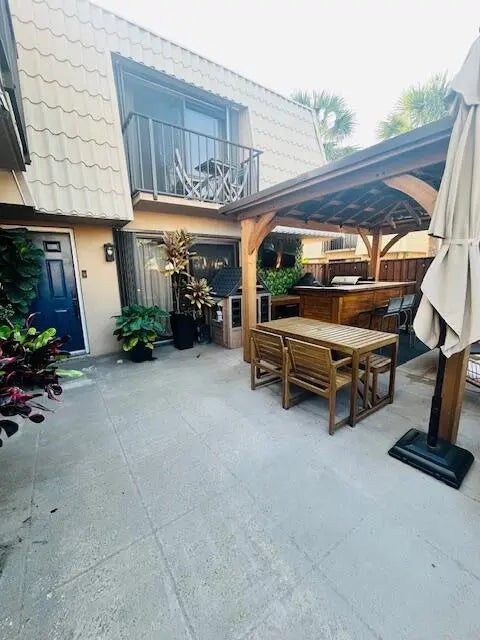 Location, location! Just 10 minutes from CityPlace, 8 minutes from Palm Beach Outlets. This beautifully updated 2- bedrooms, 2.5 bathroom townhome offers the perfect blend of convenience and lifestyle. Step inside to a bright and spacious layout featuring a modernized kitchen. The home boasts private patio with a bar-style setup perfect for entertaining, barbecuing and enjoying time with family and friends. Located in a quiet well maintained community with resort style amenities including pools, pickleball and tennis courts, and playground. The HOA fee provides exceptional value, roof maintenance, exterior insurance, fencing (including repairs and painting) lawn, and water. This home is the perfect combination of comfort, style and prime location ideal for both relaxing and entertaining.