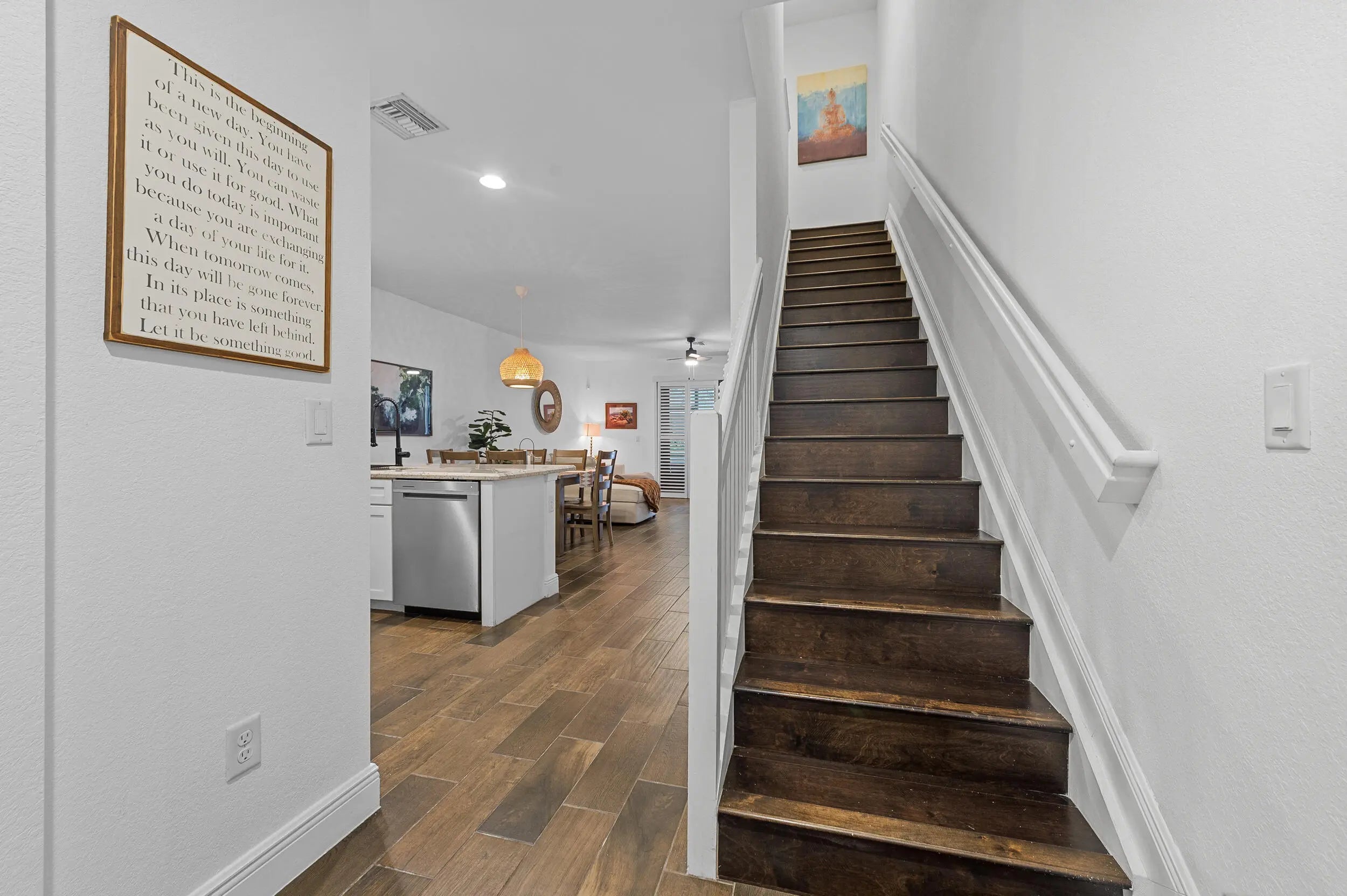Welcome to this beautifully upgraded townhome in the highly sought after Eastside Village community. This 3BR/2.5BA home includes a 1-car garage with custom storage racks. The open-concept main living area showcases upgraded flooring throughout and a reimagined kitchen with top-of-the-line appliances and custom cabinetry. The original bifold pantry was replaced with built-ins, maximizing style and storage while creating a sleek, functional layout. Upstairs, all the bedrooms feature custom closets. Step outside to the screened-in patio with extended pavers, a truly Zen-like retreat surrounded by lush greenery. Prime location just steps from the community pool, tot lot, lakeside walking paths, and guest parking, all minutes from Wilton Manors and Downtown Oakland Park.