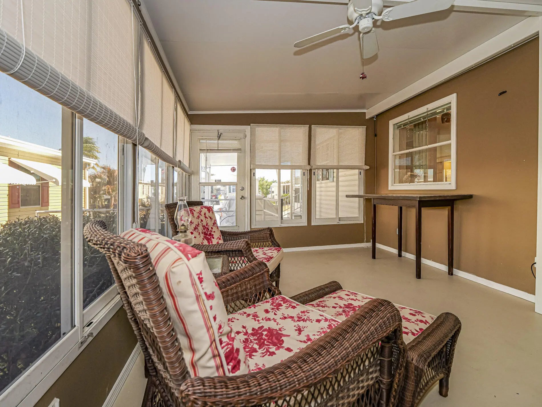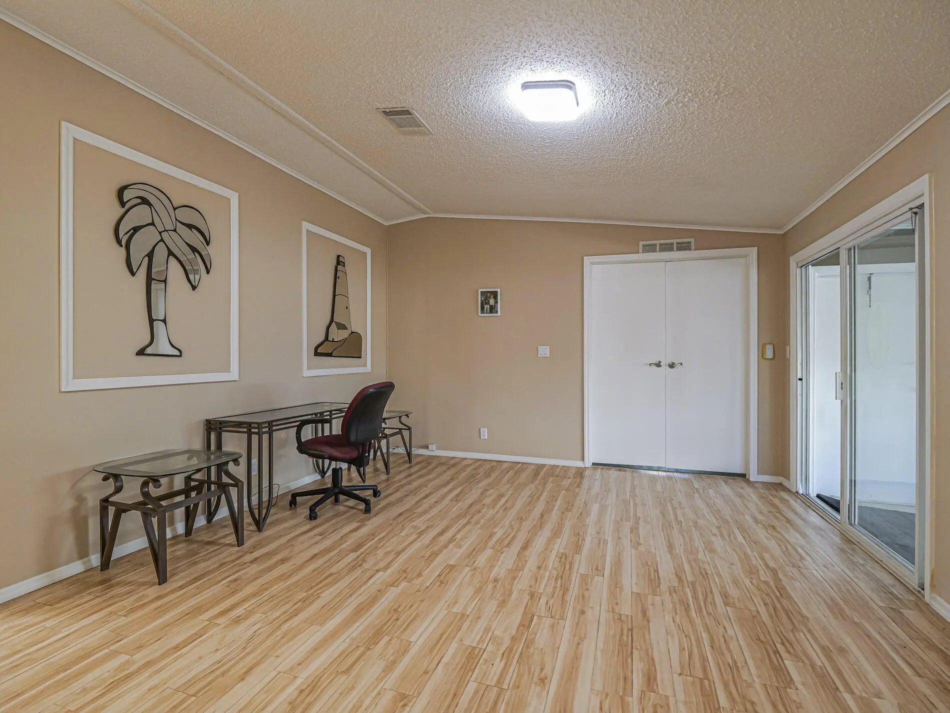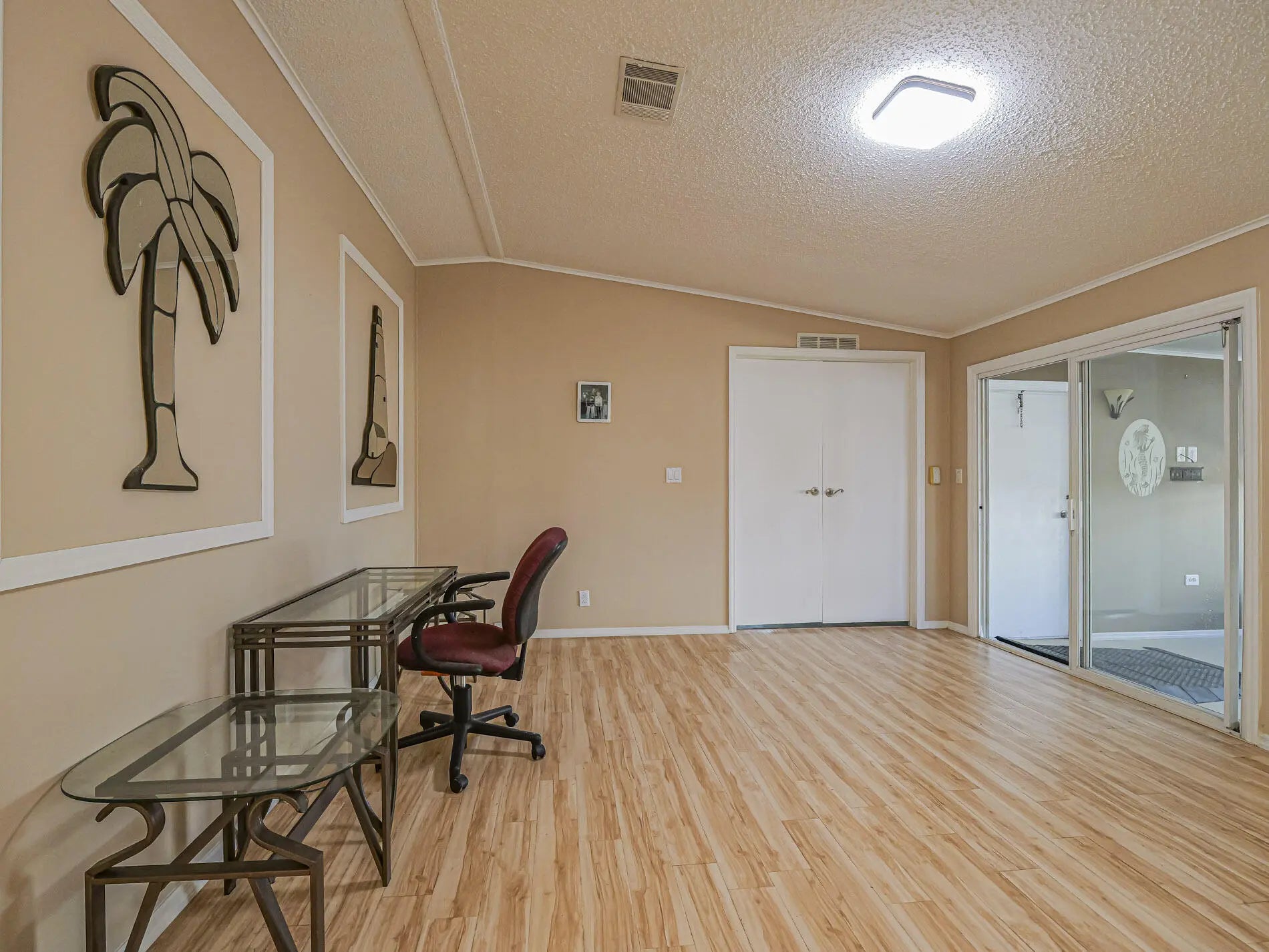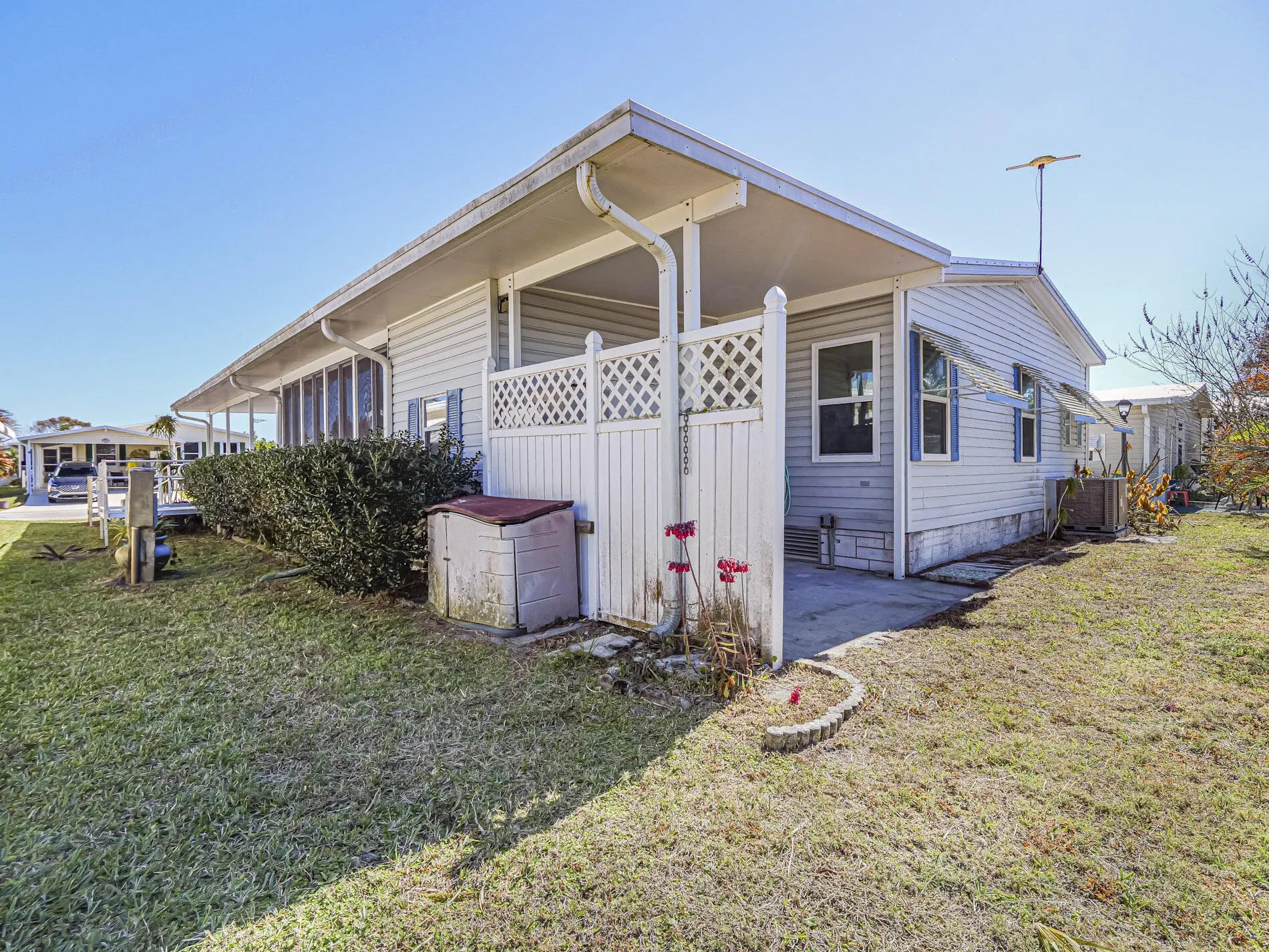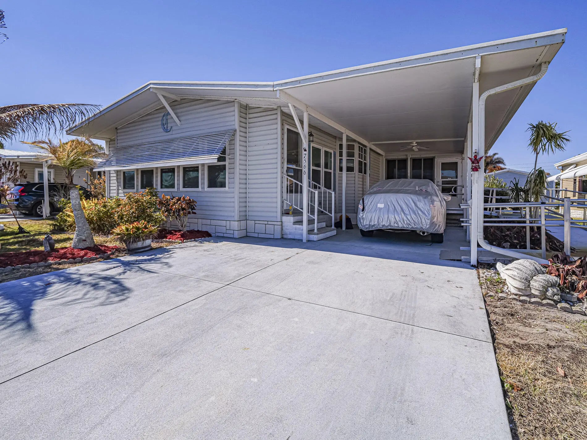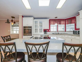 Well-maintained 2BR/2BA home with 1,466 sq ft under air featuring a wheelchair accessible ramp, bright open layout connecting living, dining, and kitchen areas. The kitchen offers a large island with cooktop and seating for four, plus ample cabinetry and counter space. The primary suite showcases double-door entry and an en-suite bath with his-and-hers sinks, soaking tub, and separate shower. Guest bedroom and second full bath provide comfort for visitors. Metal roof, newer windows, and all new plumbing add peace of mind. Indoor laundry, make this home ideal for full-time living Move-in ready