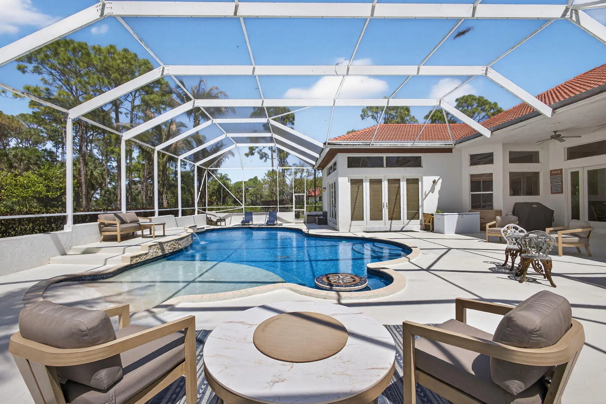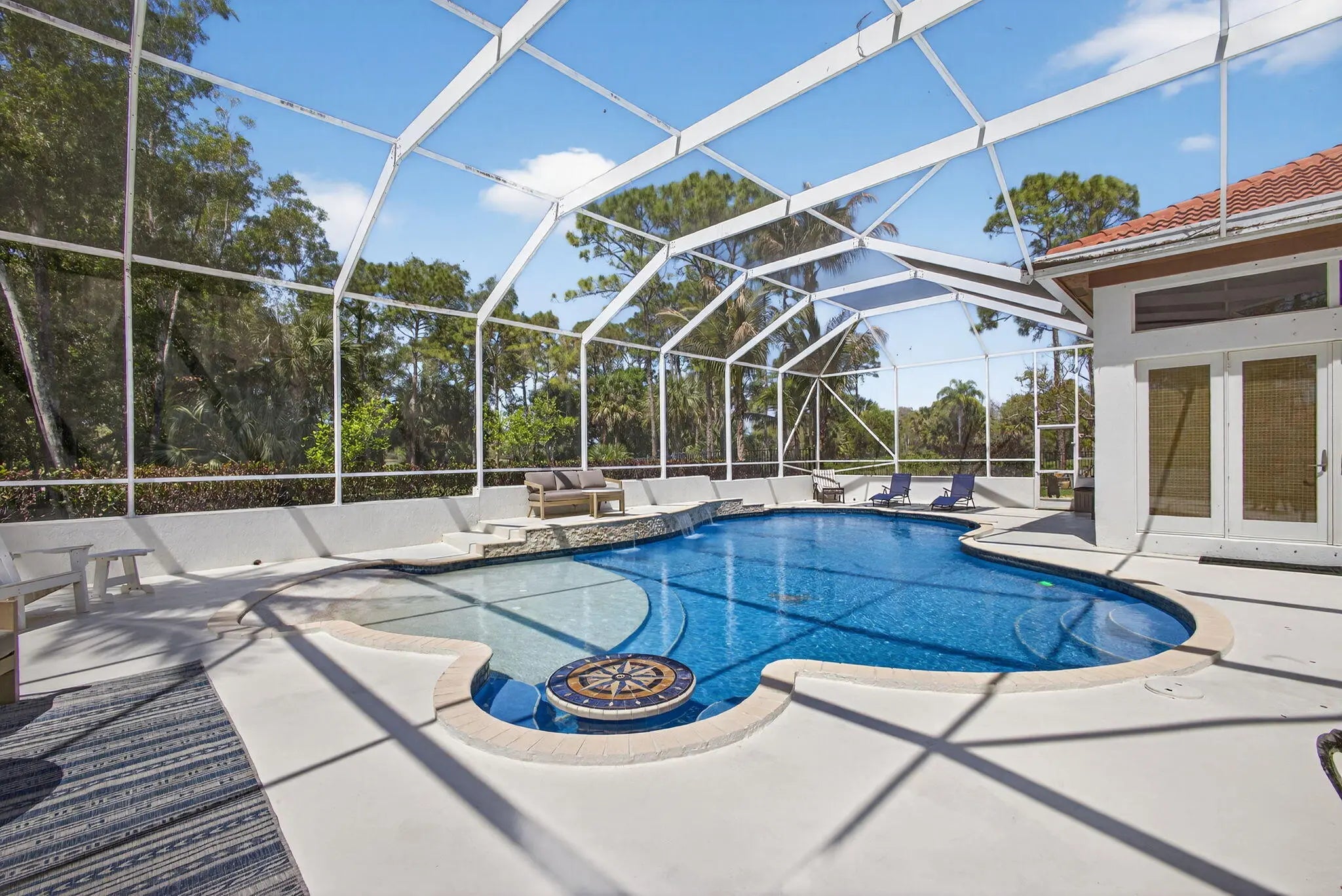 Heated, In Ground, Screen Enclosure, Salt Water, Waterfall, Concrete, Equipment Included, Private