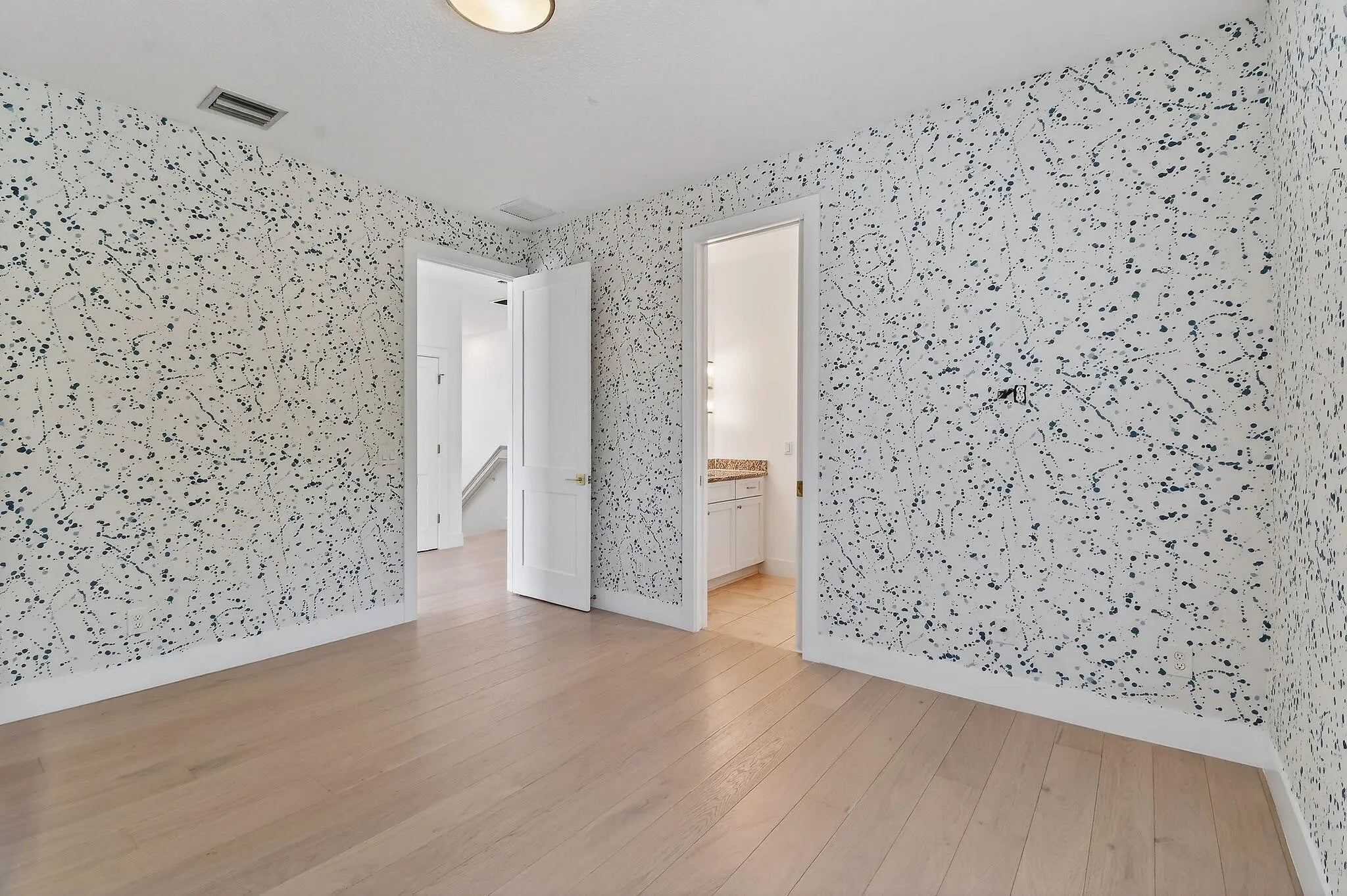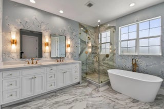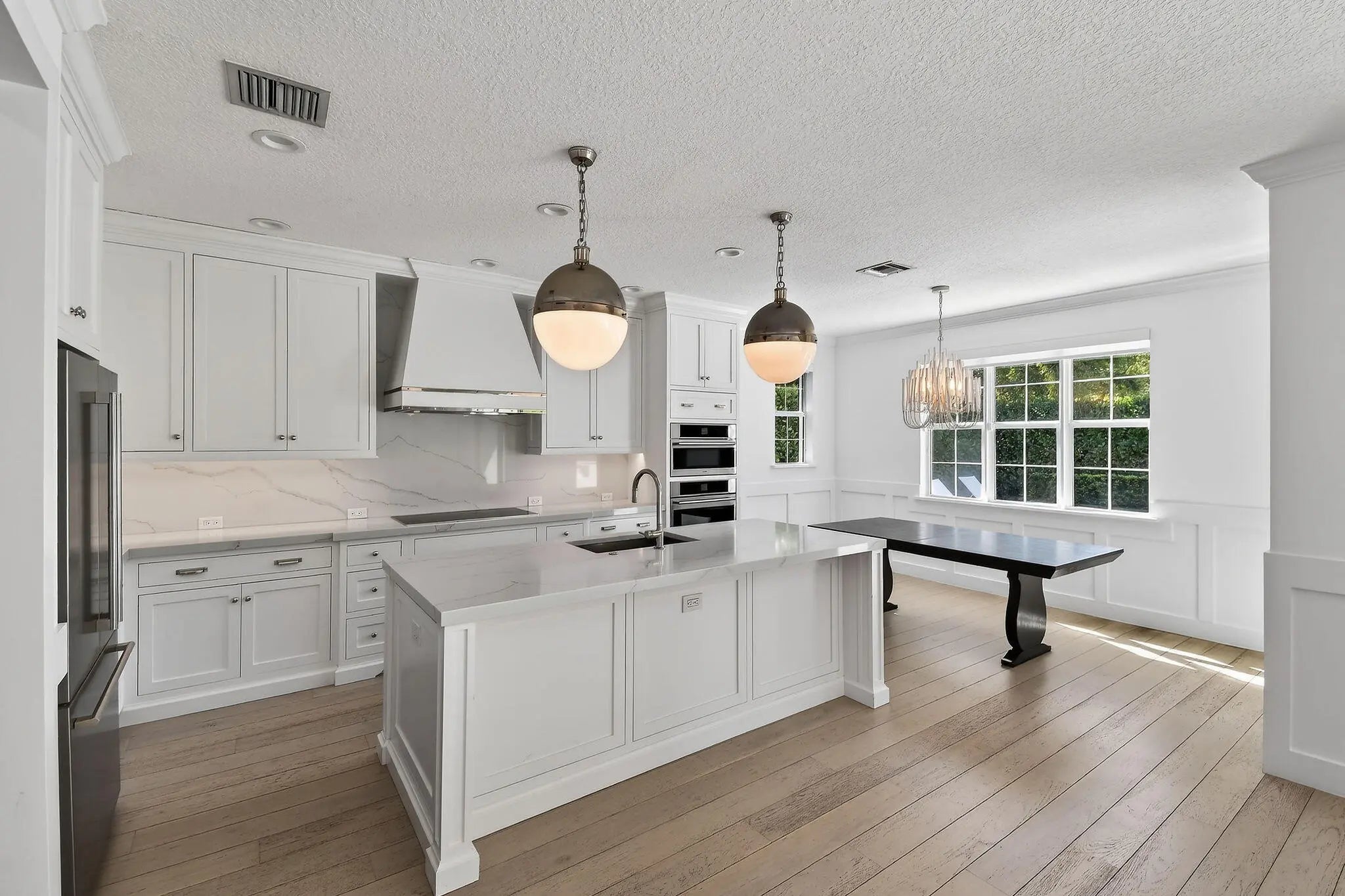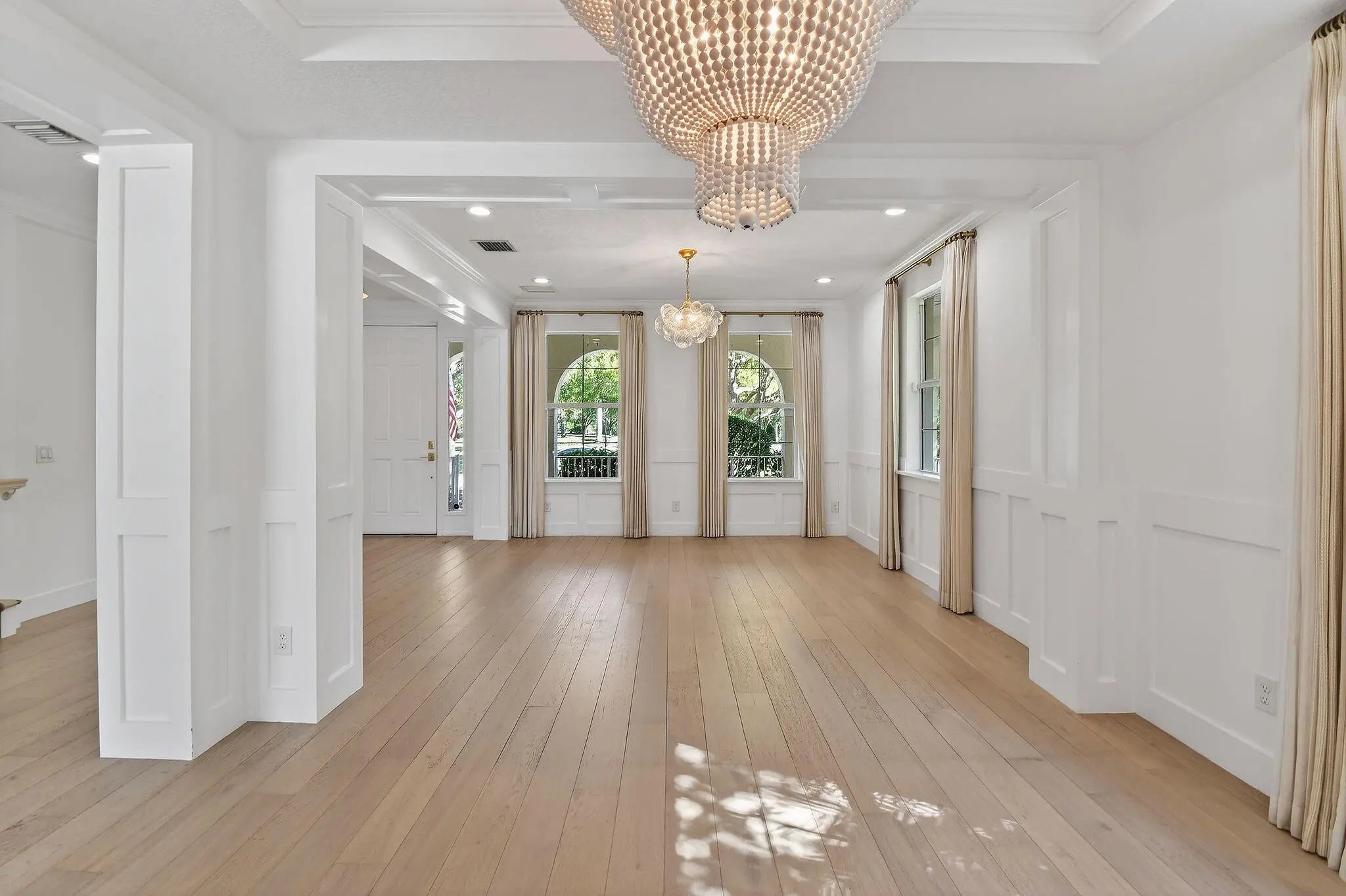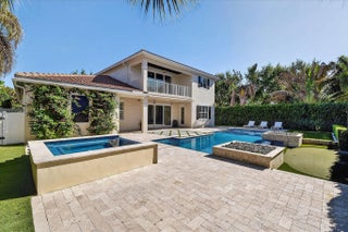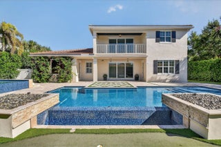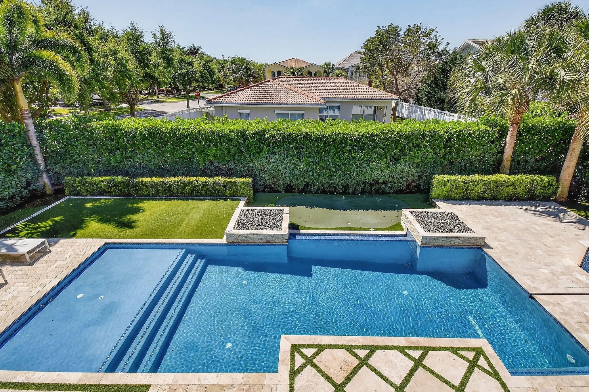 Experience refined South Florida living in this beautifully maintained 5-bedroom + den Windsor Park home in Abacoa. Built in 2016 by DiVosta, this two-story CBS residence offers full impact glass and solid concrete second-floor construction, combining quality with peace of mind. Set on a prime corner lot, the home features a spacious wraparound porch and an open, light-filled layout. The main level includes formal living and dining areas highlighted by a custom 150-bottle temperature-controlled wine wall, a private office with glass French doors, and a well-appointed laundry room with custom cabinetry. The bright kitchen and family room open seamlessly to the backyard through expansive sliders, creating ideal indoor-outdoor living. Outside, a professionally designed retreat awaits with a heated pool and spa, travertine decking, sun shelf, putting green, and lush tropical landscaping. Upstairs, four bedrooms feature wood flooring throughout, including a generous primary suite with private balcony access and custom closets. Additional upgrades include a 3-car tandem garage with EV charging, motorized shades, plantation shutters, smart home features, and detailed millwork throughout. Windsor Park offers a resort-style clubhouse, pool, fitness center, and playground, all just minutes from top-rated Jupiter schools, beaches, golf, and dining.