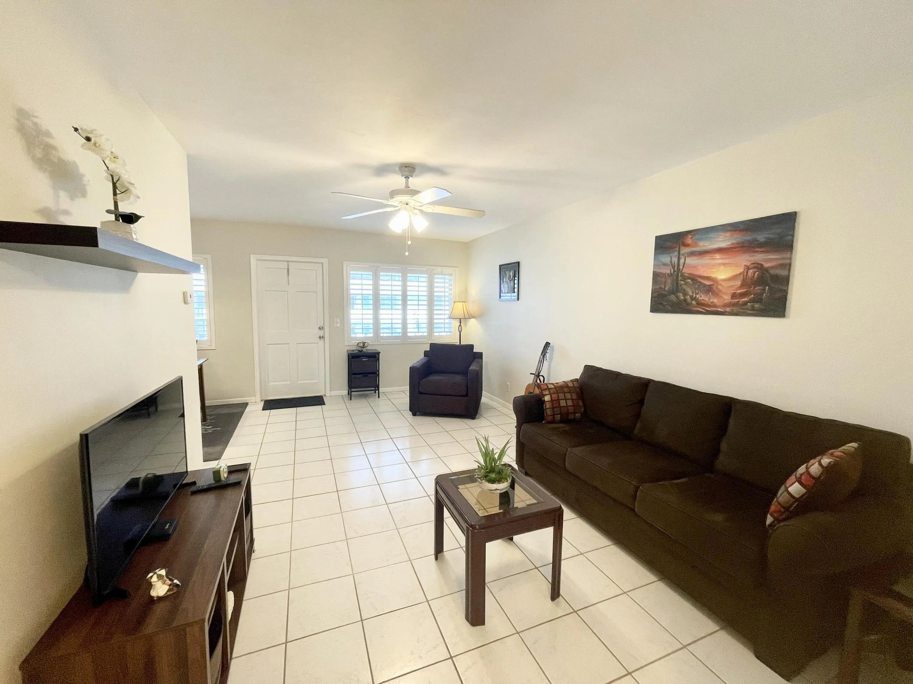 Available June 1st. Beautifully updated and fully furnished 734 sq ft 1BR/1BA condo in the desirable 55+ community of Murry Hills. This spacious second floor unit features updated kitchen w/ white wood cabinets, stainless steel appliances, plantation shutters, ceramic tile flooring, and a new energy efficient central A/C. Cable TV and Internet included. The large bedroom opens to a big, screened balcony/Florida room w/ storage. Bathroom has a tub/ shower combo. Accordion hurricane shutters. Community amenities include a heated pool, gym, saunas, Bocce, shuffleboard, library, ping pong, billiards, auditorium, arts & crafts room, grill area, car wash, and security cameras. Walk to Lake Osborne and reach the beach in 8 minutes. Minutes to shopping, restaurants. No pets allowed.