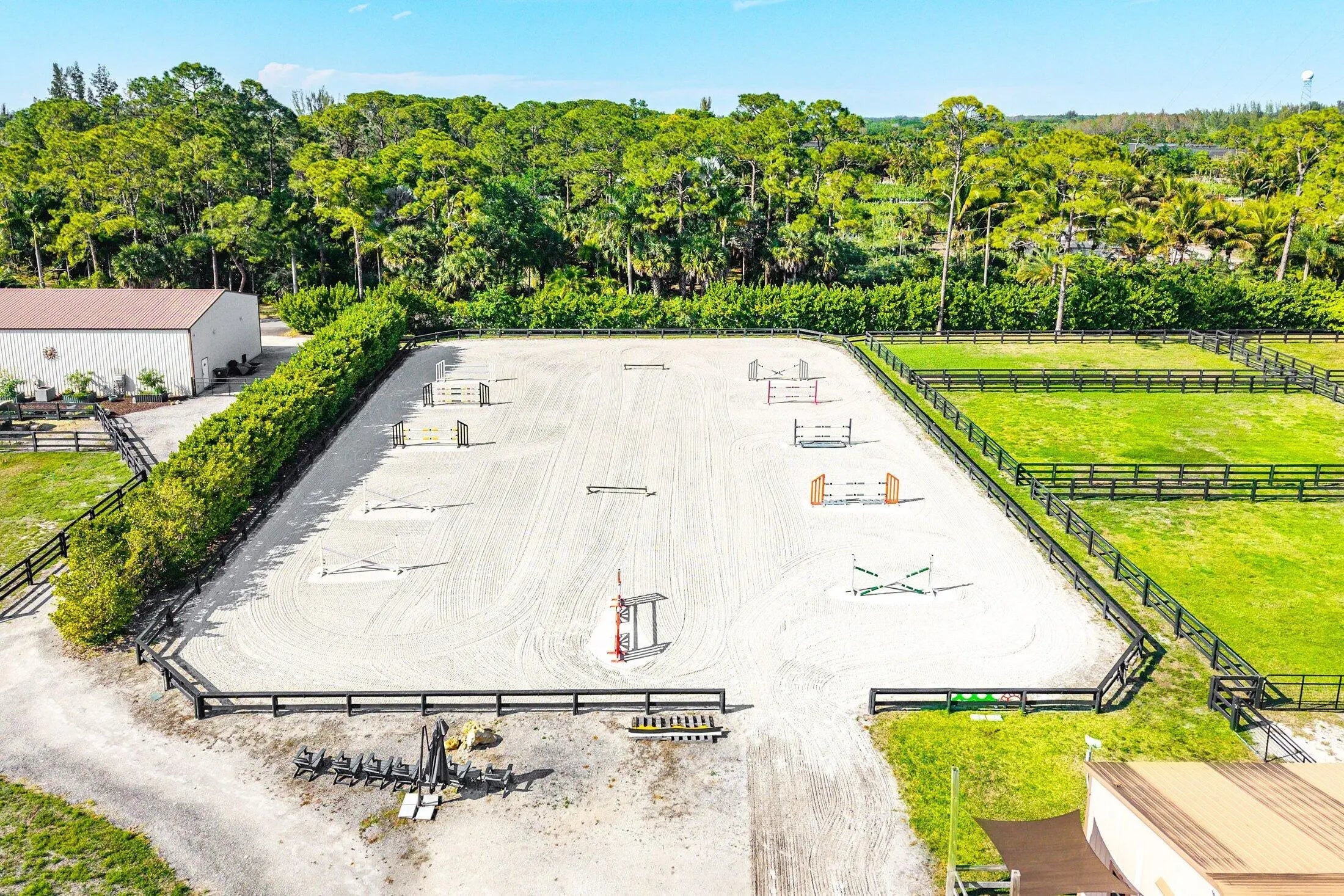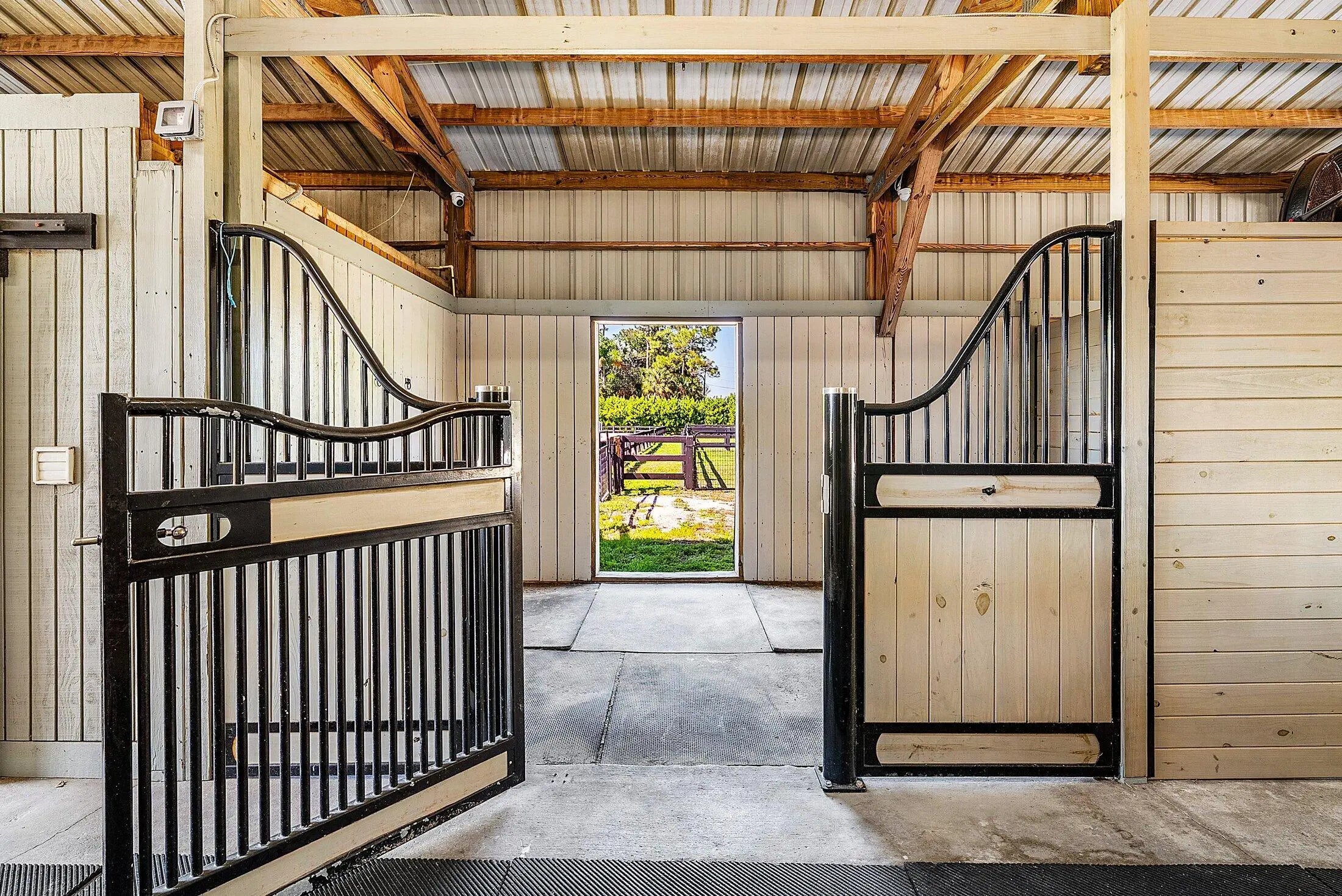Equestrian Farm for lease! Annual/ Summer/ Season. Price listed is annual is per stall per month DRY. Property offers fully fenced and gated 5 acres on now paved road in heritage Farms, 2 barns totaling 9 stalls. Center aisle barn offers 6 stalls (10x16) 3 of which are walk outs, tack & feed, full bath with washer & dryer & grooms studio. Cameras to every stall with Sonos sound system throughout & 3 wash racks. Shed row barn across offers 3 (12x12) stalls. 6 oversized grassy paddocks for ample turnout, round pen , 175x115 sand/fiber mix footing arena with full jump course. Tractor & drag for use as well as a larger studio in the back building, plenty of storage private to you and your crew. ( main house occupied by owners not available) 18 mins to Wellington international.