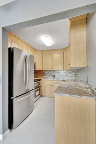 EAUTIFULLY UPDATED 2 BED 1.5 BATH SECOND FLOOR UNIT IN CENTURY VILLAGE HOUSING FOR 55+ ACTIVE ADULTS. THIS NEWLY UPDATED CONDO FEATURES CERAMIC TILE FLOORING, GRANITE COUNTERTOPS , NEW STAINLESS STEEL APPLIANCES AND NEW CABINETRY. BOTH BATHROOMS HAVE BEEN TASTEFULLY RENOVATED. WELL RUN ASSOCIATION BUILDING HAS A NEW ROOF. AND A PRIVATE PATIO TO RELAX ON. Laundry room, assigned parking spot plus visitor parking available; local bus for errands/shopping both within & outside The Village. COME AND ENJOY RESORT STYLE LIVING IN THIS GATED COMMUNITY FOR ADULTS 55+. Clubhouse with theater, shows, movies, craft and card rooms, billiards, aerobics, yoga, and dance classes. GREAT LOCATION: close to shops, restaurants, PBI airport