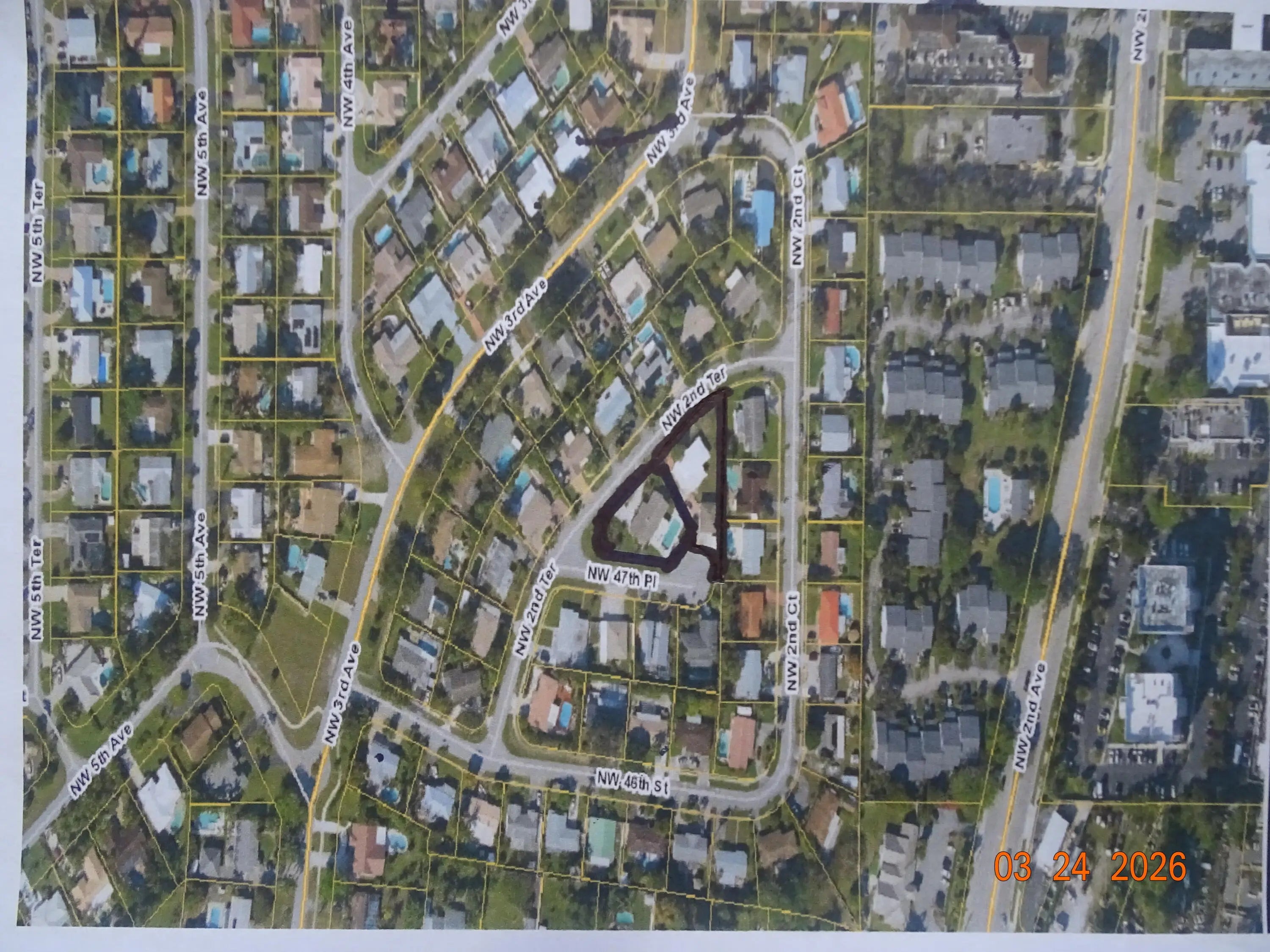 A Unique opportunity in Boca Raton. Two houses for sale, two separate listings, side by side, with one owner. Over .6 acres of land combined. One has a large pool, the other has an 891 sq ft detached 2 car garage on a cul-de-sac. A perfect setup for a knock down and rebuild with plenty of yard left over. Change is coming to this neighborhood. Within ½ mile of the subject properties, 3 houses have been knocked down to one wall and rebuilt. One house is complete. One house is almost complete and one house is underway. Not quite ready to build? Boca Raton has a tight rental market for residential housing. These two homes should be sold together and both knocked down to build a beautiful residence, leaving a large yard for kids to play in. There are not many opportunities in Boca to build a house on .6 acres of land. It is a rare opportunity indeed. This 4 Bedroom, 2 bath house on an oversized lot has been well maintained. There is a 460 square foot enclosed patio area right off the kitchen that could be converted to "Under Air" status. It also has an extra-large 891 square foot 2 car garage accessible from the cul-de-sac or the back of the house.