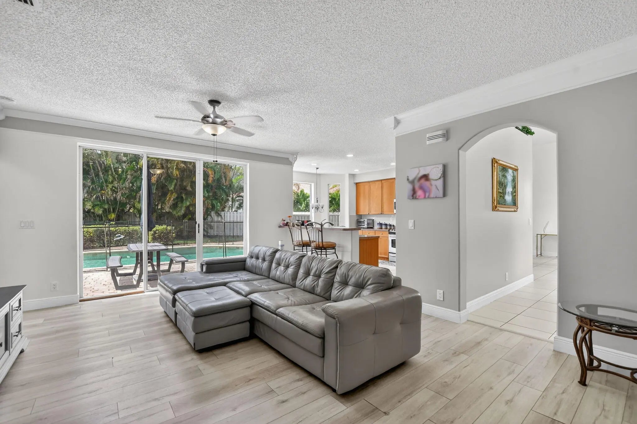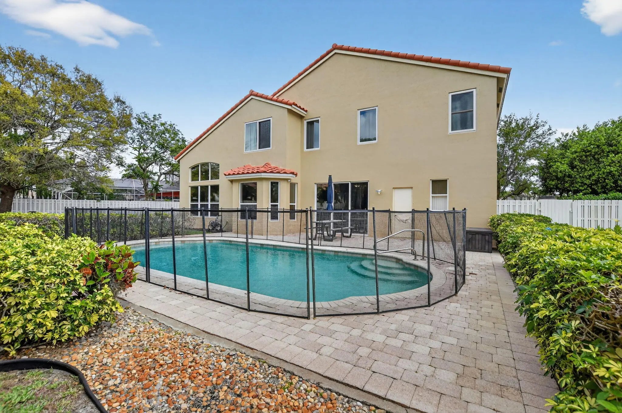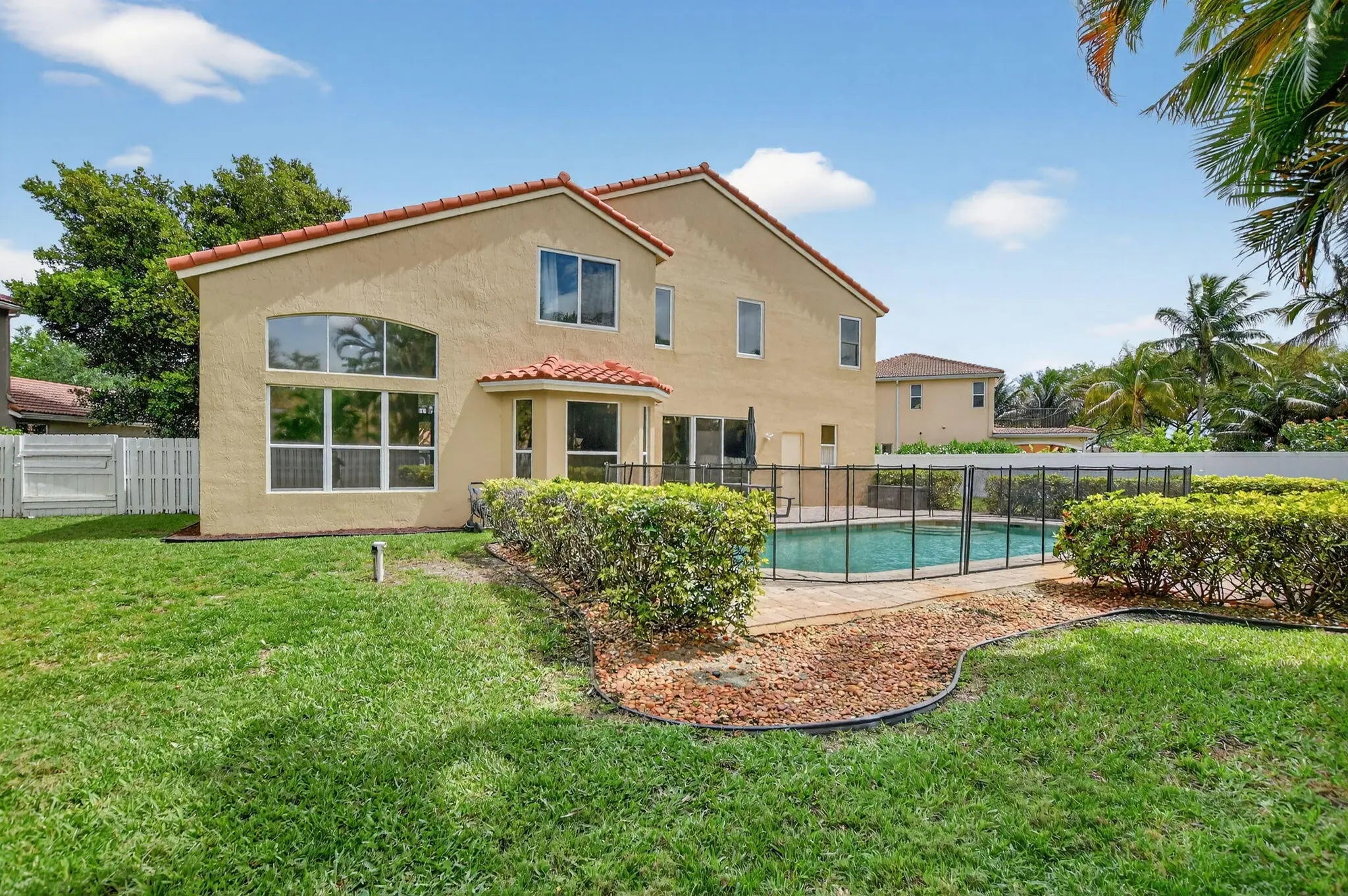 Welcome home to this magnificent 5-bedroom, 3-bathroom two-story home, perfectly located on a cul-de-sac and and situated on an oversized, fully fenced lot. This property is designed for both comfort and entertaining, featuring a beautifully maintained saltwater pool set on a paved patio with endless outdoor living possibilities. The home is in excellent condition, showcasing neutral tile and vinyl plank flooring throughout, along with elegant crown molding. Major updates include a 2024 roof, 2019 water heater, and impact windows upstairs, with shutters for the downstairs. Enjoy the convenience of a large 3-car garage and a thoughtfully designed layout. The expansive primary suite offers a versatile room — perfect for a home office or nursery. Located in the highly desirable Winston Trails community, residents enjoy a low HOA that includes a guard-gated entrance, resort-style pool, tennis courts, pickleball, cable, and more. The community surrounds a premier public golf course no mandatory golf membership and offers scenic walking and biking paths, a fitness park, and an active lifestyle for all. Zoned for top-rated schools. This is truly a must-see property that combines space, upgrades, and exceptional amenities in one of Lake Worth's most sought-after neighborhoods.
