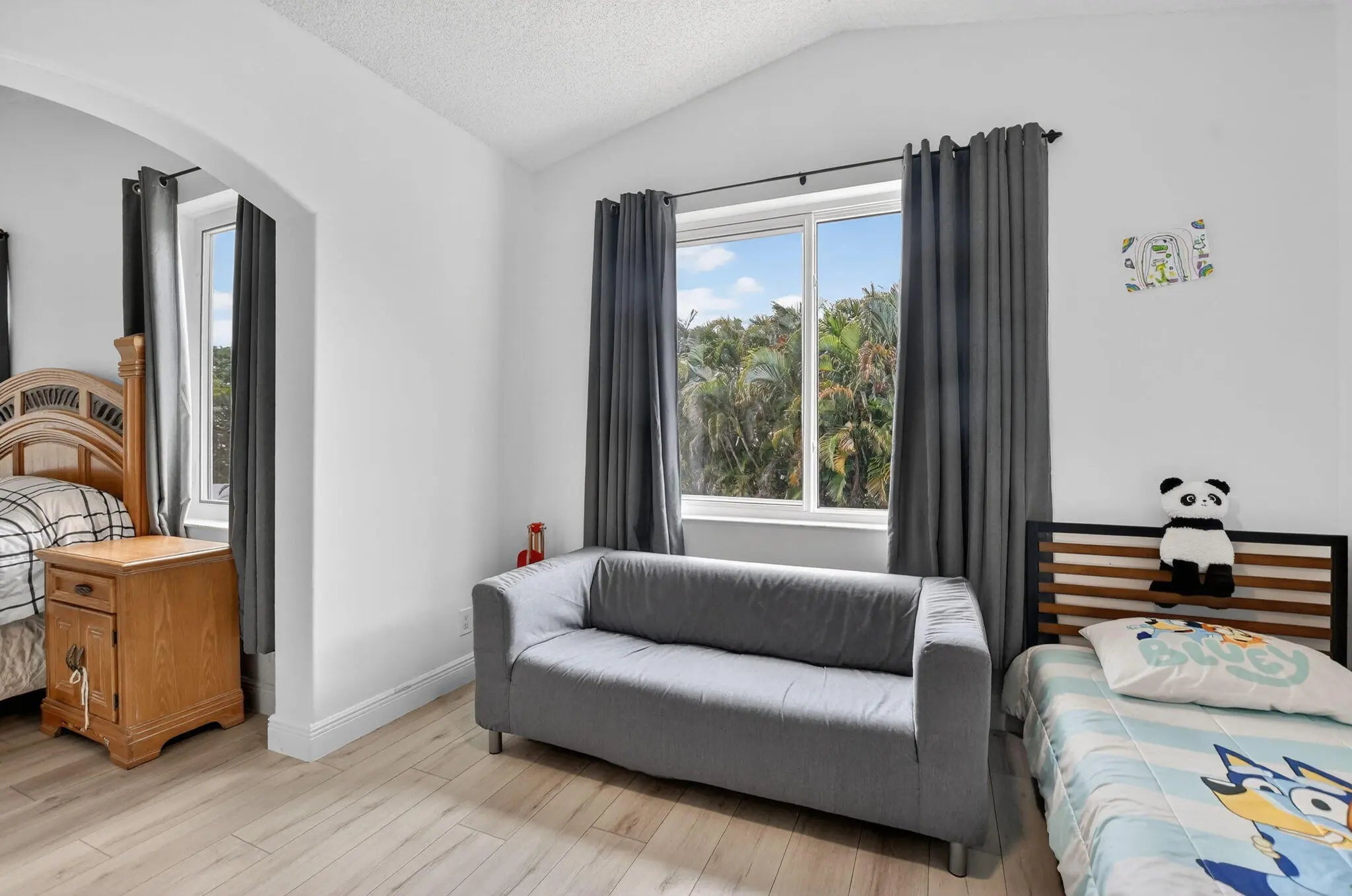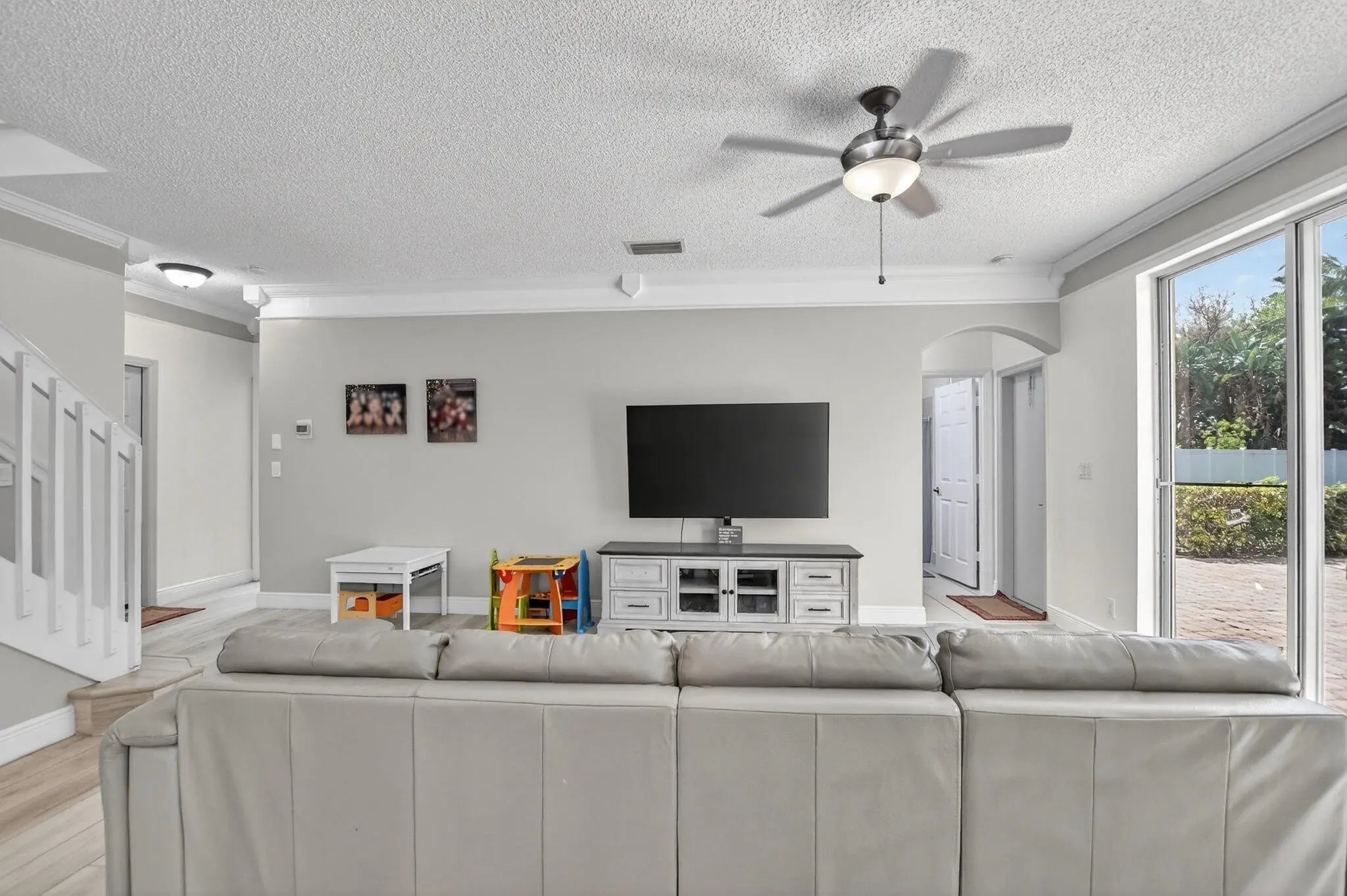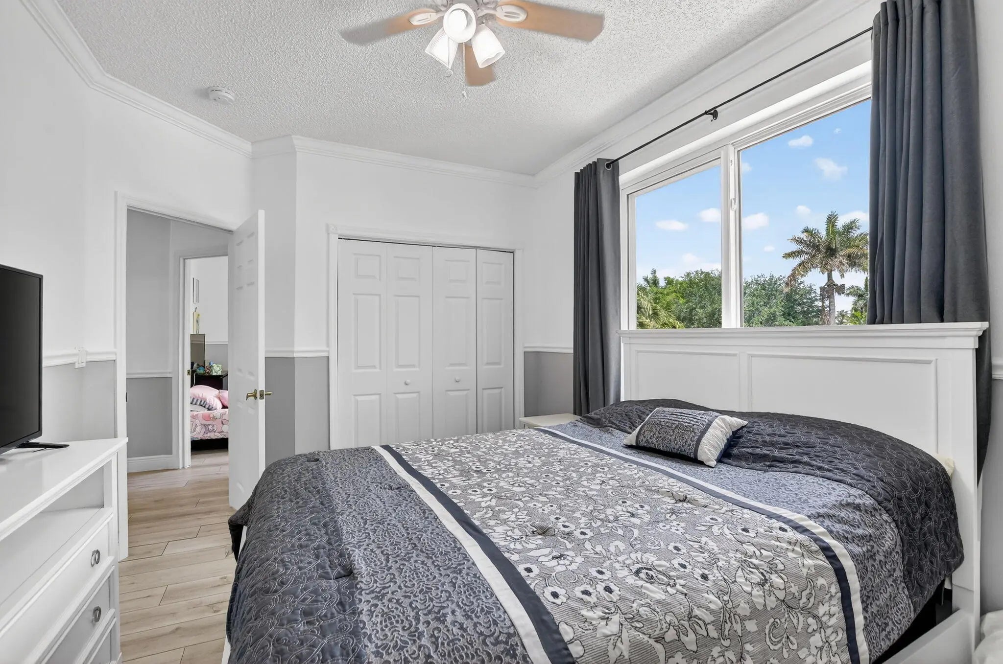 Welcome home to this magnificent 5-bedroom, 3-bathroom two-story home, perfectly located on a cul-de-sac and and situated on an oversized, fully fenced lot. This property is designed for both comfort and entertaining, featuring a beautifully maintained saltwater pool set on a paved patio with endless outdoor living possibilities. The home is in excellent condition, showcasing neutral tile and vinyl plank flooring throughout, along with elegant crown molding. Major updates include a 2024 roof, 2019 water heater, and impact windows upstairs, with shutters for the downstairs. Enjoy the convenience of a large 3-car garage and a thoughtfully designed layout. The expansive primary suite offers a versatile room — perfect for a home office or nursery. Located in the highly desirable Winston Trails community, residents enjoy a low HOA that includes a guard-gated entrance, resort-style pool, tennis courts, pickleball, cable, and more. The community surrounds a premier public golf course no mandatory golf membership and offers scenic walking and biking paths, a fitness park, and an active lifestyle for all. Zoned for top-rated schools. This is truly a must-see property that combines space, upgrades, and exceptional amenities in one of Lake Worth's most sought-after neighborhoods.