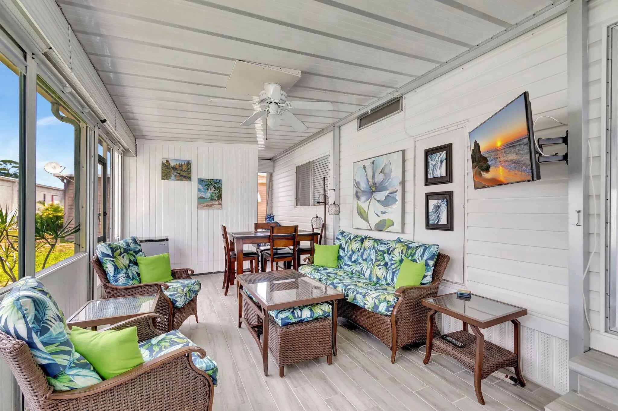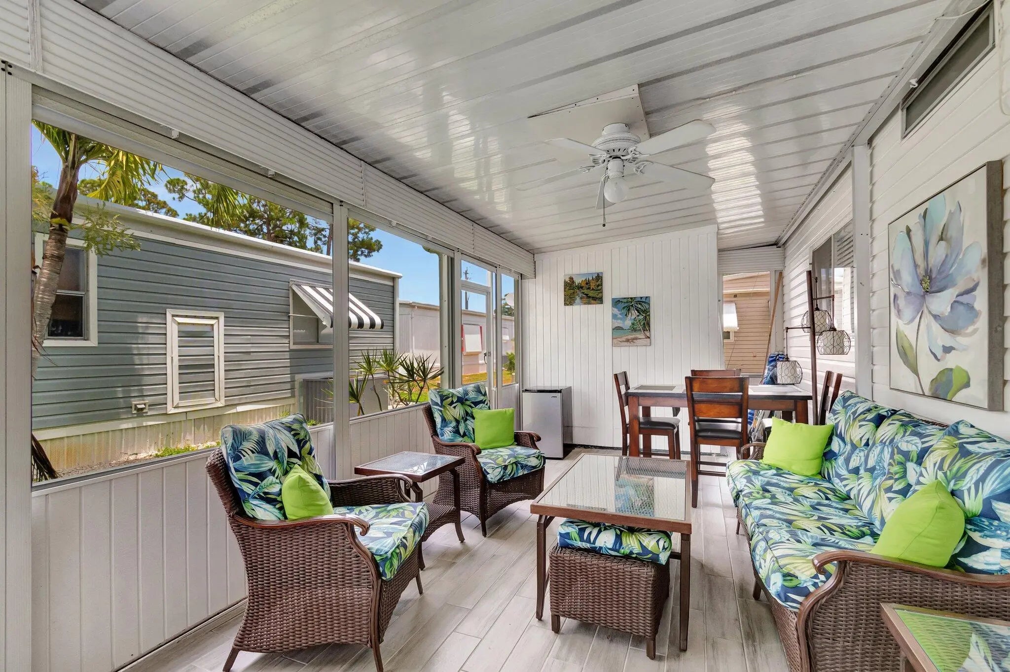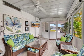 MOVE IN READY! This corner unit provides plenty of storage, open floor plan and tons of natural lighting to enjoy beautiful sunny Florida! The 2 bed / 2 bath home includes an updated kitchen (2023) with an oversized island and plenty of cabinets for extra storage, newer appliances, updated flooring, crown molding, framed windows, updated guest bathroom, walk-in closets, updated tiled lanai and much more! The LOW monthly HOA fee includes internet, lawn care, water/sewer, trash removal, 24/7 manned gate, on-site management and office staff. Amenities include PICKLE BALL, multiple heated pools, clubhouse, library, billiards, shuffleboard, bocce ball, community convenience store, short iron practice range for golfers, additional storage for boat / RV / motorcycles, plus social activities!