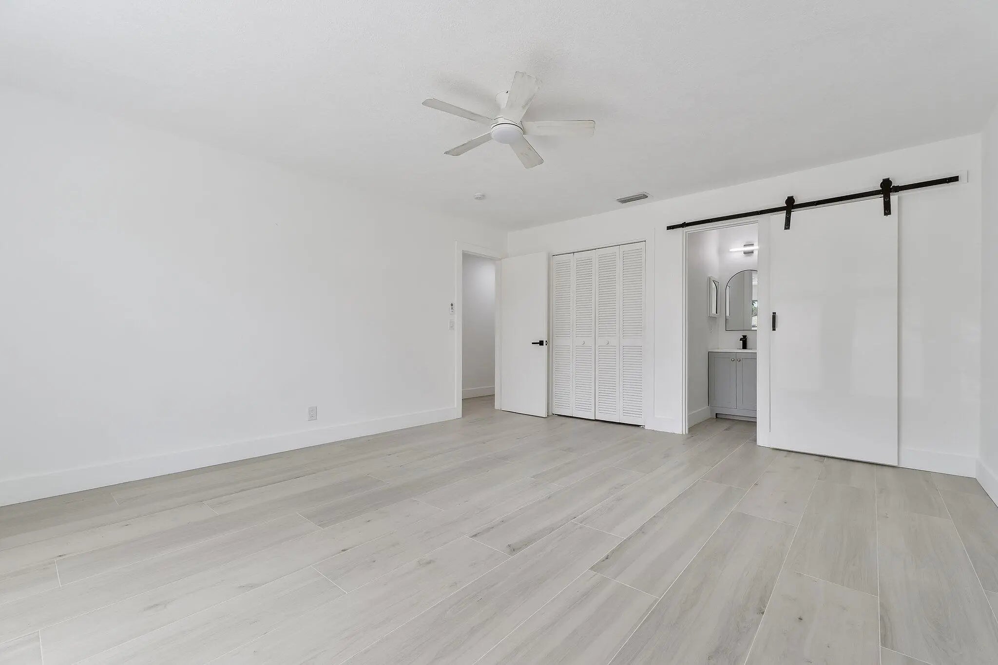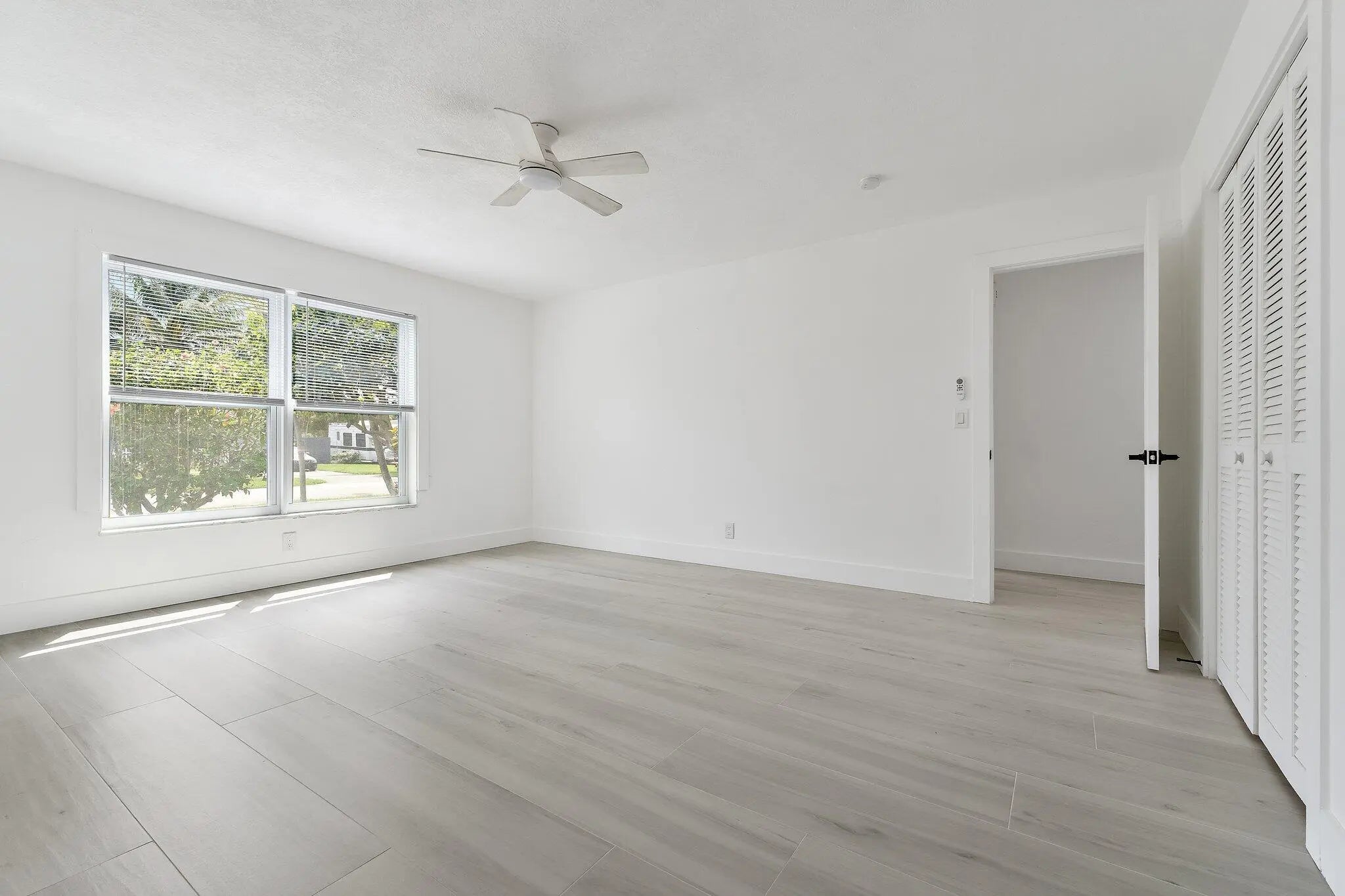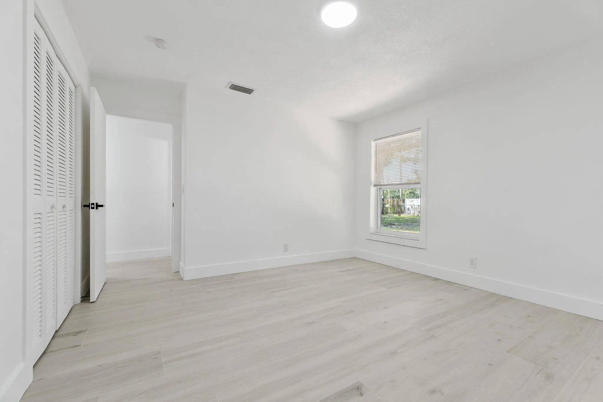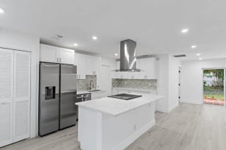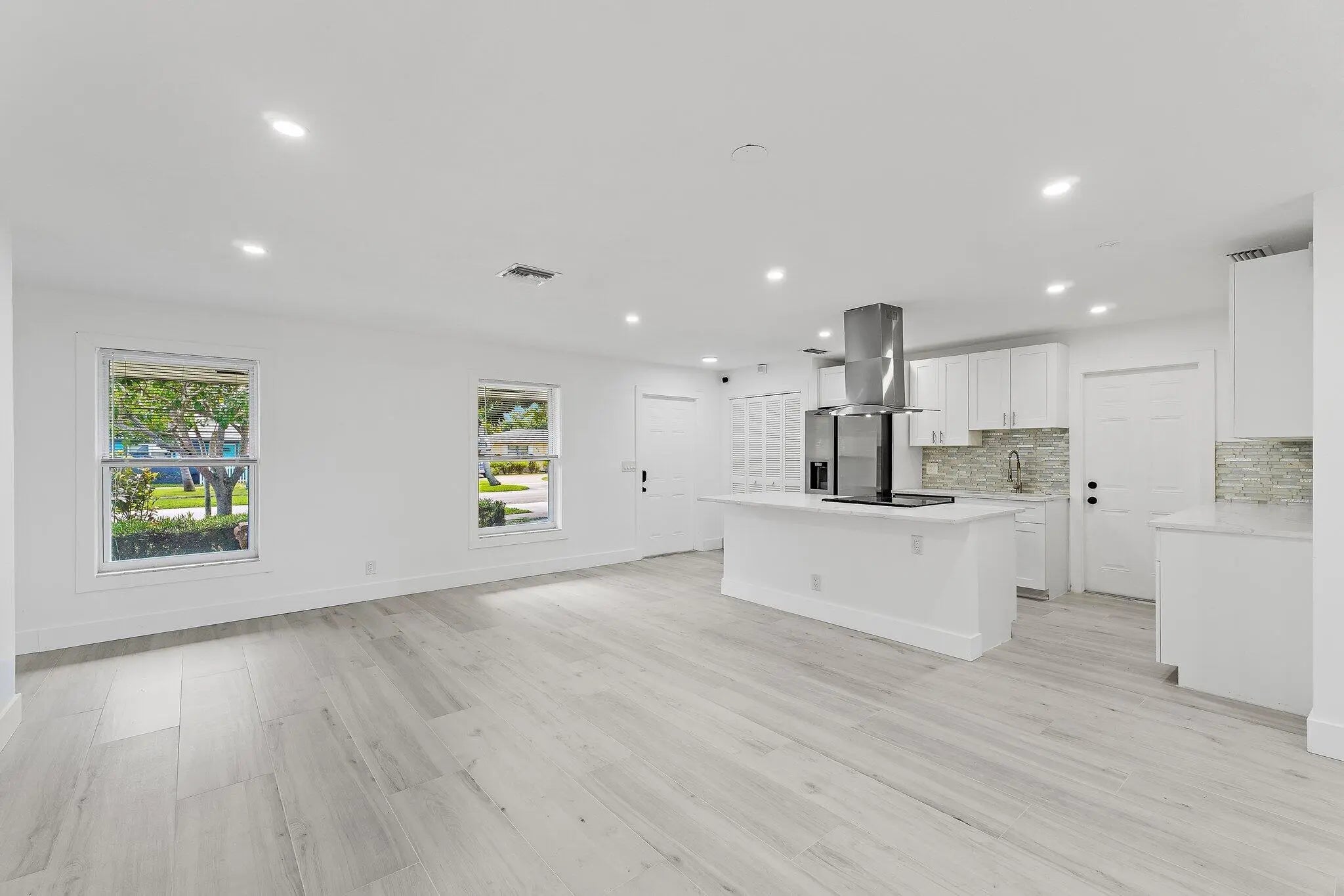 Move right in to this beautifully updated one-level, three bedroom, two bathroom CBS home on a quiet, tree-lined street in Lake Park! Upon entry into the open floor plan finished with wood-like porcelain tile, the heart of the home is anchored by a newly remodeled kitchen featuring newer white cabinetry, quartz countertops, and stainless-steel appliances. Retreat to the Primary suite with spacious closet and en-suite Primary bath boasting new vanity and frameless glass, tiled shower with new fixtures. Two additional bedrooms are served by an updated bath with new vanity and frameless glass, tiled shower with new fixtures. Upgrades abound : full impact windows/doors, new AC in 2024, newer hot water heater in 2022, newer roof in 2018, new porcelain tile flooring, Blink security cameras, smart lock, new baseboards and trim, new LED lighting, and new paint. Relax on the Northern-exposure patio overlooking the oversized, 10,000+SF lushly landscaped and partially fenced backyard featuring both producing fruit and mature shade trees, automatic irrigation system, plenty of room for a pool and accessory structures, and boat or RV storage. Circular driveway, with abundant guest parking, leads to a full one-car garage with newer washer and dryer. Enjoy all that Lake Park has to offer without an HOA : waterfront Kelsey Park with tennis, pickleball, and walking path along the intracoastal, town center with restaurant, brewery, library, police station, and post office, all moments to beautiful Juno Beach, golf, tennis, and pool at the North Palm Beach Country Club, downtown West Palm Beach, the area's best education, dining, shopping on Northlake Boulevard & PGA Boulevard, and easy proximity to I-95, Florida's Turnpike, and Palm Beach International Airport!