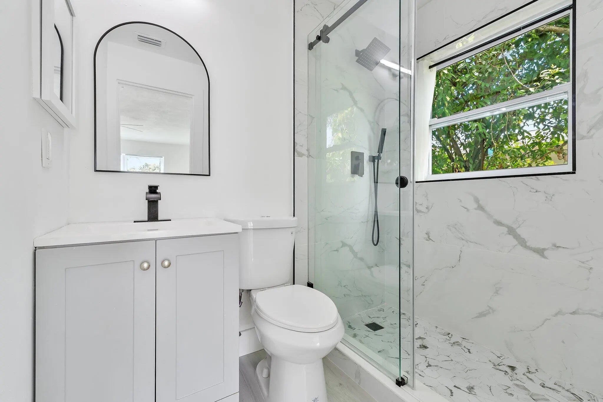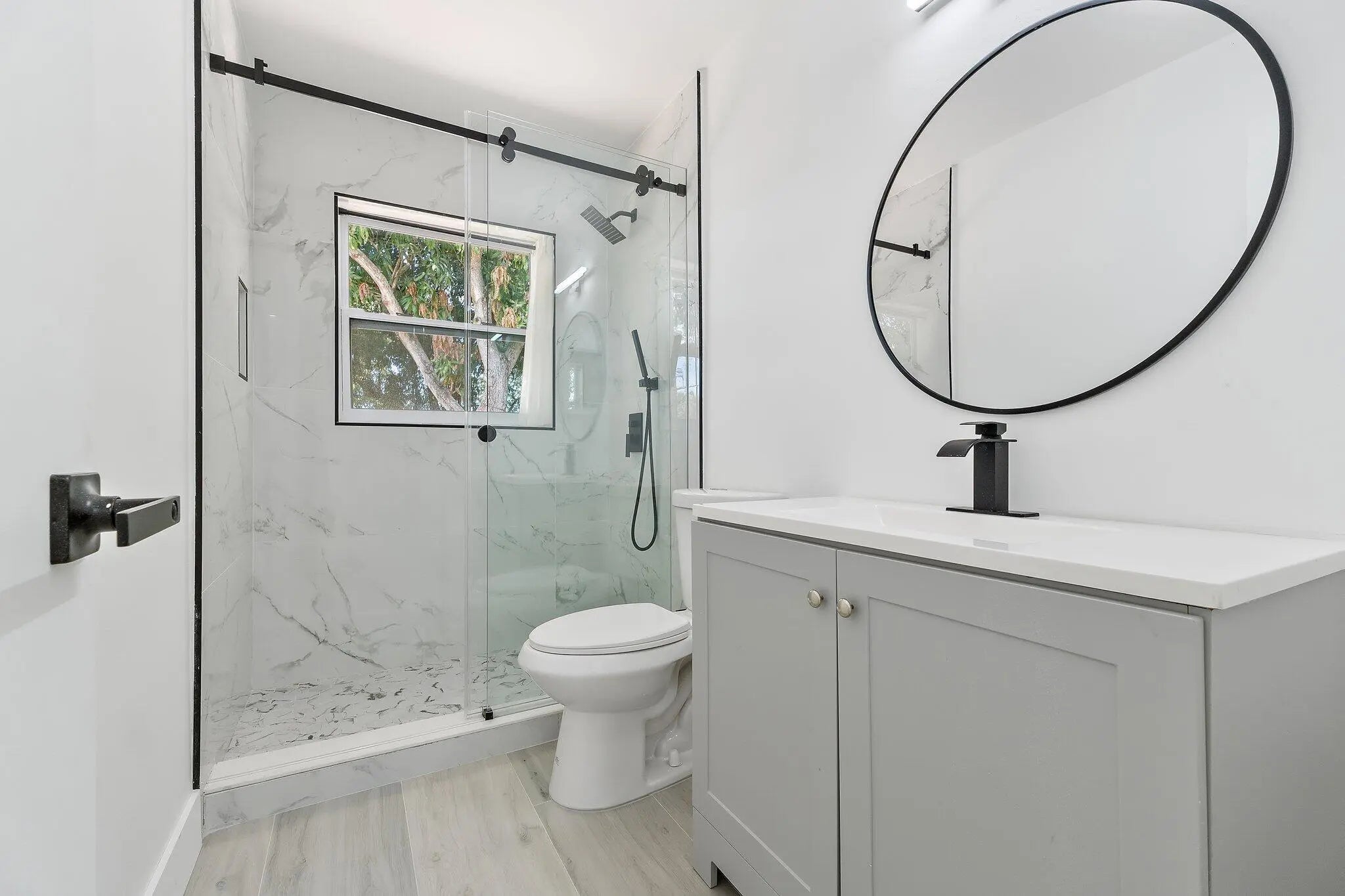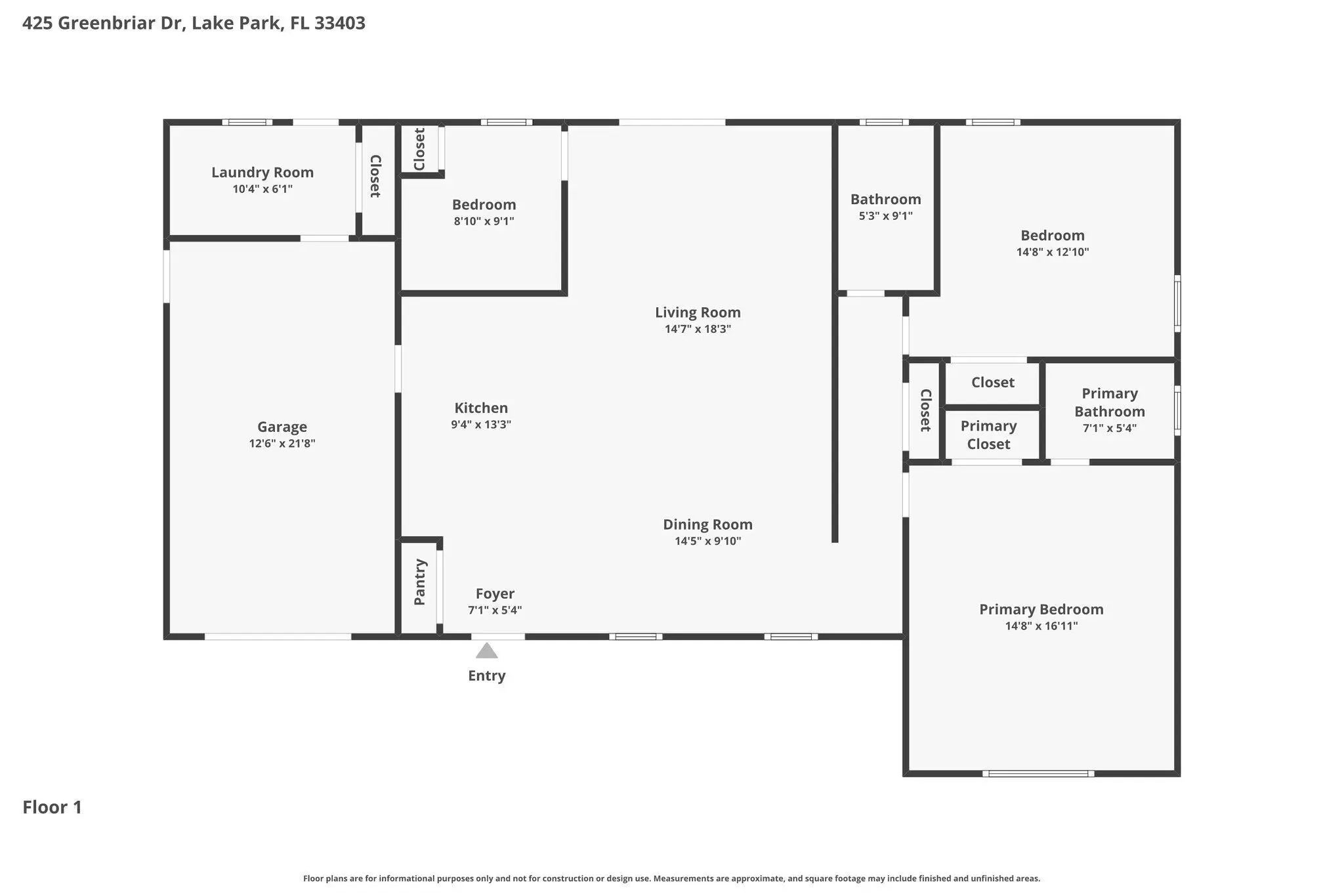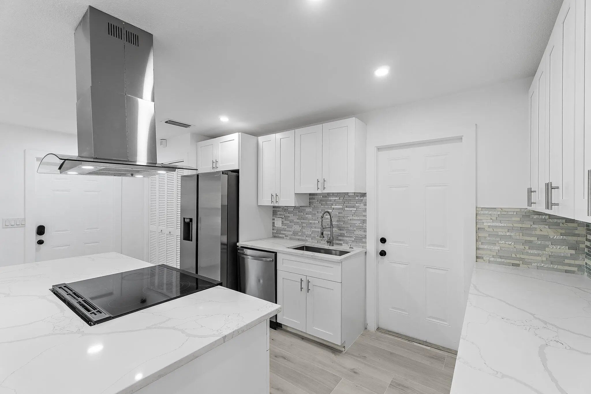 Move right in to this beautifully updated one-level, three bedroom, two bathroom CBS home on a quiet, tree-lined street in Lake Park! Upon entry into the open floor plan finished with wood-like porcelain tile, the heart of the home is anchored by a newly remodeled kitchen featuring newer white cabinetry, quartz countertops, and stainless-steel appliances. Retreat to the Primary suite with spacious closet and en-suite Primary bath boasting new vanity and frameless glass, tiled shower with new fixtures. Two additional bedrooms are served by an updated bath with new vanity and frameless glass, tiled shower with new fixtures. Upgrades abound : full impact windows/doors, new AC in 2024, newer hot water heater in 2022, newer roof in 2018, new porcelain tile flooring, Blink security cameras, smart lock, new baseboards and trim, new LED lighting, and new paint. Relax on the Northern-exposure patio overlooking the oversized, 10,000+SF lushly landscaped and partially fenced backyard featuring both producing fruit and mature shade trees, automatic irrigation system, plenty of room for a pool and accessory structures, and boat or RV storage. Circular driveway, with abundant guest parking, leads to a full one-car garage with newer washer and dryer. Enjoy all that Lake Park has to offer without an HOA : waterfront Kelsey Park with tennis, pickleball, and walking path along the intracoastal, town center with restaurant, brewery, library, police station, and post office, all moments to beautiful Juno Beach, golf, tennis, and pool at the North Palm Beach Country Club, downtown West Palm Beach, the area's best education, dining, shopping on Northlake Boulevard & PGA Boulevard, and easy proximity to I-95, Florida's Turnpike, and Palm Beach International Airport!